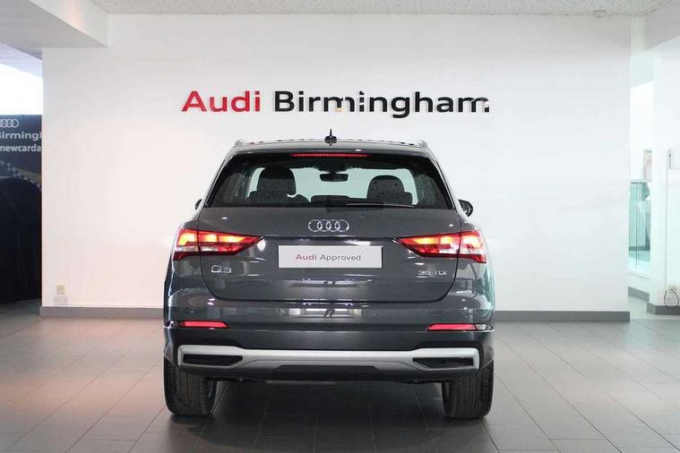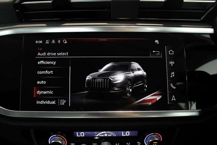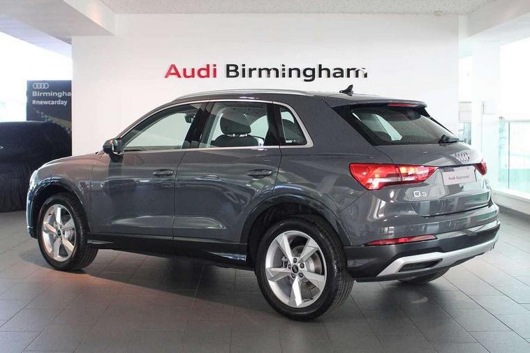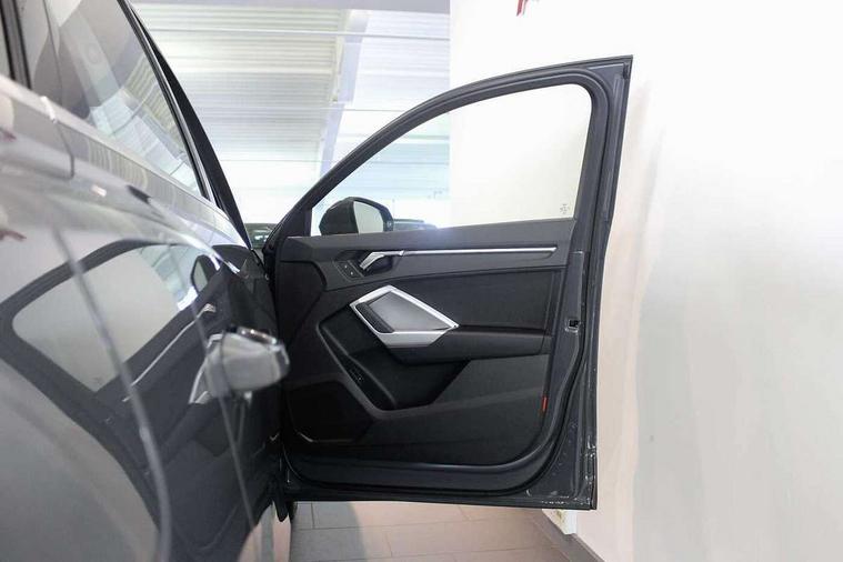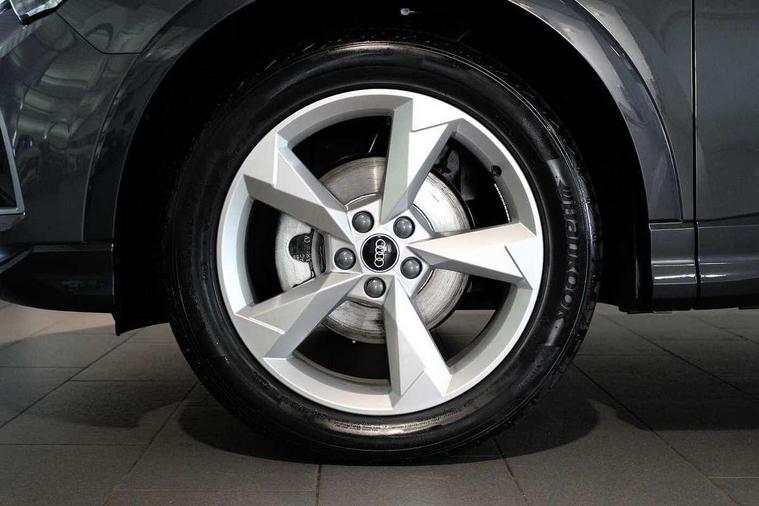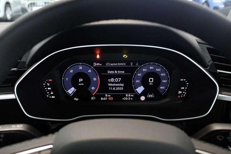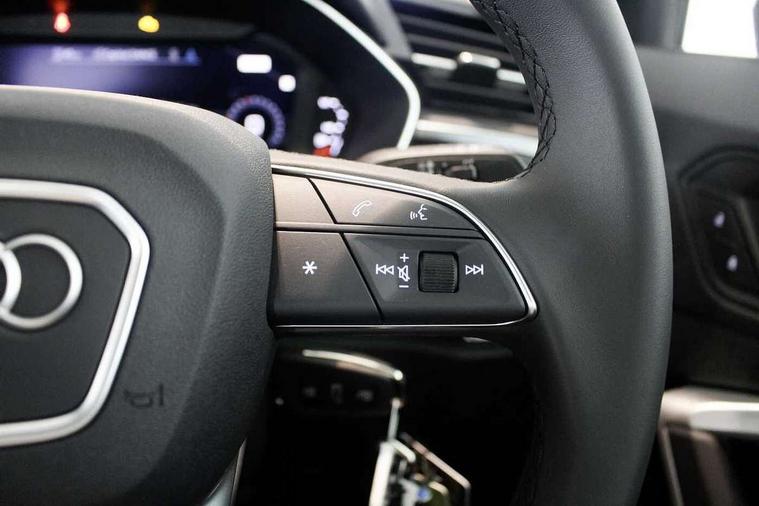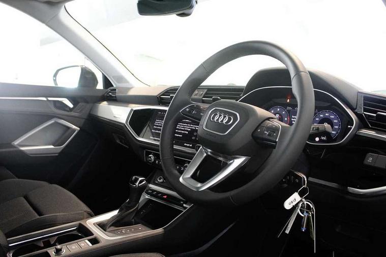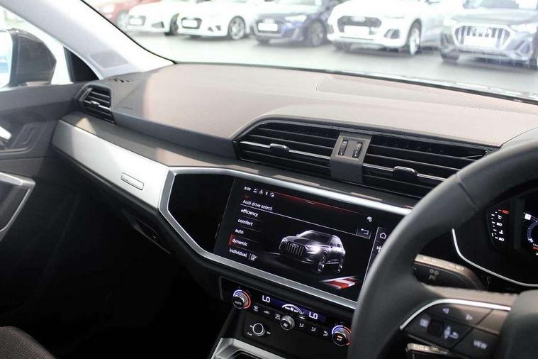 Amazon alexa Integration, Audi connect safety and service, Audi drive select, Audi lane departure warning, Audi smartphone interface includes wireless Apple carplay/Android Auto, Audi Virtual Cockpit - 10.25" display, Bluetooth interface, Camera based traffic sign recognition, Distraction and Fatigue warning, Legal emergency call, MMI Navigation Plus with high resolution 10.1 inch touchscreen colour display, Power operated tailgate, Progressive steering, Service interval indicator, Start stop system with recuperation, Voice control system with natural language interaction, Diesel particulate filter, Standard suspension, 2 USB-C ports with charge and data functions, 6 passive loudspeakers, DAB digital radio module, Acoustic windscreen, Aluminium roof rails, Aluminium window trim, Anthracite black radiator grille, Auto dimming door mirrors, Auto dimming frameless rear view mirror, Electrically folding, adjustable and heated door mirrors with integrated LED side indicators and kerb view function for passenger side, Front and rear bumpers, wheel arch trims and side sill trims in contrasting Manhattan grey paint finish, Front and rear electric windows, Front fog lights, Front side air inlets in matt selenite silver, Front spoiler in matt selenite silver, Grille vertical bars in aluminium silver/Matt, High gloss black finish B and C pillars, LED headlights with LED daytime running lights, LED third brake light, Rain and light sensors, Rear diffuser strip in matt selenite silver, Rear side wing doors, Rear wiper, Variable front intermittent wipers, 12V socket in rear centre console, 3 seat bench in 2nd row, 3 spoke multi-function leather steering wheel, 40:20:40 folding with manual adjustment for 60:40 forwards/backwards position and backrest angle, Black carpet mats, Door sill trims with aluminium inlay, Dual zone electronic climate control, Electric lumbar support, Front and rear floor mats, Front and rear headrests, Front centre armrest, Height and reach adjustable steering wheel, ISOFIX child seat mounting for front passenger with airbag deactivation and outer rear seat including top tether attachment point for outer rear seats, Luggage compartment sill protection in stainless steel, Lunar silver cloth headlining, Manual front seats with height adjustment, Single front passenger seat, Non smoking pack - Q3, 3x3 point rear seatbelts, 6 airbags - Driver, front passenger, curtain and side windows, Audi pre-sense front with pedestrain and cyclist recognition, Electrically operated child locks on rear doors, Electromechanical parking brake, Electronic stabilisation control including ABS, ASR and EDL, Front seatbelt reminder, Hill descent control, Hill hold assist, Pre sense basic, Seatbelt monitoring, Tyre pressure warning, Warning triangle and first aid kit, Anti theft wheel bolts, Immobiliser, Remote central locking, Thatcham approved category 1 anti theft alarm, Aluminium look interior elements, Detail dashboard around MMI touch colour display in glass look, black with surround in aluminium look, Micrometallic silver inlay,