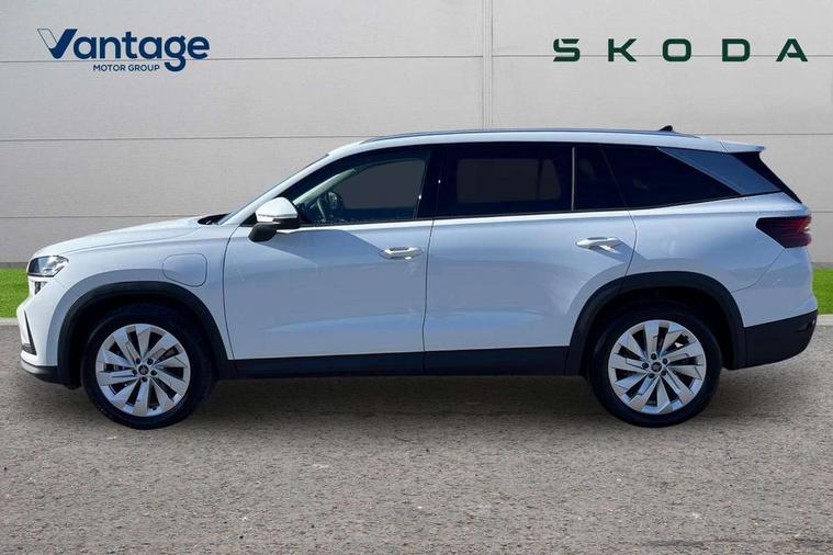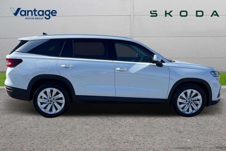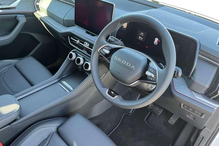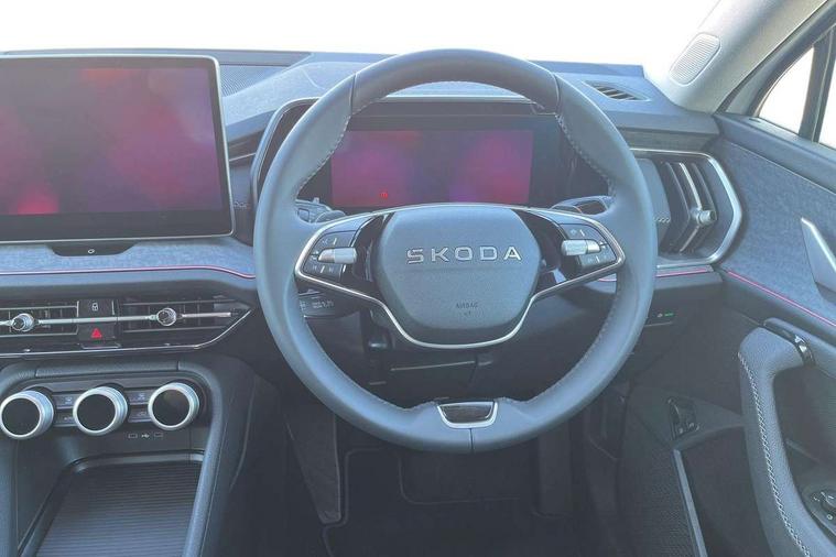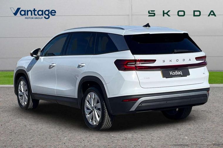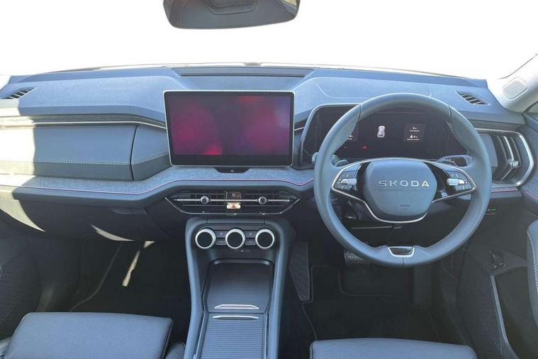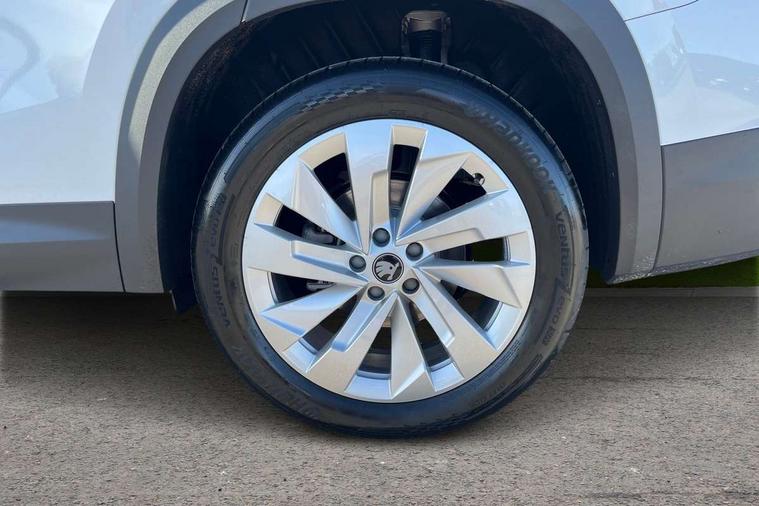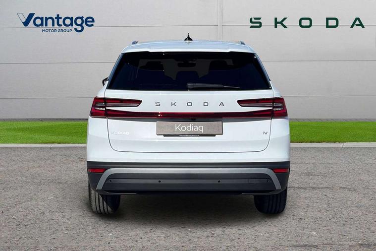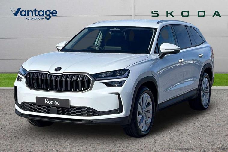 13" satellite navigation touchscreen display, Blind spot detection with door exit warning, Bluetooth system, ChatGPT functionality, Driver alert - Fatigue and drowsiness monitor, Dry display cleaner, Emergency call, Front and rear parking sensors, Front cross traffic assist, Lane assist, PAS, Rear traffic assist, Tailgate unlocking from outside, Traffic sign recognition, USB C Port x 2 in front centre console, Virtual Cockpit - 10.25" digital display, Voice control system, Wireless charging for two smartphones (15W) with cooling function, Wireless SmartLink for Apple CarPlay and Android Auto, 32A charging cable, Stop/start function, 2x USB-C in the rear, DAB Digital radio, Aero front windscreen wipers with intermittent function, Auto dimming rear view mirror, AWL (all weather lighting) and all weather light with cornering function, Black wheel arch surrounds, Body colour bumpers, Body colour door mirrors and handles, Cornering light and poor weather light, Electric folding /adjustable/separted heated/folding door mirrors, auto dimming with boarding sports and memory function, Electric front and rear windows, Exterior black decorative trims, Heat insulating glass in windshield, Heated rear window, Ice scraper in fuel tank cap, Invisible tailpipe, LED daytime running lights, LED third brake light in rear spoiler, Light assistant with automatic headlight control and coming home feature, Logo projection in door mirrors, Privacy glass, Rear roof spoiler, Rear side wing doors, Rear window wiper, Red decorative strip between rear LED lights, Safety reflectors on front and rear doors, Unique dark chrome design logo on alloy wheels, Window control switches with black trim, Windscreen wipers with rain sensor, Without engine designation, 1.5l bottle holder points in all door, 1x centre rear reading light, 3 configurable smart dials with 32mm coloured display, 3 seat bench in 2nd row, 4 foldable roof handles with rear coat hooks, Ambient interior lighting - Dashboard, front-door stowage compartments, front and rear door panels and footwell lighting, Automatic gear selector on steering column, Chrome interior door handles, Driver/front passenger reading lights, Fabric headlining, Fixed bench 40:60:40 split folding backrests, Front and rear floor mats, Front centre armrest with jumbo box storage compartment, cup holder and 12V socket, Height adjustable front headrests, Isofix child seat fittings in outer rear seats and front passenger with top tether, iV badging on boot, Manually adjustable steering column, Pollen filter, Rear centre armrest with cupholders, Rear seat boot backrest release, Single front passenger seat, Skoda lettering on steering wheel, Storage pocket including mobile phone pockets on the backs of the front seats, Sunvisors with illuminated vanity mirrors, Three rear height adjustable headrests, Ticket holder on A Pillar, Tri zone climate control, Umbrella in door panel x1 made from sustainable materials, Upper and lower glovebox with card holder and coin compartment, USB C port by rear view mirror for charging only (15W), Exterior styling pack - Kodiaq, Auto door release and activation of warning lights in the event of an accident, Driver and front passenger airbag with knee airbag and front passenger airbag deactivation, Electric child locks, Electronic parking brake, ESC (incl. ABS+EMD+MSR+ASR+EDL+HBA+DSR+RBS+ESBS+MCB+TSA+XDS), Front assist with braking reaction to vehicles, pedestrians and cyclists, Front disc brakes, Fuel cut off safety device, Height adjustable front 3 point seatbelts + pretensioners, Hill hold assist, Junction assist with automatic emergency braking, Rear disc brakes, Safety vest holder in door, Seat belt reminder for all seats, Three point rear seat belts, Two tone horn, Tyre pressure monitor, Anti-theft wheel bolts, Immobiliser, Remote central locking with 2 keys, Breakdown kit, Tool kit,