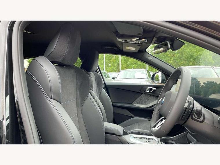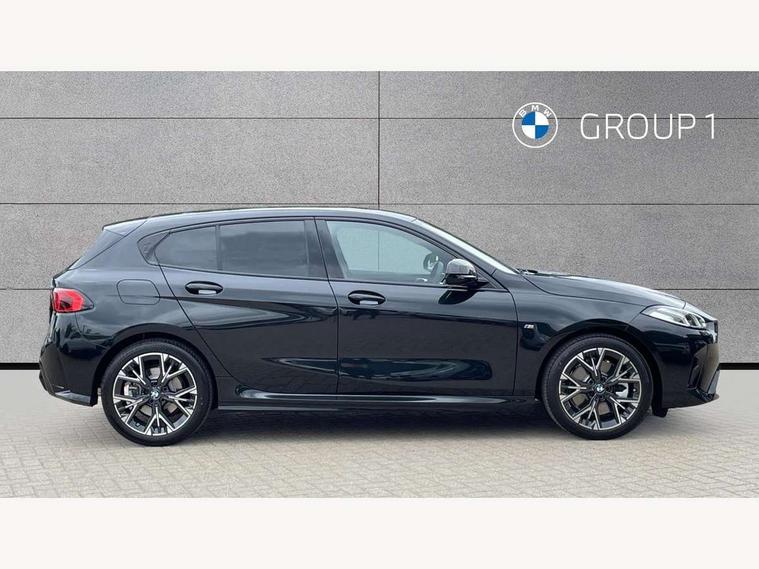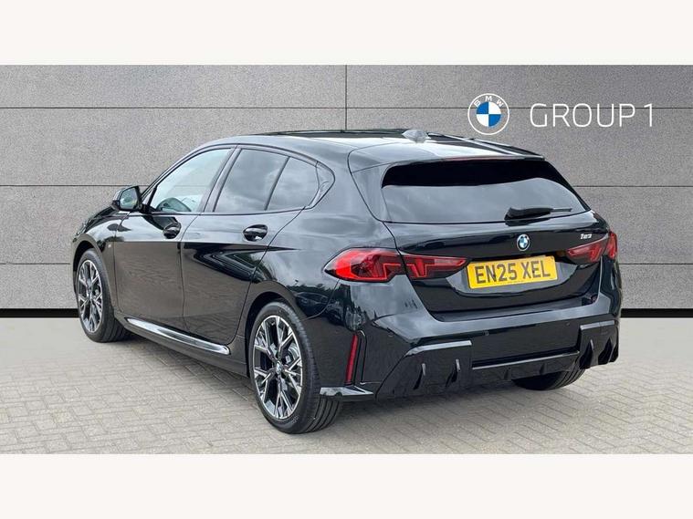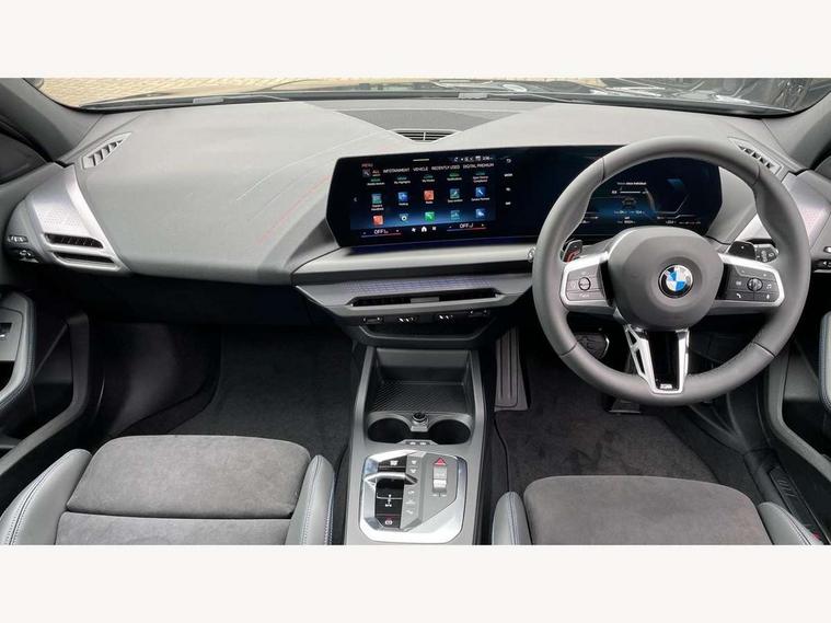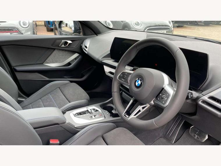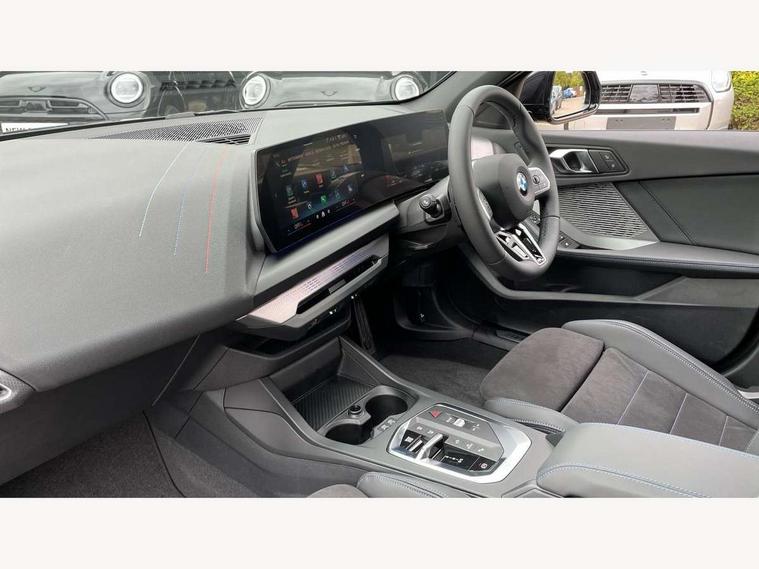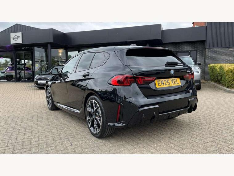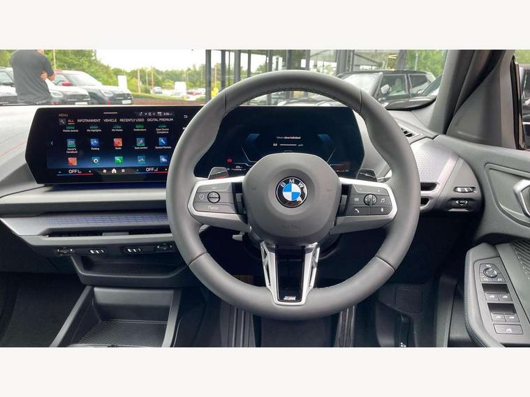 Active guard plus, Attentiveness assist, Bluetooth / WiFi interface for wireless connection of mobile terminal devices and audio streaming, BMW ConnectedDrive online services, BMW Live cockpit plus, BMW Teleservices, Check Control warning system for monitoring of lights and door/luggage compartment open warning, Eco pro mode, Electric power steering with Servotronic steering optimised at all speed ranges, Evasion assistant, Flat airvents in instrument panel with adjustable slats, Front and rear parking sensors, Front axle single joint with specific axle kinematics to minimise drive influences on steering + provide increased rigidity agile driving behaviour, Gearshift time display in manual mode, Integrated owners handbook, Left turn warning with brake function, My modes (Personal / Efficient / Sport), Oil sensor for level and grade, On board computer, Optimum shift indicator, Park assist including reversing assistant, lateral parking aid and reversing assist camera, Personal e-SIM, Personal Profile, Pull away assistant, Rigidly mounted rear subframe - Multi link construction with separate spring / damper configuration and excellent driving characteristics, Speed limit Info including no-overtaking indicator, Speed limiter, 49 litre fuel tank, Aluminium lightweight construction, Anti roll bar front and rear, Balancer shaft, Double VANOS twin scroll turbocharging system, Drive Performance Control, Electronic differential lock, Electronic selector lever, High precision injection, M Adaptive suspension, Petrol Particulate Filter, Steptronic transmission with double clutch, Twin tube gas filled shock absorbers with degressive characteristic curve, VALVETRONIC engine management, DAB Digital radio, Auto dimming rear view mirror, Automatic windscreen wipers and automatic headlight, Body colour door handles, Body colour roof trims, Chrome 'M' logo side designation, Chrome exhaust twin tailpipes round 90mm in left, Chrome kidney grille frame with Satin Aluminium struts, Direction indicator side lights in exterior mirrors, Electrically adjustable exterior mirror with mirror adjustment switch on drivers armrest and aspheric on driver side, convex on passenger side, Exterior M sport design elements, Fading support, Folding side mirrors with auto dimming/folding wing mirrors with auto dimming, Follow me home headlights, Front and rear bumper system with replaceable deformation elements, Front and rear electric windows with open and close fingertip control, anti trap facility and comfort closing, Front bumper panel with M specific design in vehicle colour with inserts in black high gloss, Front door sill finishers in black plastic with M designation in metallic look, Green tinted heat protection glazing, Heated rear window, High gloss black exterior mirrors, High gloss shadowline window frame, Recess cover mirror frames and B/C pillar embelisher trim, High level third brake light, Integrated front windscreen with washer jets, LED daytime running lights, LED eyebrow turn indicators, LED front fog lights, LED Headlights, Lightweight engineering, Matt black air guide grilles, Matt black wheel arch trim, Model badge on tailgate right, Nearside reverse light in rear light cluster, Preparation for high beam assistant, Rain sensor, Rear bumper panel with M-specific design in vehicle colour with inserts in black high gloss, Rear fog lights, Rear side wing doors, Rear window wiper, Shark fin antenna, Side sill covers with M specific design in body colour, Trailer stabilisation logic, Visible VIN plate, Welcome lighting, 12V power socket in front centre console with blanking plug, 3 rear seat head restraints, 3 seat bench in 2nd row, 3 spoke sports leather steering wheel with black leather and stitching, pearl chrome decorative finish, specific M Badge, Anthracite front and rear floor mats, Anthracite headlining, Black boot net with lashing eyes, Cargo function on 2nd seat row, Child seat ISOFIX attachment for two outer rear seats and front passenger seat with anchorage points, Conditioned based service, Driver and front passenger backrest net on rear, Driver and front passenger seat heating, Driver side folding compartment in instrument panel, Folding rear clothes hook, Footrest and pedals in black plastic, Four grab handles integrated in roof lining, Front and rear door pockets with bottle holders, Front and rear side armrest integrated into door trim, Front armrest with storage compartment, Gearshift paddles on steering wheel, Glove compartment, Height adjustable front head restraints, Luggage compartment for bag hooks on left and right, foldable luggage compartment liner and four lashing eyelets, Manual adjust steering wheel, Multi-function controls for steering wheel, Rear seat backrest with manual 60:40 split folding with 3 top tether clips integrated on rear of seat panels, Single front passenger seat, Storage compartment in centre console, Storage compartment in luggage compartment, Stowage of the parcel shelf in luggage compartment trim, Sun visors with vanity mirrors and insert tab, Two front centre console cupholders, Type C two USB ports in rear centre console, Upper retaining strap integrated into backrest rear panels, Connected pack professional - 1 Series, Interior lights pack - 1 Series, M Sport exterior styling aerodynamics pack - 1 Series, 2 tone horn, 3 point seatbelts on all seats, front pyrotechnic belt tensioners, stopper and belt force limiters, rear coded belt buckles, Airbags - Front driver/passenger, front and rear curtain head protection, front side, manual deactivation of front passenger airbag, Anti lock braking system (ABS) with brake assist, BMW emergency call, Brake drying, Braking readiness, Child proof locking system in rear door, Comfort modes, Cornering brake control, Crash sensor activating of airbags, Unlocking doors, hazard warning lights, fuel cut off, interior lighting+activation of safety battery terminal clamp, Driver and front passenger seat belt security check, Dynamic