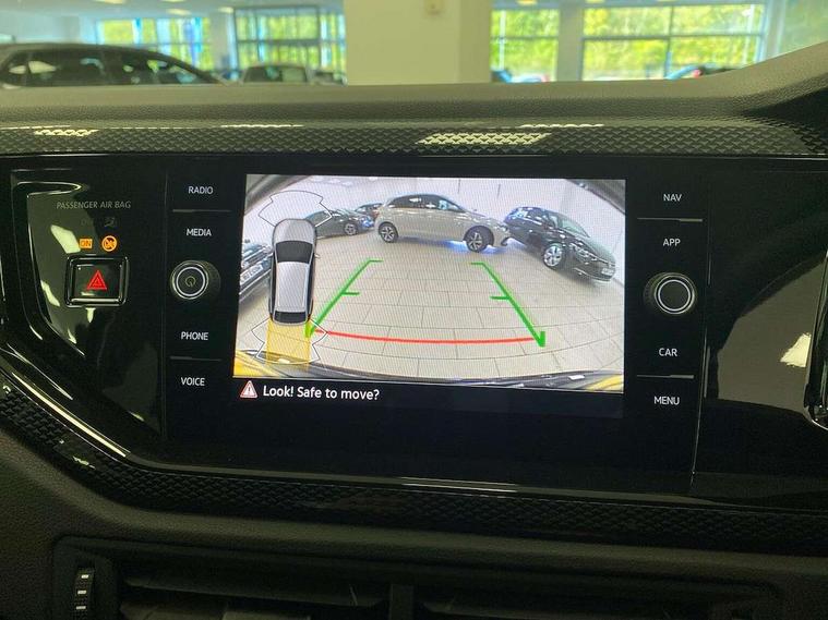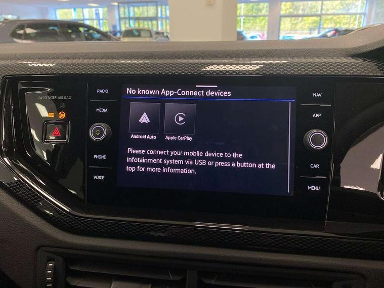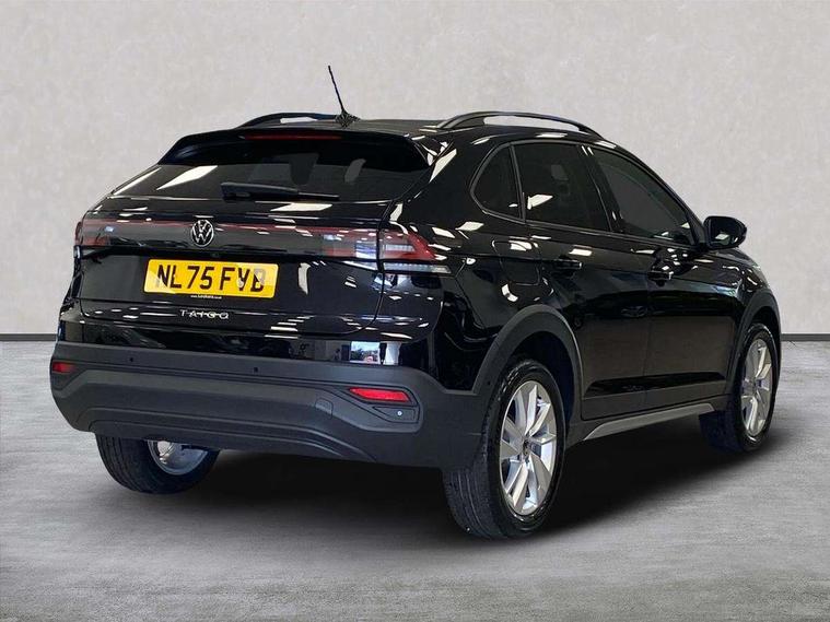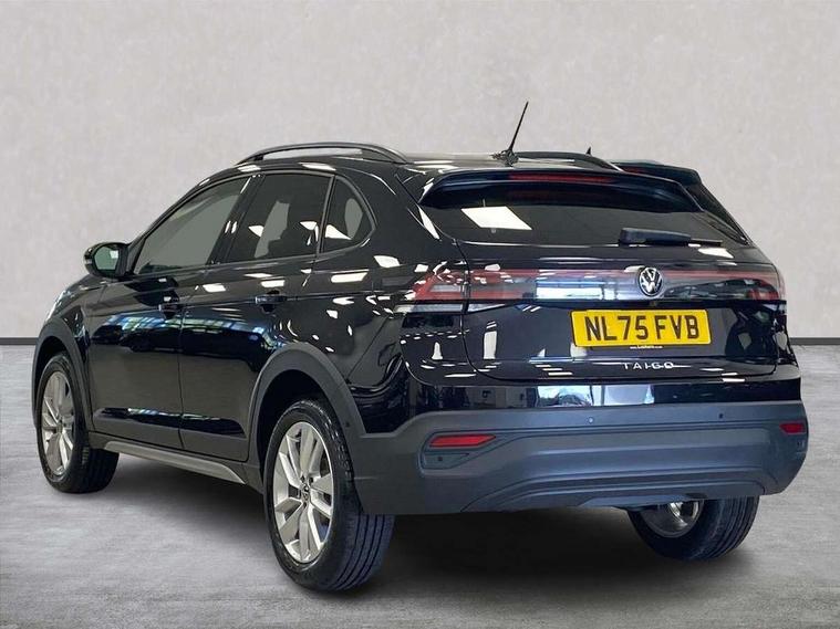 8" Digital cockpit basic display, Advanced driver attention and drowsiness monitor, Dynamic road sign display, e-Call (emergency call), Power Steering, Predictive adaptive cruise control, Rear view camera, Travel assist including emergency assist, Washer fluid level indicator, Wireless Charging including Bluetooth, Start-stop system with battery regeneration (recuperation - energy recovery during braking), Digital radio reception (DAB+), WeConnect plus, Ambient lighting with logo projection, Aspherical driver's exterior mirror, Body coloured bumpers, Body coloured exterior mirror housings and door handles, Electric windows, External USB type C socket and charging sockets, Heat insulating glass windscreen, LED rear combination lamp, LED third brake light, Left convex exterior mirror, Power folding adjustable/heated exterior mirrors and front passenger exterior mirror lowering function, Rear fog light on one side, reversing light on both sides, Rear side wing doors, Rear wash/wipe with intermittent wipe setting, Side windows in heat-insulating glass, from B-pillar and rear window dark tinted, 'Slash/ Austin' Cloth upholstery, 12V socket in centre console, 2 front reading lights, 3 rear head restraints, 3 seat bench in 2nd row, Black carpets, Ceramique headliner, Child seat anchor for child seat system i-Size, 2x top tether and child seat anchor in front on front passenger side, Door and side trim panels in titan black, Driver and front passenger seat height adjustment, Front centre armrest, Handbrake lever handle in leather, Height and reach adjustable steering wheel, Leather trimmed gear knob, Leather wrapped multifunction steering wheel, Luggage compartment floor, Luggage compartment light, Lumbar support for driver's and front passengers seat, Seat covers in titanium black, Single front passenger seat, Split folding backrest with centre armrest and unsplit rear seat bench, Storage compartment under front seats, Sun visors with illuminated vanity mirrors, Titanium black instrument panel, Chrome Package - Taigo, Drivers assistance package - Taigo, Light and sight pack - Taigo, 2 x 3-point seatbelts/outer rear seats with ECE label, 3-point seat belts in front with pretensioner and height adjustment, 3-point seatbelt for centre rear seat, Driver and front passenger airbag with front passenger airbag deactivation, Driver and front passenger safety-optimised head restraints, Electronic stability control, Extended and predictive pedestrian/ cyclist protection, Front and rear disc brakes, Front curtain and side airbags with center airbag, Hill start assist, Manual rear child locks, Single tone horn, Tyre pressure loss indicator, Anti-theft alarm system with interior monitoring, backup horn, and towing protection, Keyless locking and starting system keyless access with safelock, Black (slush) Dashboard, Lava stone black gloss/matt decorative inserts in dash and front door panels, Low rolling resistance tyres,