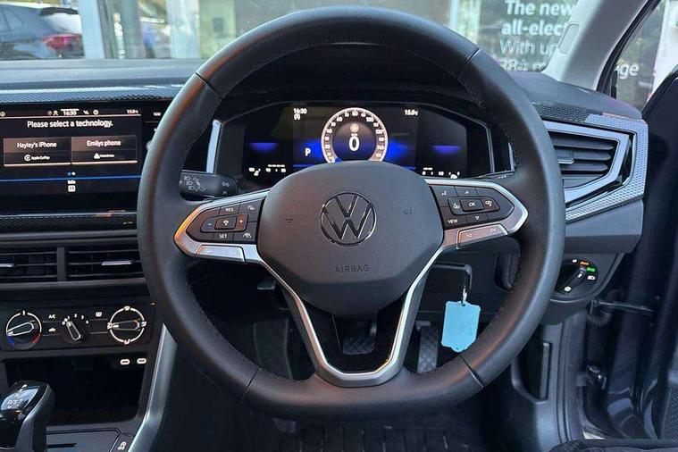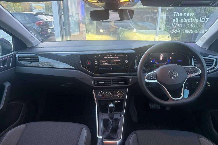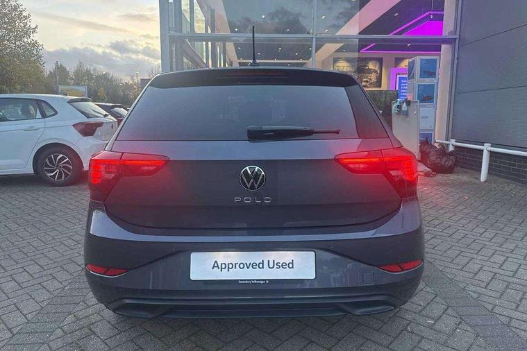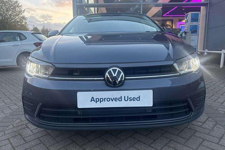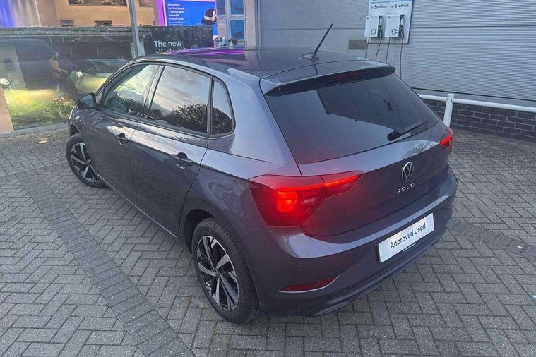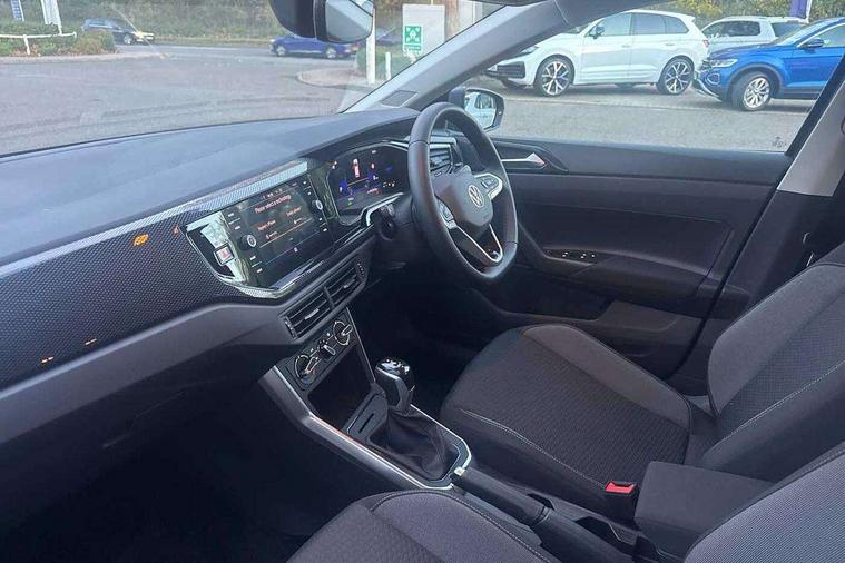 Advanced driver attention and drowsiness monitor, Bluetooth mobile phone interface, Dynamic road sign display, Emergency call service, Mobile phone preparation with inductive charging function, Multifunction front facing camera for distance control, Power assisted speed sensitive steering, Predictive adaptive cruise control without follow-to-stop and speed limiter, Preparation for navigation system with media and internet package, Preparation for We connect and We connect plus, Rear view camera, Speedo and rev counter, electronic odometer, trip, service interval display and exterior temperature gauge, Standard rear axle, Travel Assist - Lane keeping system and traffic jam assist, Travel assist including emergency assist, Trip computer, Warning signal and warning light for front and rear seatbelts not fastened, Washer fluid level indicator, Wireless app connect, Front wheel drive, Rear shock absorpion, Start-stop system with battery regeneration (recuperation - energy recovery during braking), DAB Digital radio, Diversity antenna for FM reception, Automatic dimming interior rear view mirror, Automatic headlight control with LED separate daytime running lights with coming/leaving home function, Body colour bumpers with chrome inserts, Body colour door handles, Body colour door mirrors, Electric front windows, Engine badge deletion, Headlight range adjustment, Heat insulating and laminated safety glass windshield, LED Headlights, LED rear combination lamps, Power folding adjustable/heated exterior mirrors and front passenger exterior mirror lowering function, Rain sensor, Rear electric windows, Rear fog light, Rear side wing doors, Rear tinted glass from B-pillar backwards approx 65% tinted, Rear windscreen washer and wiper with interval delay, Third brake light, 12V power socket in centre console, 2 front and 2 rear reading lights with switch off delay and dimmer, 2 USB-C ports in the front, 2 USB-C charging sockets on the center console in the rear, 3 rear head restraints, 60/40 split folding rear seat and rear seat bench not split, Ceramique roof lining, Chrome plated radiator grille inserts, air vent surrounds and light switch surrounds, Door and side trim panel, Driver and front passenger seat height adjustment, Driver/passenger sunvisors with illuminated vanity mirrors, Front centre armrest, Front seat backrest storage pockets, Front standard seats, Handbrake lever handle in leather, Hartley/Thomas cloth upholstery, Headliner in recycled material, Isofix child seat preparation easy-fit (for two outer rear seats, and front passenger seat) compatible with I-size, Leather trimmed gear knob, Luggage compartment cover, Luggage compartment lighting, Removable luggage compartment floor, Single front passenger seat, Standard climatic zones, Standard pedal cluster, Three spoke leather wrapped multifunction steering wheel with shifting paddles, Light and vision pack - Polo, 3 point height adj front seatbelts + pretensioners, 3 point seat belt for centre rear seat, 3 point seatbelts, outer rear with ECE lable, ABS, Driver and front passenger airbag with front passenger airbag deactivation, Drivers and front passengers safety optimised head restraints, ESC (Electronic stability control) + EDL (Electronic Differntial lock) and ASR (Traction control), Extended and predictive pedestrian/ cyclist protection, Front assist with autonomous emergency braking (for Adaptive Cruise Control ACC up to 130 mph), Front curtain and side airbags with center airbag, Front disc brakes, Hill hold control, Manual child lock in rear doors, Rear drum brakes, Single tone horn, Tyre pressure loss indicator, Alarm with interior protection, Anti-theft alarm system with interior monitoring, backup horn, and towing protection, Anti-theft wheel bolts, Electronic engine immobiliser, Lava stone black gloss/matt decorative inserts in dash and front door panels, 16" Torsby alloy wheels, Low rolling resistance tyres,