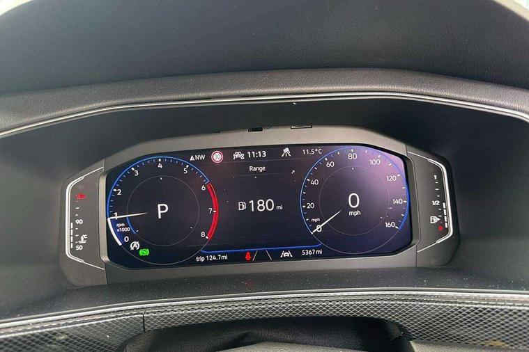 'Lights On' Reminder warning buzzer, 10.25" Digital cockpit pro, Advanced driver attention and drowsiness monitor, Car information display, Driver profile selection including ECO function, Dynamic road sign display, E-Sim card for online connectivity, eCall emergency call system, Front and rear parking sensors, Front assist, forward collision warning, autonomous emergency braking and speed limiter, Low washer fluid warning light, Mobile phone interface with inductive charging, Multifunction computer with visual gear change recommendation for fuel consumption, Multifunction front facing camera for distance control, Operating permit alteration, Power assisted steering, Predictive adaptive cruise control, Preparation for navigation system with media and internet package, Preparation for We connect and We connect plus, Semi-automated driving assistance, travel assist including lane keeping system Lane Assist and emergency assisst, Side assist, Speedo, rev counter, electronic odometer, trip, service interval display, exterior temperature and fuel gauge, Warning sound and light for doors and tailgate open, Warning sound and light for front seatbelts unfastened, Wireless Car net app connect with Apple CarPlay, combined functionality of Apple CarPlay/Android Auto and MirrorLink, Wireless charging, Misfuel prevention device, Start-stop system with battery regeneration (recuperation - energy recovery during braking), 2 USB C ports in front, 2 USB charging sockets on the centre console in the rear charging capacity upto 45W, Diversity antenna for FM reception, Music playback - MP3, WMA and AAC files, Radio, Advanced high beam control dynamic light assist, Automatic dimming interior rear view mirror, Automatic hazard lights activation under emergency braking, Automatic headlight control and coming home and leaving home feature, Black roof rails, Body colour door handles, Body coloured bumpers, Cornering light and poor weather light, Dynamic headlight range control, Electric folding door mirror, adjustable, heated with front passenger exterior mirror lowering function, Exterior mirror housings in black, Exterior mirrors convex on the left and aspherical on the right, Front and rear electric windows, Front door sill protectors with R-Line logo, Galvanised body, Heat insulating and laminated safety glass windshield, Heat insulating darkened glass in side and rear windows, Illuminated molding between headlamps, IQ.Light LED matrix headlamps with LED separate daytime running light, LED rear tail lights with dynamic turn signal, LED third brake light, Lower door sills and door pillars in black, Privacy glass for rear side windows and rear window, Rain sensor, Rear fog light on one side, reversing light on both sides, Rear side wing doors, Rear window aerial, Rear window wiper with intermittent control, Reflectors in all doors, Scuff plates, Tailgate with integrated roof spoiler, 12V Accessory socket in centre console, 2 Front and rear reading lights incorporating LED technology, 3 rear head restraints, 3 seat bench in 2nd row, 60/40 split folding rear seat backrest, Air care climatronic 2 zone air conditioning system, Ambient lighting and logo projection, Brushed stainless steel pedals, Chrome plated radiator grille inserts, air vent surrounds and light switch surrounds, Cloth upholstery, Comfort front sport seats, Door and side trim panel, Driver and front passenger sunvisor with vanity mirror, Dust and pollen filter, Front + rear carpet mats, Front centre armrest, Front centre armrest with storage compartment, Front footwell illumination, Front seat back storage pockets, Glove compartment door with light, Heated front seats, Heating and fresh air system with 4 stage blower, Height/reach adjust steering wheel, Instrument lighting white adjustable panel illumination, Interior light with switch off delay and dimmer, Isofix anchors for child seats on outer rear seats and front passenger seats, Leather gearshift handle, Leather wrapped multifunction steering wheel with paddle shift, Luggage compartment floor, Luggage compartment lighting, Manual front seats with height adjustment, Padded dashboard, Removable luggage compartment cover, Single front passenger seat, Storage compartment in drivers and front passengers door, Titanium black roof lining, Unsplit sliding rear seat bench, Without drawers under front seats, 3 point outer rear seat belts with ECE label, 3 Point seatbelt for centre rear seat, Anti-lock Braking System (ABS) with Hydraulic Brake Assist (HBA), Automatic post collision braking system, Disc brakes in front, Disc brakes in rear, Driver and front passenger safety-optimised head restraints, Drivers and Front Passengers airbags with front passengers airbag deactivation switch, ESC with EDL and ASR (traction control), Extended and predictive pedestrian/cyclist protection, Front and rear passenger curtain airbag system including front side airbags, Height adjustable front 3 point seatbelts + pretensioners, Hill start assist, Pre crash preventive occupant protection, Proactive passenger protection system in combination with front assist, Rear door child safety locks, Rigid safety cell with front and rear crumple zones, Single tone horn, Tyre pressure loss indicator, Volkswagen roadside assistance, Alarm with interior protection, Anti theft alarm system, Anti theft wheel bolts, Electronic engine immobiliser, Remote tailgate unlocking using key fob, Black decorative trims, Titanium Black Decorative inserts - R Line, 18" York alloy wheels in black, Low rolling resistance tyres,