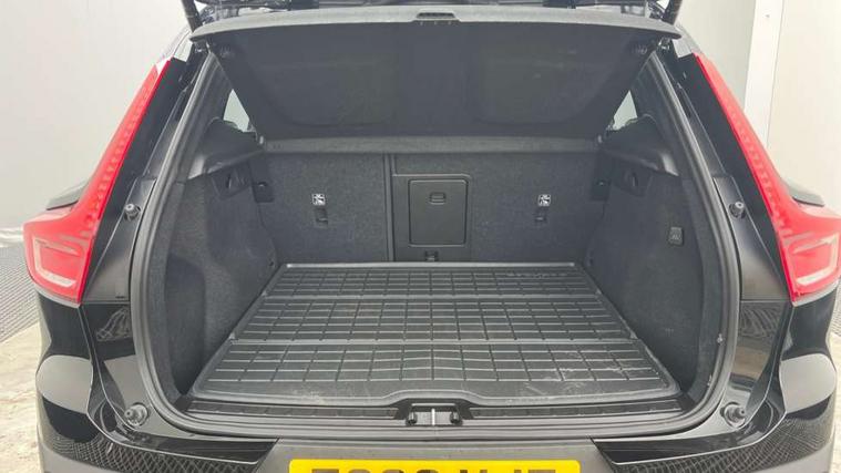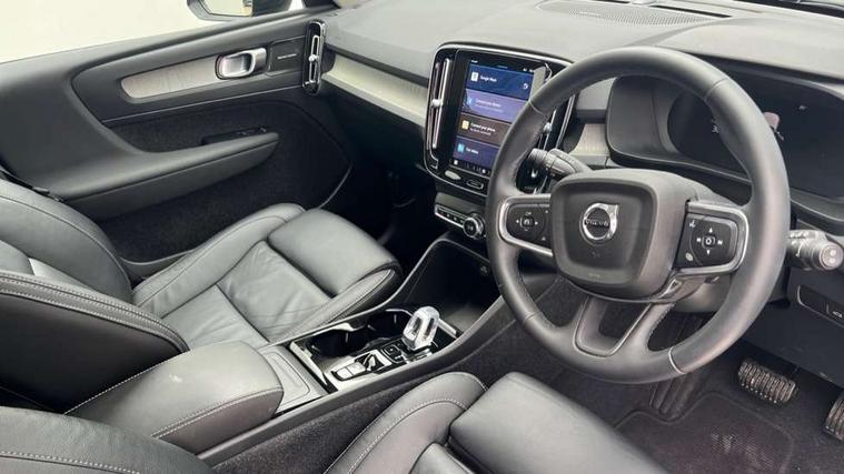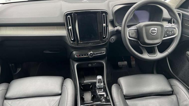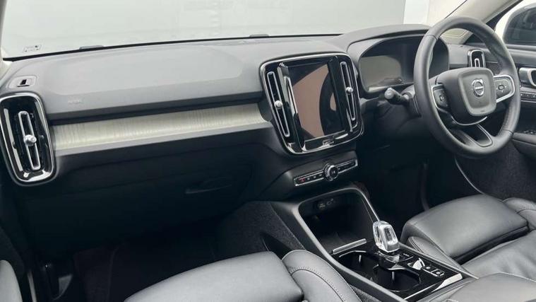 12.3" Progressive Driver Display, 360 degree surround view parking camera with side proximity sensors, 9" centre console portrait touch screen, Adjustable steering wheel force, Bluetooth hands free telephone kit, E-call, Front park assist, Google automatic services - Nav with google maps, apple carplay/android auto, voice recognition with google assistant, Hands free power tailgate, Lane keep assist with driver alert control, Oncoming Lane Mitigation, Rear park assist, Speed limiter, Speed sensitive steering, Wireless/Inductive Mobile Phone Charging, Dynamic chassis, DAB Digital radio, Premium Sound by Harman Kardon, Dolby Pro Logic II Surround Sound, Dirac Unsion, 12 speakers/600W and subwoofer, Steering wheel mounted remote controls, Active bending pixel LED headlights with adaptive shadow technology, Active high beam incorporating daytime running lights, Adaptive brake lights with high level LED brake lights, Auto dimming interior mirror, Automatic headlamp levelling, Dark tinted windows for rear door side windows and cargo compartment, Front aluminium tread plates, Front and rear electric windows, Headlight cleaning system, High gloss black front and rear skid plate, High gloss black mesh front grille with high gloss black surround, High gloss black window trim, Home safe and approach lighting, Integrated roof rails in high gloss black, LED front fog lights, Power glass tilt and slide panoramic sunroof with sun curtain, Puddle lights, Rain sensor with automatic windscreen wiper activation, Rear side wing doors, Rear wiper, Roof antenna, Roof spoiler, Visible VIN plate, 12V socket in front tunnel console and cargo compartment, 2 zone electronic climate control with clear zone air quality system and pollen filter, 3 seat bench in 2nd row, 3 Spoke tailored steering wheel with chrome trim, 60/40 versatile split folding rear seat, A-pillar parking ticket holder, Ambient front door and instrumental panel lighting, Centre console cupholders and storage, Flexible load floor and grocery bag holder, Floor mats, Front door pocket and front cupholder illumination, Front footwell illumination, Front headrests, Front reading light and theatre lighting, Front seat cushion extensions, Front tunnel pocket, Glovebox bag hook, Heated front seats, Height adjustable passenger seat, Height/reach adjustable steering column, High gloss centre tunnel deco, Illuminated glovebox, Illuminated luggage compartment, Illuminated tailgate, Illuminated vanity mirrors, Integrated waste bin, Isofix attachments on rear seats, Load protection net, Multi directional lumbar support, Power driver seat with memory + exterior mirrors memory, Power folding rear headrests, Power passenger seat, Rear armrest / integral cup holders / storage tray, Rear reading and courtesy lights, Single front passenger seat, Underfloor cargo storage, Climate pack without heated front seats - XC40, Driver assist pack - XC40, 3x3 point rear seatbelts, City safety with steering support with Pedestrian + cyclist + front collision warning with full auto brake and rear auto brake, Drivers knee airbag, Dual stage driver/passenger airbags, Electronic parking brake with auto hold, First aid kit, Front and outer rear seatbelt reminder and pretensioners, Front seats SIPS airbags, Hill descent control, Hill start assist, Inflatable curtain, Passenger airbag cut-off device, Power child locks on rear doors, Road sign information display, Run off Road Mitigation, Run off Road Protection, SIPS (Side Impact Protection System), Slippery road and hazard light alert, Stability and Traction Control with Spin control, Engine Drag Control and Corner Traction Control, Tyre pressure monitoring system, Vehicle deceleration control with Anti-lock Brake System, Electronic Brake Distribution and Emergency Brake Assist, Warning triangle, WHIPS whiplash protection system - front, Anti-theft alarm including immobiliser/volume sensor + level sensor, Key integrated remote control central locking + fuel flap with deadlocking system and auto open/close power windows, Keyless drive includes keyless entry and keyless start, Locking wheel nuts,