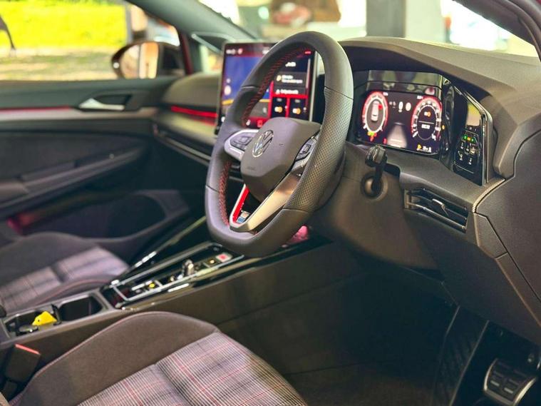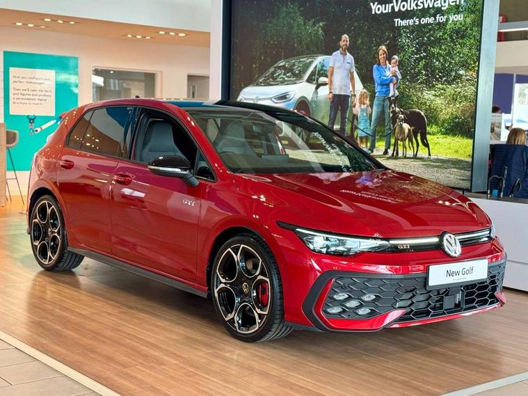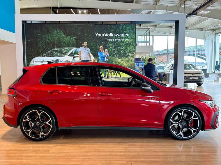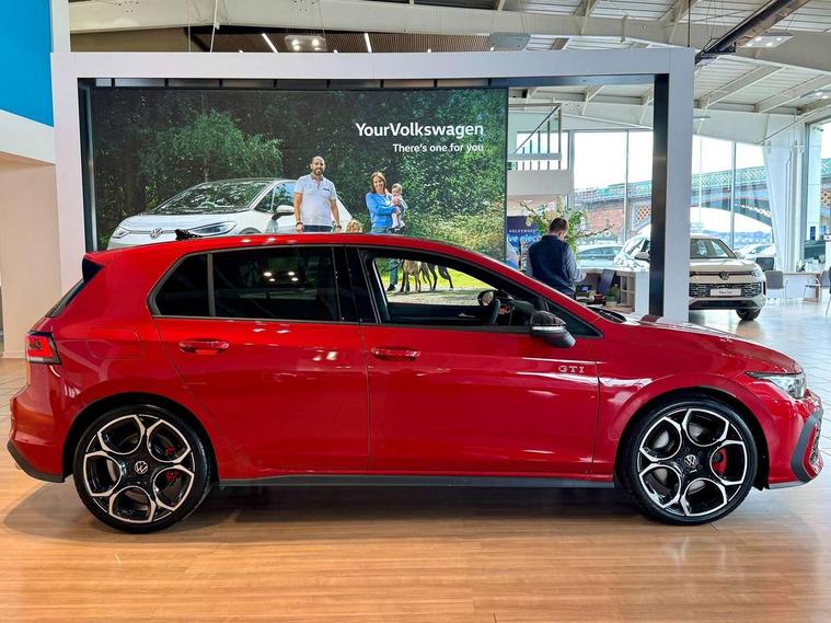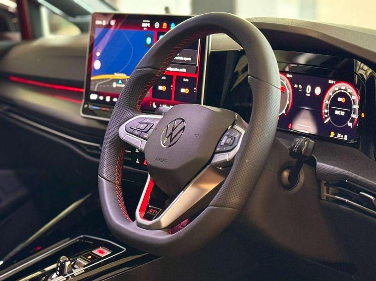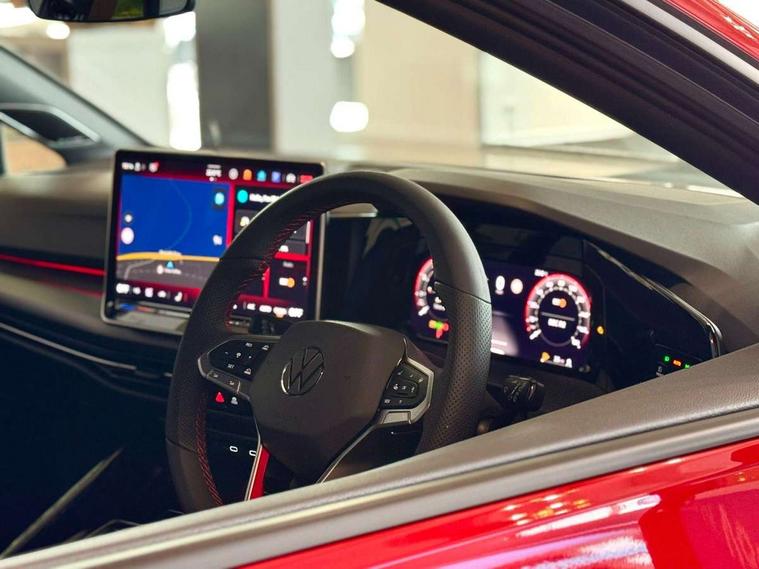 Activated carbon canister, Adaptive cruise control (ACC), Advanced driver attention and drowsiness monitor, Dynamic road sign display, E-Sim card for online connectivity, eCall emergency call system, Multi-color Digital cockpit pro, selection of different info profile possible, Multifunction front facing camera for distance control, Navigation system, Oncoming vehicle braking when turning including swerve support, Side assist blind spot lane change system, rear traffic alert and exit warning system, Speed limiter, Speedo, rev counter, electronic odometer, trip, service interval display, exterior temperature and fuel gauge, Traffic jam assist, Voice enhancer and voice control, Warning signal and warning light for front and rear seatbelts not fastened, We connect plus preparation, We connect preparation, Wireless app connect, Front differential lock, Petrol Particulate Filter, Start-stop system with battery regeneration (recuperation - energy recovery during braking), 2 USB C ports in front, 2 USB charging sockets on the centre console in the rear charging capacity upto 45W, Digital radio reception (DAB), Diversity antenna for FM reception, Gaming platform via car app, Infotainment system with 12.9" display, Mobile phone interface with inductive charging feature, 3rd brake light, Auto dimming rear view mirror, Automatic headlamp activation with Coming home and Leaving home feature, Body colour door handles, Body coloured bumpers, air intake in honeycomb structure, Exterior mirrors convex on the left and aspherical on the right, Front and rear electric windows, Front fog lamps and cornering light, Heat insulating windshield made of laminated glass, LED separate daytime running light, Nameplate 'GTI' set, Rain sensor, Rear exhaust tailpipe, Rear fog light on one side and reversing lights on both sides, Rear side wing doors, Rear windscreen washer and wiper with interval delay, Remote electrically foldable door mirrors, puddle lights and reverse activated passenger's door mirror, Welcome light with surround lighting, 12V socket in front centre console, 12V socket in luggage compartment, 3 rear head restraints, 3 seat bench in 2nd row, 30 colour ambient lighting, illuminated center console storage compartment in front, Air care climatronic 3 Zone automatic climate control with rear air conditioning control panel, Aluminium gearshift handle, Brushed stainless steel pedals, Chrome plated radiator grille inserts, air vent surrounds and light switch surrounds, Entry lights, Front + rear black carpet mats, Front centre armrest, ISOFIX anchors for child seats on outer rear bench seats and on front passanger seat compatible for i-Size, Luggage compartment lighting, Rear cupholder and loadthough, Single front passenger seat, Soul black instrument panel, Soul black roof lining, Split folding backrest with centre armrest and unsplit rear seat bench, Sun visors with illuminated vanity mirrors, Driver assistance pack - Golf Estate/Hatchback Auto, Technology park and comfort pro package - Golf Hatchback, 3 point height adj front seatbelts + pretensioners, 3 rear three point seatbelts, ABS, Autonomous emergency braking front assist with pedestrian and cyclist monitoring, Child locks on rear doors, Driver and front passenger airbag with front passenger airbag deactivation, Electronic parking brake with auto hold, ESC (Electronic Stability Control), Extended pedestrian protection measures, Hill start assist, Rear disc brakes, Two tone horn, Tyre pressure loss indicator, Volkswagen roadside assistance, Anti theft wheel bolts, Preparation for alcohol interlock, Decorative inserts carbon grey for dashboard and front door trim panels, Sporty vehicle dynamics, Tool kit for tyre mobility set, Tyre mobility kit Includes 12V compressor and tyre sealant,