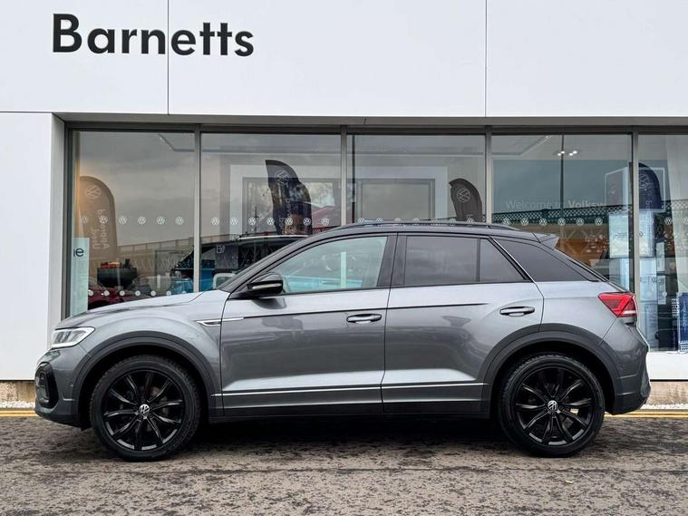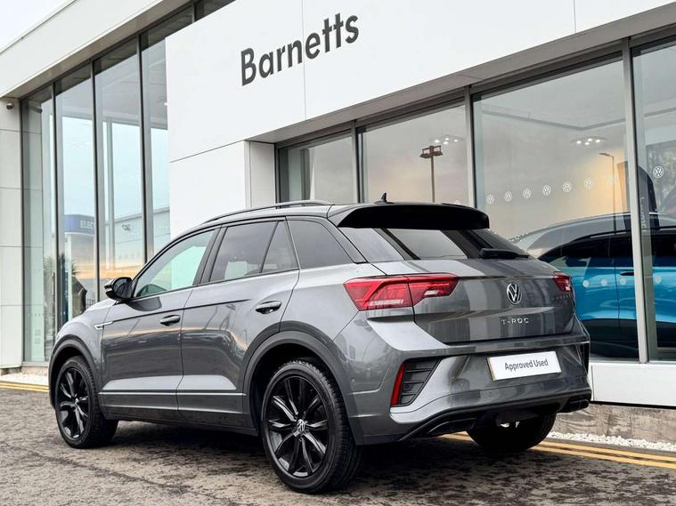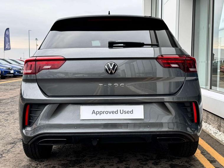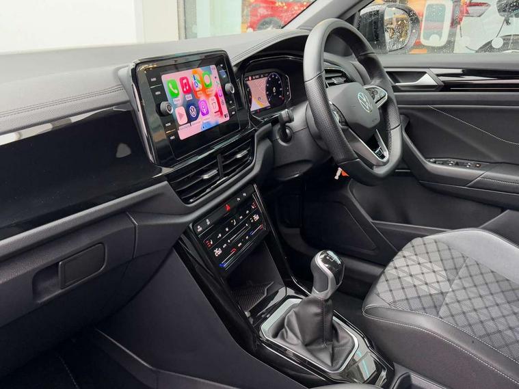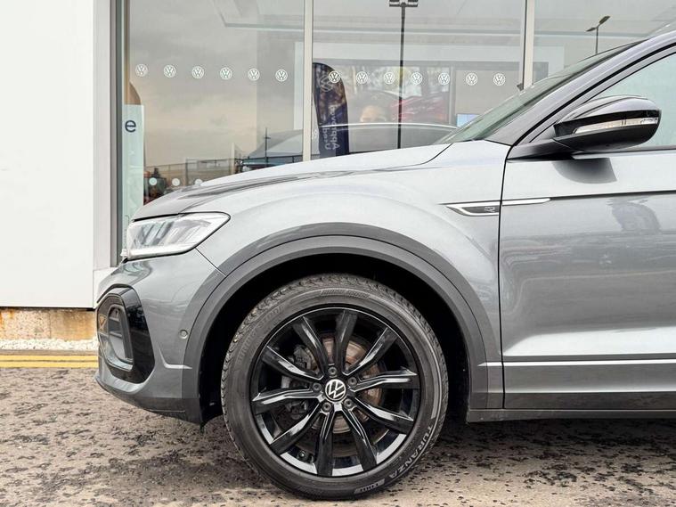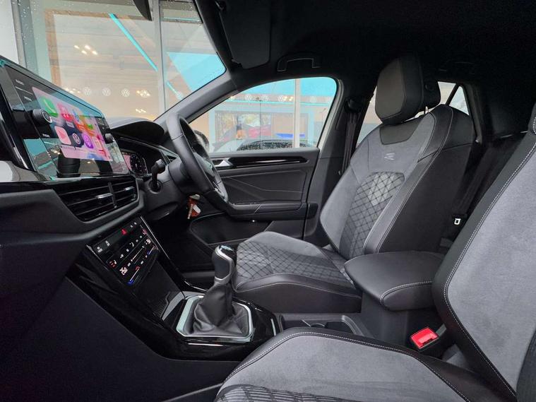 10.25" Digital cockpit pro, Bluetooth mobile phone interface, Driver alert system with fatigue detection, Driver tips and journey analysis, Emergency call service, Lane keeping system Lane Assist, Modified key software - reduce switch off time for key status change to Long no motion, Online services, Park assist including front and rear parking sensors, Service interval indicator, Tailgate/trunk lid release from outside, Think blue trainer driver tips and journey analysis, Warning sound and light for front seatbelts unfastened, Wireless app connect, Battery regeneration during braking, Start/stop function with battery regeneration, Diversity antenna for FM reception, Front and rear 6 speakers, Music playback - MP3, WMA and AAC files, Premium USB cable in choice of either Apple or Android smartphone compatibility, SD card slot, Simultaneous pairing of 2 compatible mobile devices, Title and cover art display, We Connect and We Connect Plus functionality, 3rd brake light, Auto dimming interior rear view mirror, Automatic hazard lights activation under emergency braking, Automatic headlight control with LED separate daytime running lights with coming/leaving home function, Extended roof spoiler, Exterior mirrors aspherical on driver side, convex on front passenger side, External USB type C socket and charging sockets, Front windscreen wiper with intermittent wipe and 4 position delay, Heated rear window, LED Plus headlamps, LED rear combination lamps, LED rear number plate lights, LED tail lamp rear comination lamps, Power windows with comfort operation and circuit breaker, R-Line design body coloured bumpers, Rain sensor, Rear exhaust tailpipe, Rear fog light on one side and reversing lights on both sides, Rear side wing doors, Rear wash/wipe with intermittent wipe setting, Remote electrically foldable door mirrors, puddle lights and reverse activated passenger's door mirror, 12V power socket in centre console, 3 rear head restraints, 3 seat bench in 2nd row, 4 load lashing points in luggage compartment, Air care climatronic air conditoning system with active combination filter and 2-zone temperature control, Black roof lining, Chrome plated radiator grille inserts, air vent surrounds and light switch surrounds, Door and side trim panel with leatherette insert, Drawer under drivers seat, Front + rear carpet mats, Front centre armrest, Front cupholders x 2, Front footwell illumination, Front reading light, Front scuff plates with R logo, Instrument lighting, white adjustable panel illumination, Interior ambient lighting and surround lighting, Interior light delay, Isofix child seat preparation, Leather gearshift handle, Load-through provision with cup holder when folded down ('Unsplit rear seat bench, split folding backrest, with centre armrest), Luggage compartment lighting, Single front passenger seat, Stainless steel pedals, Storage compartment in left and right luggage area, Storage compartment in rear doors, Storage compartments in driver and front passenger doors, Sunvisors with illuminated vanity mirrors, Variable boot floor, height adjustable and removable, Driver assistance pack without proactive passenger protection - T-Roc, 3 point height adj front seatbelts + pretensioners, 3 point seatbelts in outer rear with ECE label, ABS, Child locks on rear doors, Driver and front passenger airbag with front passenger airbag deactivation, Driver and front passenger safety-optimised head restraints, Drivers seatbelt reminder, Electronic parking brake, Electronic Stability Control (ESC) inc EDL (Electronic Differential Lock) and ASR (Traction Control), Front and rear passengers curtain airbag system including front side airbags, Front assist with city emergency braking and pedestrian monitoring, Front seat side impact airbags, Hill start assist, Predictive pedestrian protection, Rear disc brakes, Single tone horn, Tyre pressure loss indicator, Volkswagen roadside assistance, Alarm with interior protection, Anti-theft alarm system with interior monitoring, backup horn, and towing protection, Remote central locking with SAFELOCK, radio remote control with 2 remote control folding keys, Trims for alloy wheels,