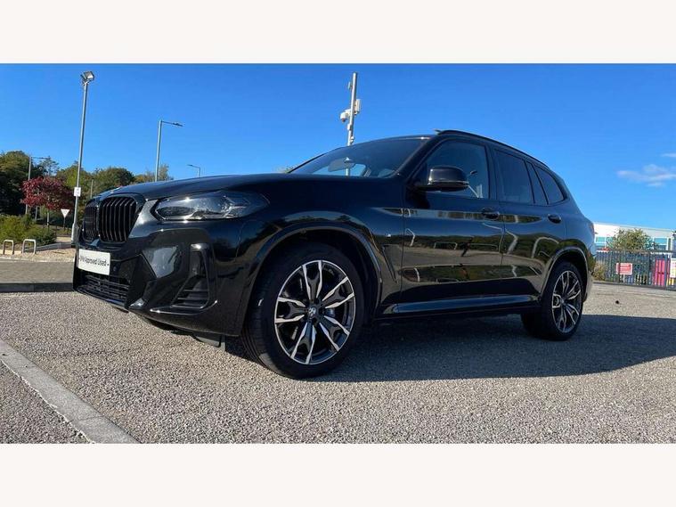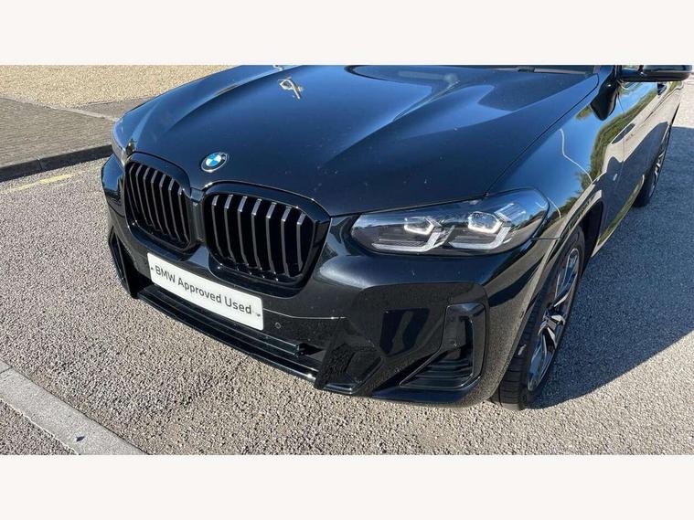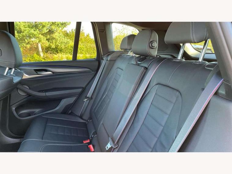 Active Guard, Attentiveness assist, BMW Live Cockpit Professional nav system including 12.3" instrument display + 12.3 high resolution control display, BMW Online services, BMW Teleservices, Brake pad wear indicator in front and rear, Check Control warning system for monitoring of lights and door/luggage compartment open warning, Condition based service - BMW service history, electronic service booklet, integrated owner's handbook, Connected drive services, Electric boot lid, Front/rear Parking distance control, iDrive touch controller with 8 favourite buttons, Instrument cluster with speedometer with mph readout, tachometer, fuel gauge and oil temperature gauge, Lights on warning by audio warning signal when ignition is switched off, Oil sensor for level and grade, warning by check control system, On board computer - average speed+fuel consumption, service interval, clock/date, odometer/trip meter, outside temperature display and ice warning, Optimum shift indicator, Personal Profile - automatic lock when driving away selectable, Run flat indicator, Stop/start system, Variable sports power steering with drive performance control Sport+ mode, Automatic transmission with gearshift paddles, Diesel particulate filter, Incorrect fuelling protection, Larger capacity fuel tank, M sport suspension, Multi-link rear suspension, BMW professional radio/CD/MP3, DAB tuner, Acoustic glazing, Automatic windscreen wipers and automatic headlight, Black finish on B pillars, Body colour door handles, Body colour electric adjust heated aspherical door mirrors, Body colour roof mouldings, Body coloured bumpers, Direction indicator, side repeaters, integrated in exterior mirrors, Dynamic brake lights, Exhaust tailpipes - dual, round, split left and right with chrome finisher, Fingertip control / anti-trap function on electric window, Folding wing mirrors with auto dimming, Follow me home headlights, Front and rear bumper system with replaceable deformation elements, Front and rear electric windows, Gloss chrome tailpipes finishers, Green tinted heat insulating glass, Heated windscreen washer jets, High beam assistant, High gloss black shadow line roof rails, High gloss shadowline exterior trim in decorative moulding side frame/recess cover/guide rail/B, C pillars/mirror frame and triangle with mirror base, High level 3rd brake light incorporating LED Technology, Interior rear view electrochromatic mirror with automatic anti dazzle function, LED tail lights, Lightweight engineering, M aerodynamic bodystyling, M Sport entry door sill strips, Model designation, Rain sensor, Rear side wing doors, Rear wing door, Rear wiper, Shark fin antenna, Side exterior M designation badges, Visible VIN plate, Welcome lighting, Windscreen wipers with adjustable interval, 12V power point in luggage area, 12V power socket in front centre console, 2 x USB Type C ports for charging and data transmission (front centre console) and 2 x USB Type C ports for charging (rear centre console), 3 rear headrests, 3 seat bench in 2nd row, 3 zone automatic air conditioning, 4 lashing points to secure luggage, 40:20:40 split folding rear seat with loading system, Ambient lighting, Anthracite headlining, Automatic interior light when door is opened/ignition switched off or via remote key, Floor mats in velour, Foldable storage floor with compartment, Four grab handles integrated in roof lining, Front and rear bottle holders integrated into door trim storage compartments, Front and rear side armrests integrated into door trim, Front centre armrest with storage compartment, Front footwell lights, Front head restraints, Front passenger seat, Front sports seats, Front/rear courtesy lights with soft on/off dimming, Front/rear reading lights, Heated front seats, Isofix rear child seat preparation, Leather gear knob, Lockable glove compartment, Luggage area underfloor compartment, Luggage compartment lighting, M sport leather steering wheel, Multifunction steering wheel, Parcel shelf removeable and storable under boot floor, Reach and rake adjustable steering column, Rear centre armrest with 2 cupholders, Removable / retractable luggage cover, Slope adjustable rear seats, Storage compartment in rear centre console and front/rear door trims, Sun visors with vanity mirrors and ticket pocket, Toolkit located in luggage compartment, Two front cupholders with removable oddments tray/lid, Connected pro pack - X3, ADB - Automatic Differential Brake, Anti-lock braking system (ABS) with brake assist, Automatic Stability Control (ASC), Battery safety cut-off, BMW emergency call, Brake drying, Brake energy regeneration, Braking pre-tensioning, Child locks on rear doors, Cornering brake control (CBC), Crash Sensor - activation of central locking release, hazard warning light and interior lighting, Deactivation of fuel pump in the event of a crash, Driver and front passenger front and side airbags with passenger deactivation and ITS front and rear head airbags, Driver and front passenger knee airbag, DSC+, Dynamic brake control, Dynamic Traction Control - DTC, Electromechanical parking brake, Hill descent control, Hill start assist, Seatbelt security check for front seats, Side impact protection, Three point seatbelts to all seats with front and outer rear pyrotechnic belt tensioners and seat belt force limiters, Two tone horn, Tyre pressure sensor, Ventilated front and rear disc brakes, Warning triangle and first aid kit, Central locking switch for all doors, fuel filler cap and luggage compartment, Electronic engine immobiliser, Locking wheel nuts, Remote control including two integrated key - one button for open/close all lockable content, windows and separate button for open luggage compartment, Remote control Thatcham category 1 alarm, Start/stop button with Comfort Go keyless engine start and auto Start/stop deactivation button, Low rolling resistance tyres,