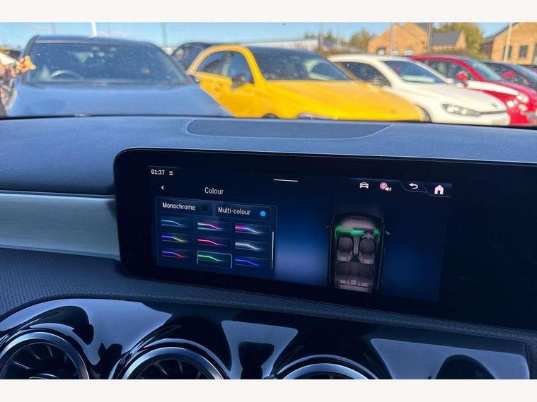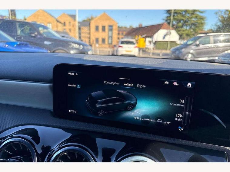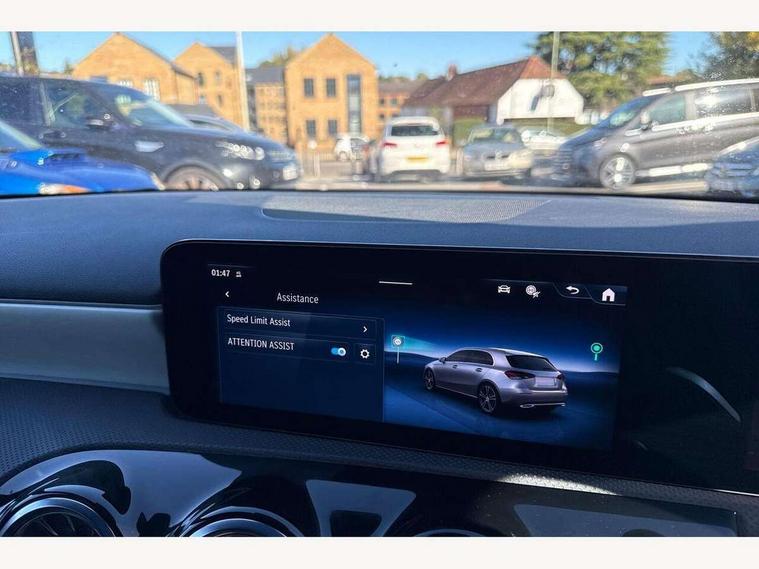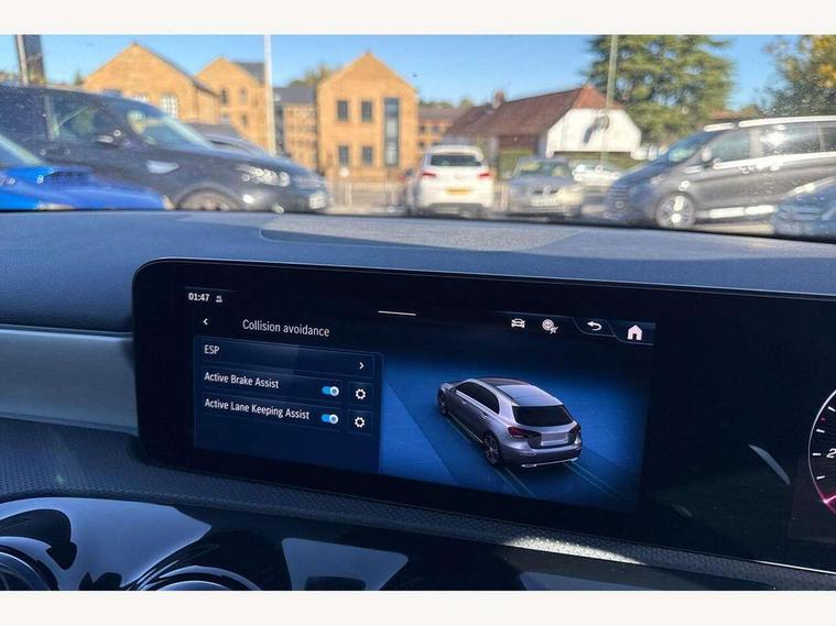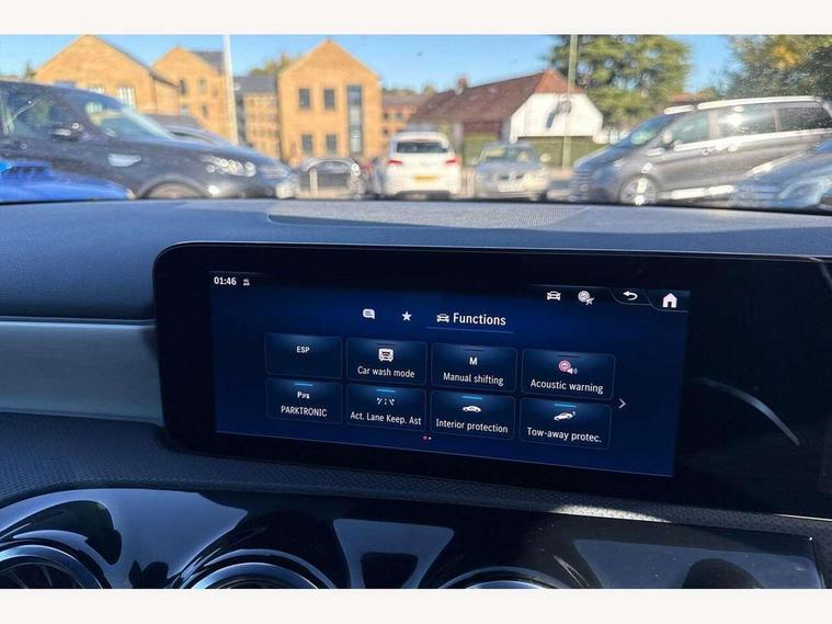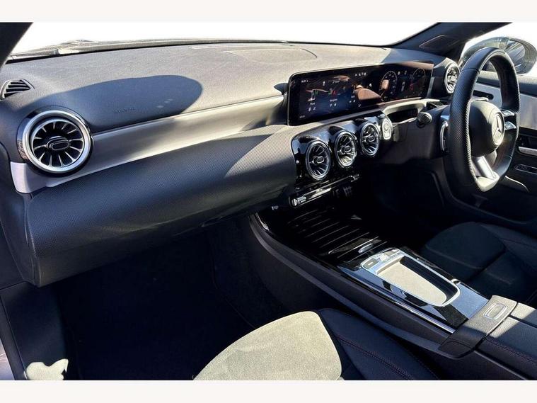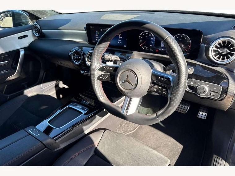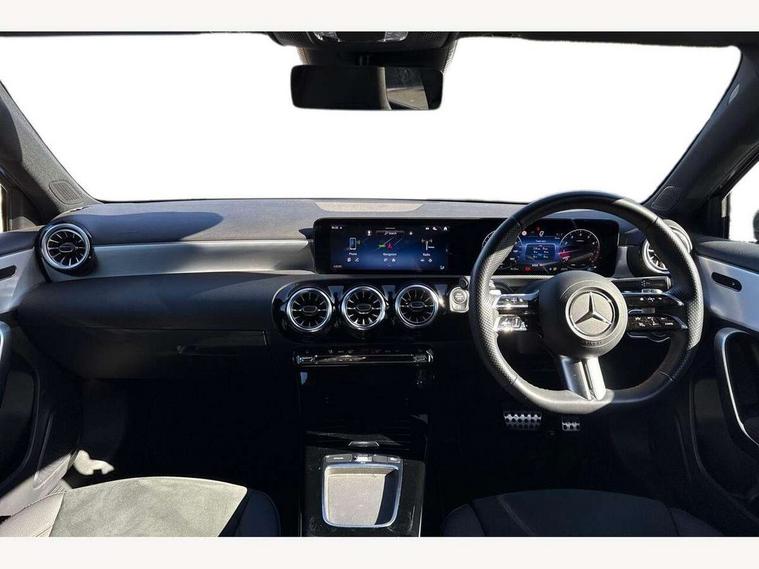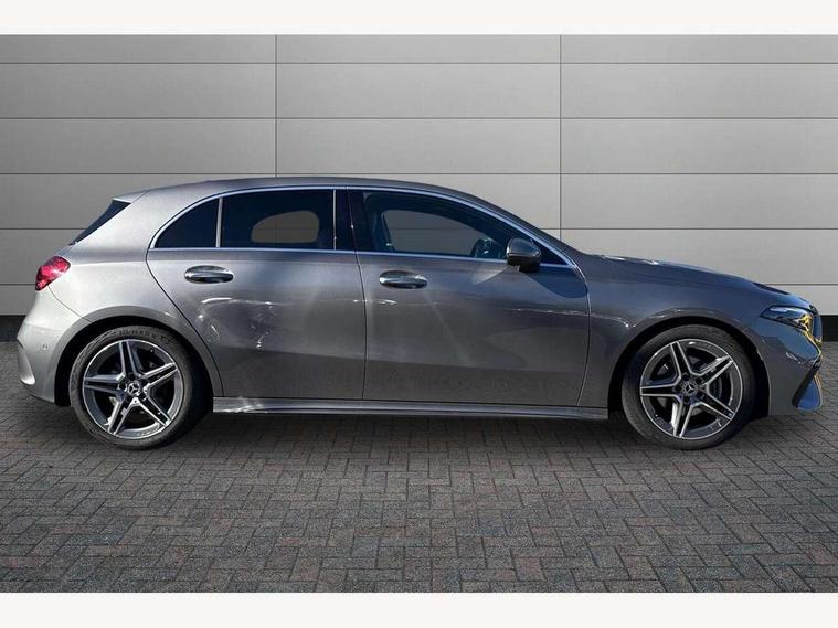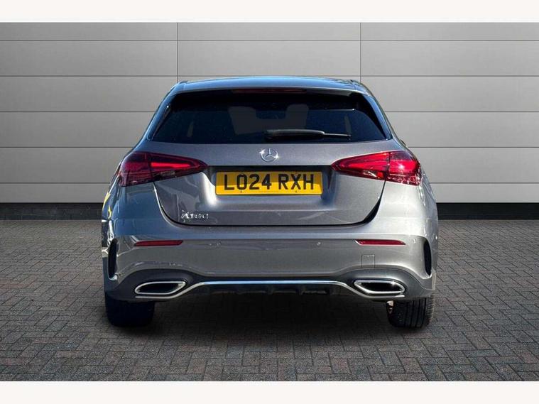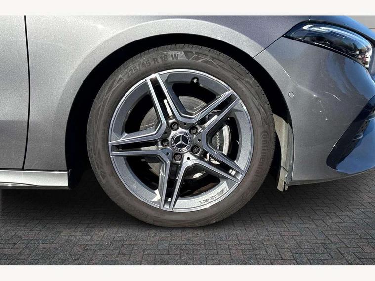 10.25 inch touchscreen central media display, 10.25" Digital instrument cluster display screen, Attention assist, Brake pad wear indicator warning light, Car wash mode, Cruise control + speed limiter, Direct steering, Direction indicators with lane change function, Dual bluetooth interfaces, DYNAMIC SELECT with a choice of driving modes (ECO, Comfort, Sport and Individual), Easy pack tailgate hands-free access, ECO start/stop function, Engine start/stop button, Fluid level warning indicator for fuel, oil, coolant and washer fluid, Fluorescent jacket for driver, Hard-disk navigation, Hey Mercedes Voice activation, Lamp failure indicator, Lane keeping system, Mercedes me connect including emergency call system, accident recovery, breakdown and maintenance management, Mercedes me remote services, Outside temperature gauge, Owners manual in English, Pre-installation of private car share, Preinstallation for Mercedes Benz link, Remote boot closing, Service indicator (ASSYST), Smartphone integration with Apple CarPlay and Android auto, Speed limit assist, Speed sensitive power steering, Tailgate, Trip computer in multifunction display with current consumption indicator, Wireless charging, Lowered comfort suspension, DAB Digital radio, MBUX multimedia system, Mercedes Benz sound system (100 W) with 6 speakers, 4 Electric Front and Rear windows, Adaptive brake lights, AMG body styling - AMG front apron with front splitter and AMG rear apron and visible exhaust tailpipe trim elements, Body colour bumpers, Body colour door handles with chrome inserts, Body colour side skirt, Body coloured door mirrors, Chrome beltline strips, Diamond radiator grille with pins in fine star pattern, Electric adjustable and heated door mirrors with integrated LED side indicators, Exhaust system with 2 visible tailpipe trim elements and rear apron, Headlamp assist automatic headlamp activation, Heat insulating dark tinted rear and rear side windows, Heated glass rear windscreen + timer control, LED High level third brake light, LED High Performance headlamps including integral LED daytime running lamps and adaptive highbeam assist, LED tail lamp, Privacy glass, Radio aerial, Rain sensing windscreen wipers with two sensitivity settings, Rear fog lights, Rear side wing doors, Rear windscreen wiper, Window line trim strip in chrome, 3 seat bench in 2nd row, 3 Spoke flat bottom leather multi function steering wheel with perforated leather in grip area, 4 way lumbar support, 40:20:40 split folding rear seats, Air conditioning - One zone thermatic automatic climate control with automatically controlled air distribution, AMG floor mats, Automatic child seat recognition sensor, Black air vents with surround in silver chrome, Black roof lining, Brushed stainless steel sports pedals with rubber studs, Front centre armrest with stowage, Front door sills with Mercedes Benz lettering, Front seat backs luggage nets, Galvanished gear shift paddles on steering wheel, Heated front seats, Height/reach adjustable steering column, Interior lighting - 64 colour Ambient lighting, Interior mirror with reading lamps in black and frameless, Rear armrest with 2 cupholders, Seat occupancy sensor for front passenger seat, Single front passenger seat, Sports seats with integrated headrests, Stowage compartment in centre console with retractable cover, Sunvisors with illuminated vanity mirrors, Twin front cupholders, Light and sight pack - A Class, Mirror package - A Class, Parking pack - A Class, Seat comfort pack - A Class, USB pack plus - A Class, 3 rear 3 point seatbelts, ABS with Brake Assist, Active bonnet, Active brake assist includes forward collision warning system with autonomous braking, Adaptive brake assist with hold function and hill start assist, Black seatbelts, Bonnet with power domes, Childproof locks manually operated for rear doors and electrically operated for rear power windows, Crash responsive emergency lighting, Driver and passenger head and side airbags, Drivers knee airbag, Dual stage driver/passenger airbags, Electronic parking brake, ESP curve dynamic assist, ESP with ASR, Front and rear seatbelt reminder, ISOFIX and top tether child seat fixing points in two outer rear seats, Tyre pressure monitoring system, Warning triangle and first aid kit, Window airbags, Alarm system/interior protection/immobiliser, Guard 360 degree vehicle protection, Keyless entry lock/unlock, Keyless Go, Remote central locking and crash sensor with emergency opening function, Light longitudinal grain aluminium trim, 18" AMG 5 twin spoke light alloy wheels, aerodynamically optimised, painted in termolite grey with high sheen finish, Summer tyres, Tirefit sealant kit,