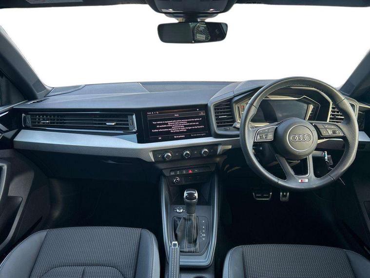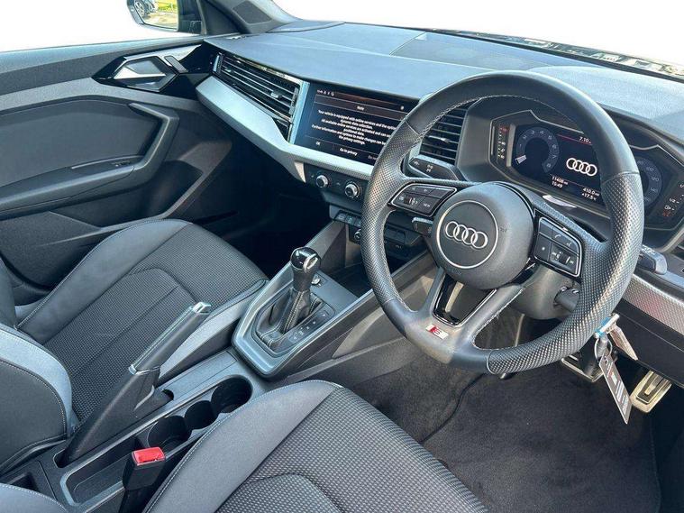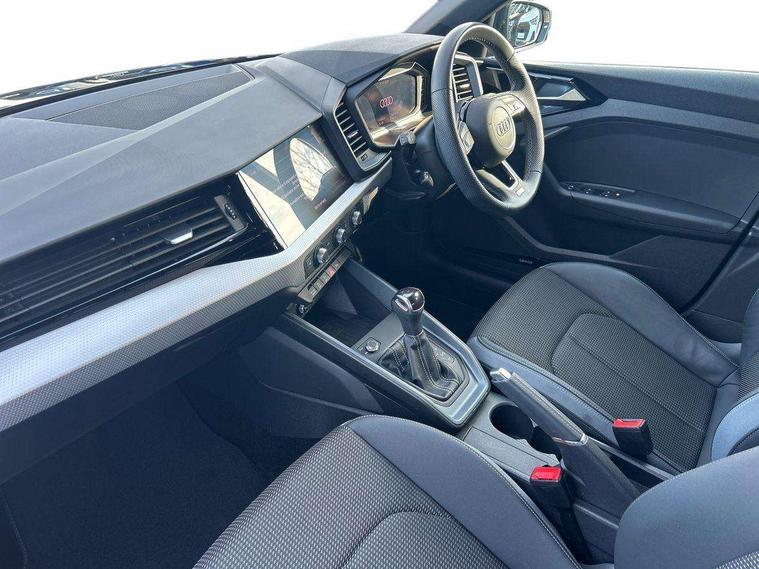 10.25" Digital instrument cluster display classis style instrument dials + speed, odometer, time, outside temperature, telephone menu + fuel level warning, Audi drive select - power steering assistance + engine + gear shift 3 preset modes (auto, dynamic, efficiency and an Individual mode), Audi smartphone interface with connect compatible smartphone via USB directly MMI display + Nav, music, third party apps controlled via MMI controller, Automatic start/stop system, Bluetooth interface, Cruise control, Driver's information system, Electromechanical power steering, Emergency e-call, Lane departure warning system, Rear parking sensor, Service interval indicator, Speed limiter, Voice control system, Washer fluid level indicator, Sports suspension, 2 x USB type C connection points, 6 passive loudspeakers, DAB Digital radio, MMI radio plus with 10.1" colour MMI display screen and MMI touch, Auto dimming rear view mirror, Body coloured door mirrors, Door sills with aluminium inlays and S Line logo, Electric front and rear windows, Electrically adjustable, heated, folding door mirrors with integrated LED side indicator, Front side air inlets in grained matt black and C frame in anthracite black, Heat insulating glass windscreen and side windows, Heated rear windscreen, High level LED brake light, LED headlights with LED rear lights + dynamic rear indicators + headlight adjustment and high beam, turning light + LED daytime running lights, Privacy glass, Radiator grille and rear diffuser in matt anthracite black, Radiator protective grille frame in matt aluminium silver, Rain and light sensors, Rear fog lights, Rear side wing doors, Rear wiper, S line badges on front wings, Side front spoiler lips in grained matt black, 12V socket in centre console with two cup holders, 3 rear seats with headrests, 3 seat bench in 2nd row, 3 spoke leather multi-function plus steering wheel features S badging and grips in perforated leather with contrast stitching, 40:60 Split folding rear seat or folded fully, Black cloth headlining, Driver and passenger seat with manual height adjust with forward and backwards adjustment, Front and rear black floor mats with contrast stitching in fine silver, Front head restraints, Front passenger seat, Height and reach adjustable steering wheel, ISOFIX child seat mounting for front passenger and outer rear seats including top tether attachment point of outer rear seats, Leather gear knob with aluminium trim, Leather handbrake grip, Luggage compartment light with front and rear reading lights, Manual air conditioning, Manually adjustable lumbar support in front seats, Stainless steel pedals, LED interior lighting pack - A1, Luggage compartment pack - A1, S line exterior styling pack - A1 Sportback, 3x3 point rear seatbelts, Audi pre-sense front with pedestrain and cyclist recognition, Brake assist function, Driver and front passenger airbag with front side and head airbags, Electronic Stability Control including ABS, EBD, ASR and EDL, Front passenger airbag deactivation switch, Hill hold assist, Manual rear child locks, Seatbelt height adjustment for front seats, Seatbelt monitoring, Tyre pressure warning light, Warning triangle and first aid kit, Anti theft alarm, Anti theft wheel bolts and loose wheel warning, Immobiliser, Remote central locking with 2 foldaway keys, Aluminium trim for control switches, air vents and digital instrument cluster, Black dashboard, Silver grey inlays polygon structure in diamond paint finish, Structured grey accent areas including air vents, door handle recesses and centre console in quartz paint finish,