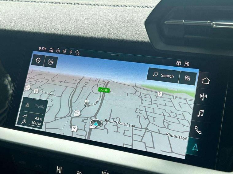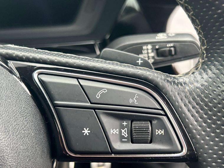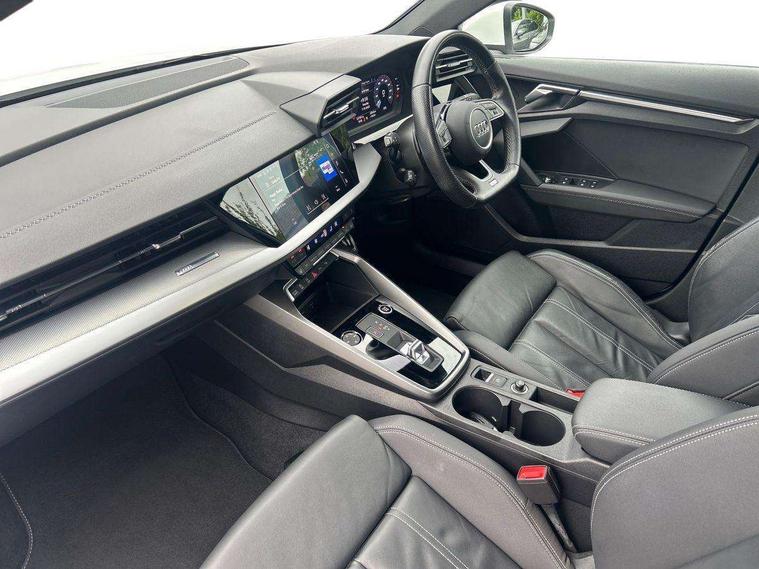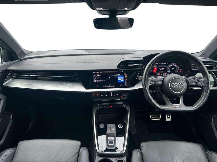 Audi connect emergency call and service, Audi drive select (Auto, Comfort, Dynamic, Efficiency and Individual), Audi smartphone interface, Audi Virtual Cockpit - 10.25" digital and colour instrument cluster, Automatic start/stop system with recuperation, Bluetooth interface, Collision avoidance assistant, Electromechanical power speed sensitive steering, Lane departure warning system, MMI Navigation Plus with high resolution 10.1" colour touch screen display, Service indicator, Voice control system with natural language interaction, 2x USB Type C ports (for charging and data transfer), 6 passive loudspeakers, CD player, DAB Digital radio, 3rd brake light, Acoustic glass windscreen, Aluminium window trim, Auto dimming frameless rear view mirror, Electrically adjustable/heated/folding/auto dimming door mirrors with integrated LED indications + kerb view function for passenger side, Front electric windows, Illuminated door sills with aluminium inserts at the front with S logo, LED daytime running lights, LED headlights with LED rear lights and dynamic rear indicators, Light and rain sensors, Model and engine designation badges at rear, Privacy glass - dark tinted rear window, rear door and side windows, Rear electric windows, S line bumpers, S roof spoiler, 12V socket and storage compartment in front centre console, 40/20/40 split folding rear seat bench with cupholder, Black cloth headlining, Dual zone electronic climate control, Front and rear centre armrest in leather, Front and rear headrests, Front/rear floor mats, Height and reach adjustable steering wheel, Interior lighting - glove compartment light and right hand side, Luggage compartment floor covering, Manual boot compartment lid, Manually adjustable front sport seats, Seat side bolsters, Stainless steel pedals and front footrest in black, Twin leather upholstery with front sports seats S embossed logo, Aluminium interior elements pack - A3, S line styling pack - A3 Saloon, 3x3 point rear seat belts, Driver and front passenger airbag with passenger airbag deactivation, Electronic Stabilisation Control (ESC) including ABS, ASR and EDL, First aid kit with warning triangle and 2 safety vests, Front side airbags with head airbags and interaction airbag, Hill hold assist, Pre-sense front with pedestrian and cyclist detection, Seatbelt monitoring, Tyre pressure loss indicator, Anti theft alarm, Anti-theft wheel bolts, Electronically operated child lock, Immobiliser, Remote control central locking, Aluminium air vent surrounds, Aluminium trim elements, Dark spectrum aluminium inlays, accent surfaces in the dashboard and centre console in platinum grey silk effect paint finish,