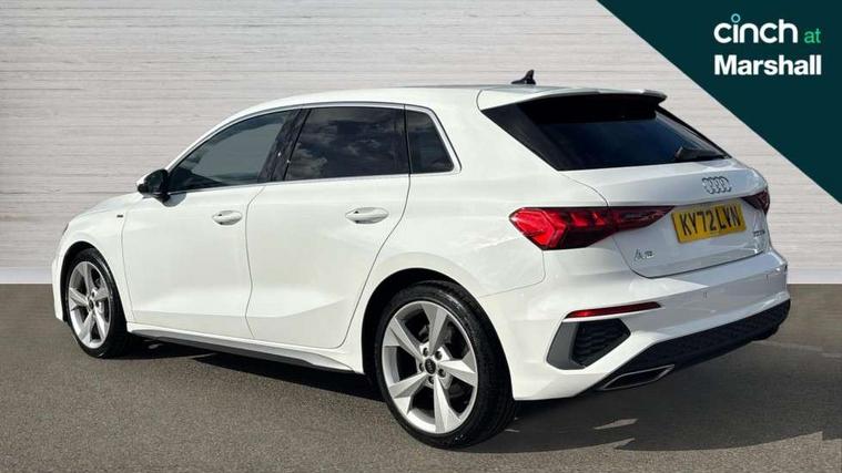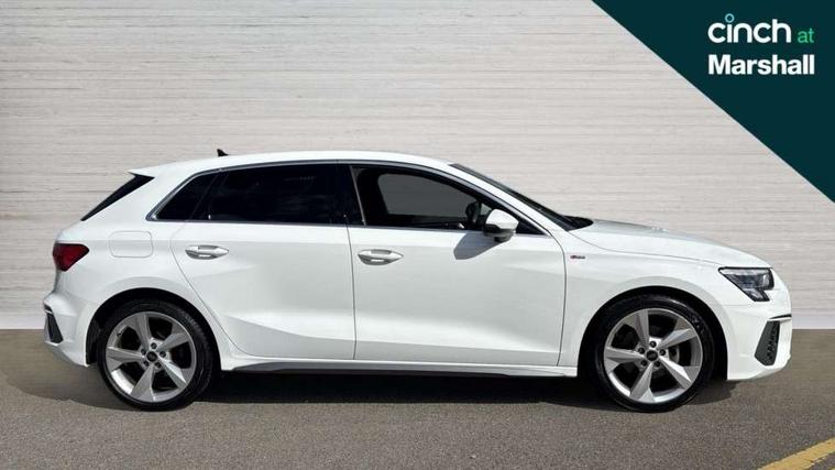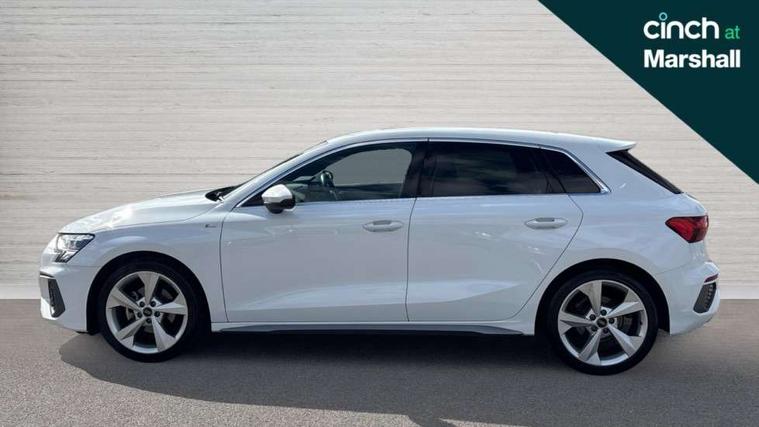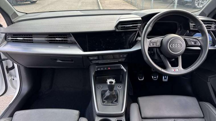 Audi drive select (Auto, Comfort, Dynamic and Individual), Audi smartphone interface, Audi Virtual Cockpit - 10.25" digital and colour instrument cluster, Automatic start/stop system with recuperation, Bluetooth interface, Collision avoidance assistant, Cruise control, e-Call (emergency call), Electromechanical power speed sensitive steering, Lane departure warning system, MMI Navigation Plus with high resolution 10.1" colour touch screen display, Rear parking sensors, Service indicator, Trip computer, Voice control system with natural language interaction, 2xUSB-C connection with data and charging functions, 6 passive loudspeakers, DAB Digital radio, 3rd brake light, Acoustic glass windscreen, Aluminium window trim, Auto dimming frameless rear view mirror, Electrically adjustable/heated/folding/auto dimming door mirrors with integrated LED indications + kerb view function for passenger side, Front electric windows, Illuminated aluminium inserts front door sills with S logo, LED daytime running lights, LED headlights with LED rear lights and dynamic rear indicators, Light and rain sensors, Privacy glass - dark tinted rear window, rear door and side windows, Rear electric windows, Rear side air outlets in grained matt black, Rear side wing doors, Rear wiper, S line bumpers, S roof spoiler, 12V socket and storage compartment in front centre console, 3 seat bench in 2nd row, 40/20/40 split folding rear seat bench with cupholder, Black cloth headlining, Dual zone electronic climate control, Front and rear centre armrest in leather, Front and rear headrests, Front/rear floor mats, Height and reach adjustable steering wheel, Illuminated vanity mirror, Interior lighting - glove compartment light and right hand side, Luggage compartment floor covering, Manual boot compartment lid, Manually adjustable front seats, Seat side bolsters, Single front passenger seat, Stainless steel pedals and front footrest in black, Twin leather upholstery with front sports seats S embossed logo, Aluminium interior elements pack - A3 Sportback, S line styling pack - A3 Sportback, 3x3 point rear seat belts, Audi pre sense front, Driver and front passenger airbag with passenger airbag deactivation, Electronic Stabilisation Control (ESC) including ABS, ASR and EDL, First aid kit with warning triangle and 2 safety vests, Front side airbags with head airbags and interaction airbag, Pre-sense front with pedestrian and cyclist detection, Seatbelt monitoring, Tyre pressure loss indicator, Anti theft alarm, Anti-theft wheel bolts, Immobiliser, Manual child locks, Remote control central locking, Accent surfaces in the dashboard and centre console in platinum grey silk effect paint finish, Dark spectrum aluminium inlays,