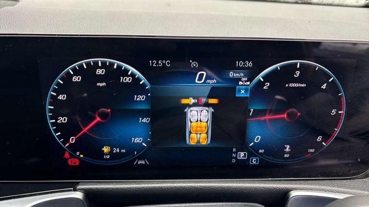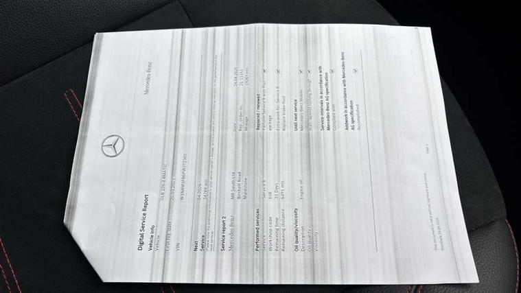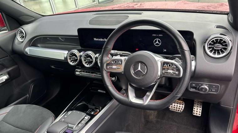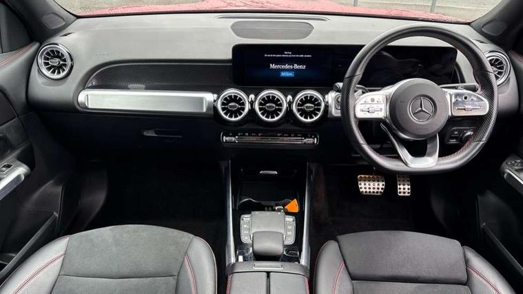 10.25" Digital instrument cluster display screen, 10.25" Digital media screen display, Active lane keeping assist, Attention assist - Monitors steering behaviour and long journey fatigue, Brake pad wear indicator warning light, Car wash mode, Cruise control with limiter, DYNAMIC SELECT with a choice of driving modes (ECO, Comfort, Sport and Individual), ECO start/stop function, Fluid level warning indicator for fuel, oil, coolant and washer fluid, Hard disk navigation, Hey Mercedes Voice activation, Lamp failure indicator, Mercedes me connect including emergency call system, accident recovery, breakdown management and maintenance, Mercedes me remote services, Outside temperature gauge, Owners manual and service booklet in English, Parameter steering system, Pre-installation of private car share, Preinstallation for parking damage notification, Radio aerial integrated into front and rear windshields, Service indicator (ASSYST), Smartphone integration with Apple CarPlay and Android auto, Speed limit assist, Trip computer in multifunction display with current consumption indicator, 23.8 litre AdBlue fuel tank, Comfort suspension, Rear axle multi-link, DAB digital radio tuner, MBUX multimedia system with DAB digital radio and touchpad including satellite navigation, Mercedes Benz sound system (225 W) with 10 speakers, 1 central speaker, speakers on doors, a tweeter on door, one sub woofer + boost amplifier, Pre installation for Mercedes Benz Link, USB (type C) port in front stowage compartment, USB (type C) ports (2) in stowage compartment, Adaptive brake lights, Aerial for GPS, AMG bodystyling door panels black grained with chrome plated inserts, AMG bodystyling front apron with chrome splitter, AMG bodystyling rear apron with diffuser optics and chrome trim element, AMG specific front and rear bumper including underride guard in high gloss chrome, Beltline strips and weather strip in chrome, Body coloured bumpers, Body coloured door handles with chrome insert for keyless entry, Body coloured door mirror caps, Electric adjustable and heated door mirrors with integrated LED side indicators, Exhaust system with dual flow exhaust pipes (non-functional), Front and rear electric windows, Headlamp assist automatic headlamp activation, Heated glass rear windscreen + timer control, High level LED third brake light, Interior mirror with black reading lamps and frameless, LED high performance headlamps with integrated LED daytime running lights, LED tail lamp, Polished aluminium roof rails, Privacy glass with dark tinting on rear side windows and rear window, Radiator grille with pins in chrome and single louvre with chrome insert, Rain sensor windscreen wipers, Rear fog lamp, Rear side wing doors, Rear wiper, Two visible tailpipe trim elements exhaust, 3 seat bench in 2nd row, 3 spoke multifunction sport steering wheel in nappa leather, Air conditioning - Two zone thermotronic luxury automatic climate control with display, AMG sports pedals with brushed stainless steel surfaces and black rubber studs, Artico man-made leather/Microcut microfibre upholstery with red contrast stitching, Automatic child seat recognition sensor, Black floor mats with AMG lettering, Black roof lining, Fore/aft adjustment rear seats, Freight packaging with tie-down hooks, Front centre armrest with stowage, Front door sills with illuminated changeable cover, Front passenger grab handle with brushed side silver chrome, Galvanished gear shift paddles on steering wheel, Heated front seats, Height/reach adjustable steering column, Interior lighting - 64 colour Ambient lighting, Luggage net on driver/front passenger seat backrest, Net in front passenger footwell, Rear armrest with two integral cup holders for drinks, Rear seat easy entry, Single front passenger seat, Sports seats with adjustable head restraints, Stowage compartment in centre console, Stowage compartment with retractable cover, Third row of seats for two people on rear seat, Touchpad on center console, Twin front cup holders, Two outer rear seat isofix and top tether child seat fixing points, Interior lighting with light and sight pack - GLB, Keyless go comfort pack - GLB with easy pack tailgate, Mirror pack - GLB, Off-road engineering package - GLB, Parking pack - GLB, Seat comfort package - GLB, 3 rear 3 point seatbelts, Active bonnet pedestrain safety measure which detects an impact and raises bonnet by 65mm, Active brake assist includes forward collision warning system with autonomous braking, Adaptive brake assist with hold function and hill start assist, Airbags - kneebag for driver, Anti-lock braking system (ABS) with brake assist, Childproof locks manually operated for rear doors and electrically operated for rear power windows, Crash responsive emergency lighting, Curve dynamic assist, Driver and front passenger head and sidebags, Driver and front passenger windowbags, Dual stage driver and front passenger airbags, Electronic parking brake, Electronic stability programme with acceleration skid control, Front and rear seatbelt reminder, Front brake callipers with Mercedes Benz lettering, Front passenger seat occupancy sensor, Perforated and ventilated front brake discs, Tyre pressure monitoring system, Warning triangle and first aid kit, Guard 360 degree vehicle protection - Anti theft alarm system, tow away protection with visual, acoustic warning and alarm, Interior monitoring system, KEYLESS-GO Spanner communicates with the vehicle within two metres of the door, Remote central locking and crash sensor with emergency opening function, Thatcham category 1 alarm system with immobiliser and interior protection, Vehicle key with decorative surround in chrome, Black air vents with chrome surround, Carbon structure trim, 19" AMG 5 twin spoke light alloy wheels painted in high gloss black with high sheen finish, Summer tyres, Tirefit tyre sealant kit,
