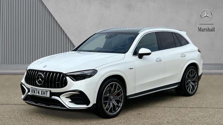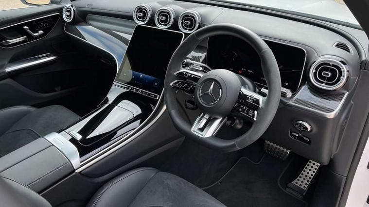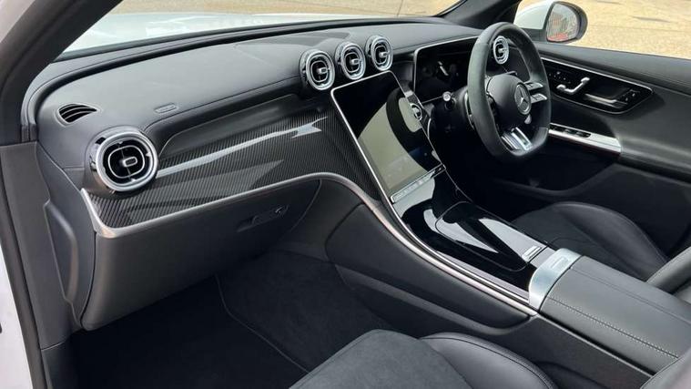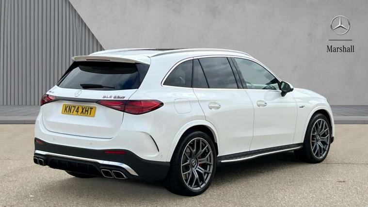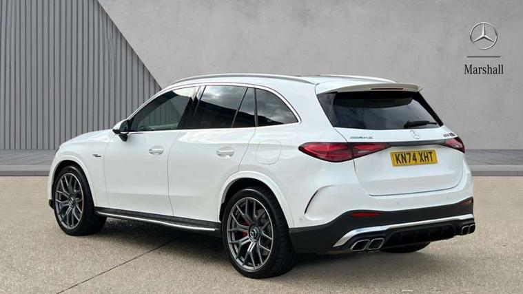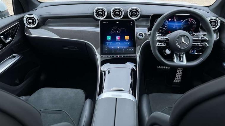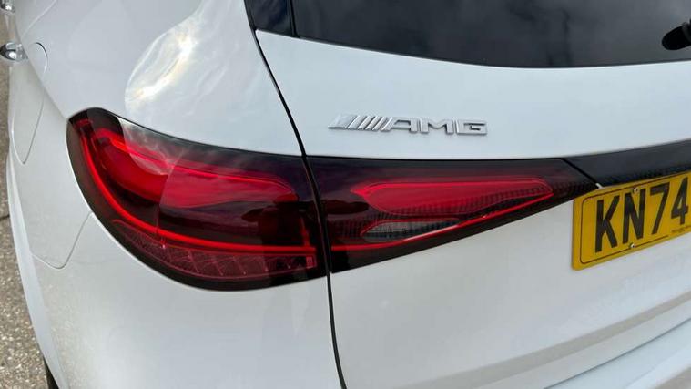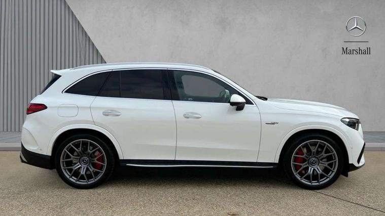 11.9" high resolution multimedia colour display, 12.3" Digital individually configurable instrument display, 360 degree camera, Acoustic ambient protection, Active parking assist with parktronic system, AMG DYNAMIC SELECT with a choice of eight driving modes(Electric, Comfort, Battery Hold, Sport, Sport+, Race, Slippery and Individual), AMG track pace, Attention assist, Bluetooth interface for hands free telephone, Dashcam - front camera for video recording, Easy pack automatic powered tailgate, eCall emergency call system, MBUX augmented reality for navigation, MBUX navigation premium, MBUX voice control activated by keywords "Hey Mercedes", Mercedes connect me with remote online services, Outside temperature display, Pre-installation for digital key transfer, Rear axle steering, Remote boot release, Road sign recognition system, Service indicator (ASSYST), Smartphone integration, Sports direct steer system with speed sensitive steering, Status display for rear seat belts in instrument cluster, Traffic sign assist, Trip computer, Wireless charging surface integrated into quick stowage tray in front of centre console, 4MATIC permanent four wheel drive, 5m charging cable for household socket (mode 2), 5m charging cable for wall box/public charging stations(mode 3), 65 litre fuel tank, 9G TRONIC plus automatic transmission, Agility control sports suspension with adaptive damping system, DAB digital radio tuner, MBUX extended functions, Mercedes benz sound system, Adaptive brake lights, AMG bodystyling front apron, rear apron and side skirts, AMG exhaust system with sporty engine sound, AMG radiator grille with vertical struts in high gloss chrome and AMG logo, AMG Real Performance Sound, AMG spoiler lip, Auto dimming rear view mirror, Auto headlights, Body colour door mirrors, Chrome roof rails, Digital light LED headlights, Electric windows with one touch opening/closing and obstruction sensors, Electrically adjustable and heated door mirrors, Headlight washers, Heat and noise insulating acoustic glass, Heated rear window, High level LED brake light, Illuminated front door sill panels, Integrated LED daytime running lights, LED indicator lights, LED rear fog lights, LED tail lamp, Mercedes AMG exterior, Rain sensor windscreen wipers, Range adjustable headlights, Rear side wing doors, Rear wiper, Tinted glass all round green, Variable front intermittent wipers, Welcome and follow-me home light functionality, 3 seat bench in 2nd row, 40:20:40 split folding rear seats, Ambient lighting, AMG Artico man-made leather/ Microcut microfibre upholstery, AMG performance steering wheel in nappa leather/dinamica microfibre, AMG steering wheel buttons, Artico leather dashboard with contrast stitching, Audio and onboard settings control on multifunction steering wheel, Automatic child seat recognition sensor, Black floor mats with AMG lettering, Double cup holder in centre console, Electrically height/reach adjustable steering column, Front centre armrest with stowage compartment, Front head restraints, Front seats with electric backrest, height adjust with 4 way electric lumbar support, Gearshift paddles on steering wheel, Heated front seats, Illuminated door sill panels with AMG lettering and with exchangable cover, Illuminated glove compartment, Load compartment cover, Mercedes AMG interior, Rear head restraints, Rear top tether child seat ISOFIX attachment, Single front passenger seat, Sports pedals with stainless steel surfaces and rubber studs, Sun visors with illuminated vanity mirrors, THERMATIC 2 zone automatic climate control, AMG Aerodynamics package - GLC AMG, AMG Driver's package - GLC AMG, Interior lighting pack - GLC AMG, Memory pack - GLC, Mirror pack - GLC AMG, Stowage pack - GLC AMG, USB Plus Pack - GLC, 3 rear 3 point seatbelts, Active bonnet, Adaptive brake system with HOLD function and brake drying in the wet, AMG high performance composite braking system with red painted brake calipers with AMG lettering, Anti-lock braking system (ABS), Black seat belts, Child proof door locks, Dual-stage airbags - driver and front passenger, sidebags in front seats, driver kneebag, pelvis bag and window bags for driver, Electronic key chrome surround, Electronic parking brake, Electronic Stability Programme (ESP), Front and rear seatbelt reminder, Front passenger seat occupancy sensor, Front seatbelt pretensioners, Hill start assist, Tyre pressure monitoring system, Warning triangle and first aid kit, Central locking with interior switch, automatic locking and crash sensor with emergency opening function, Guard 360 degree vehicle protection, Immobiliser, Keyless Go comfort access, Centre console in high gloss black, High gloss black with carbon fibre trim, 21" AMG cross spoke forged alloy wheels painted in tantalum grey with high sheen rim finish, TIREFIT with tyre inflation compressor,