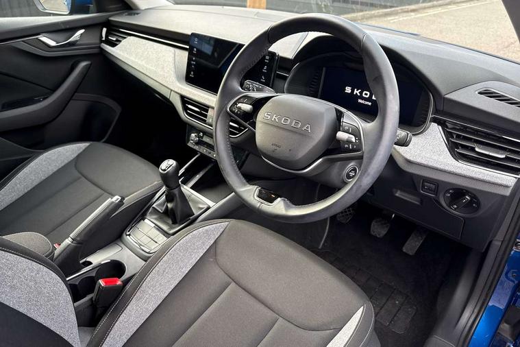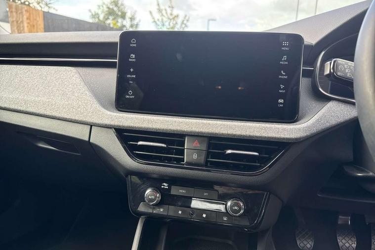 Advanced driver attention and drowsiness monitor, Bluetooth, e-Call (emergency call), Front assist system, PAS, Rear parking sensors, Rear view camera, Speed limiter, Tailgate, Traffic sign recognition, Virtual Cockpit - 10.25" digital display, Voice control system, Wireless smartlink, 4 USB C ports, 8 Speakers, 9.2" Skoda navigation display, DAB radio, Auto dimming rear view mirror, Automatic headlamp activation with Coming home and Leaving home feature, Automatic high/low beam, Body colour bumpers, Body colour door mirrors and handles, Chrome moulding around grille, Front and rear electric windows, Full LED headlights, Heated rear window, LED 3rd brake light, LED brake lights, LED daytime running lights, LED front turning lights, LED high beam, LED low beam, LED taillights, Rear LED fog light, Rear side wing doors, Rear wiper, Tinted windows, Unique dark chrome design logo on alloy wheels, 12V socket in luggage compartment, 3 seat bench in 2nd row, Black / Grey armrest stitching, Black hotstamping, Cargo elements, Chrome inner door handles, Door inserts in satin black, Driver and passenger sun visors with vanity mirror, Dual zone climate control, Front and rear roof lights, Front centre armrest, Front head restraints, Glasses storage in roof liner, Height adjustable driver seat, Height adjustable passenger seat, Ice scraper, Illuminated glove compartment, Inner circulation control with pollen filter, ISOFIX for front passenger seat, Isofix preparation for back seats, Leather gearknob and handbrake lever, Loft cloth upholstery, Luggage net under rear parcel shelf, Manual lumbar support for front seats, Net package and top tether hooks in boot space, Pearl grey ceiling, Pocket on the back of both front seats, incl. mobile phone pockets, Single front passenger seat, Skoda lettering on steering wheel, Textile floor mats, Third rear headrest, Ticket holder, Top tether for front passenger seat, Umbrella in driver's door, 3x3 point rear seatbelts, ABS, Child locks, Curtain airbags and front side airbags, Disc brakes, Driver and front passenger airbags, ESP, Hill hold control, Manual leather parking brake, One tone horn, Passenger airbag switch off function, Seatbelt reminder for driver and front passenger, Tyre pressure monitoring system, Anti theft alarm system with interior monitoring, backup horn and towing protection, Anti-theft wheel bolts, Remote central locking with 2 remote folding keys, SAFE function for remote central locking, Decord pad, door inserts Kota uni,