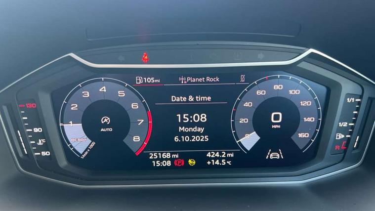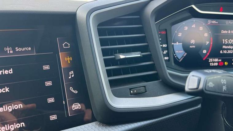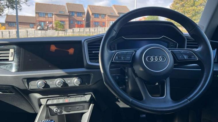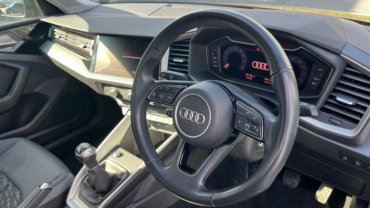 10.25" Digital instrument cluster display classis style instrument dials + speed, odometer, time, outside temperature, telephone menu + fuel level warning, Audi drive select - power steering assistance + engine, Audi smartphone interface with connect compatible smartphone via USB directly MMI display + Nav, music, third party apps controlled via MMI controller, Automatic start/stop system, Bluetooth interface, Cruise control, Driver's information system, Electromechanical power steering, Emergency e-call, Lane departure warning system, Rear parking sensor, Service interval indicator, Speed limiter, Voice control system, Washer fluid level indicator, Dynamic suspension, 2 x USB type C connection points, 6 passive loudspeakers, DAB Digital radio, MMI radio plus with 10.1" colour MMI display screen and MMI touch, Auto dimming rear view mirror, Body coloured bumpers, Body coloured door mirrors, Electric front and rear windows, Electrically adjustable, heated, folding door mirrors with integrated LED side indicator, Front side air inlets in grained matt black and C frame in anthracite black, Heat insulating glass windscreen and side windows, Heated rear windscreen, High level LED brake light, LED headlights with LED rear lights + dynamic rear indicators + headlight adjustment and high beam, turning light + LED daytime running lights, Radiator grille and rear diffuser in matt anthracite black, Radiator protective grille frame in matt aluminium silver, Rain and light sensors, Rear fog lights, Rear side wing doors, Rear wiper, Side front spoiler lips in grained matt black, 12V socket in centre console with two cup holders, 3 rear seats with headrests, 3 seat bench in 2nd row, 3 spoke leather multifunction plus steering wheel, 40:60 Split folding rear seat or folded fully, Black front and rear floor mats, Door sill trims with aluminium inlay, Driver and passenger seat with manual height adjust with forward and backwards adjustment, Front head restraints, Front passenger seat, Grey cloth headlining, Height and reach adjustable steering wheel, ISOFIX child seat mounting for front passenger and outer rear seats including top tether attachment point of outer rear seats, Leather gear knob with aluminium trim, Leatherette handbrake grip, Luggage compartment light with front and rear reading lights, Manual air conditioning, Manually adjustable lumbar support in front seats, Novum cloth upholstery with front sport seats, Luggage compartment pack - A1, 3x3 point rear seatbelts, Audi pre-sense front with pedestrain and cyclist recognition, Brake assist function, Driver and front passenger airbag with front side and head airbags, Electronic Stability Control including ABS, EBD, ASR and EDL, Front passenger airbag deactivation switch, Hill hold assist, Manual rear child locks, Seatbelt height adjustment for front seats, Seatbelt monitoring, Tyre pressure warning light, Warning triangle and first aid kit, Anti theft alarm, Anti theft wheel bolts and loose wheel warning, Immobiliser, Remote central locking with 2 foldaway keys, Aluminium trim for control switches, air vents and digital instrument cluster, Black dashboard, Silver grey accent areas including air vents, door handle recesses and centre console in diamond paint finish, Slate grey inlays polygon structure in fine paint finish,