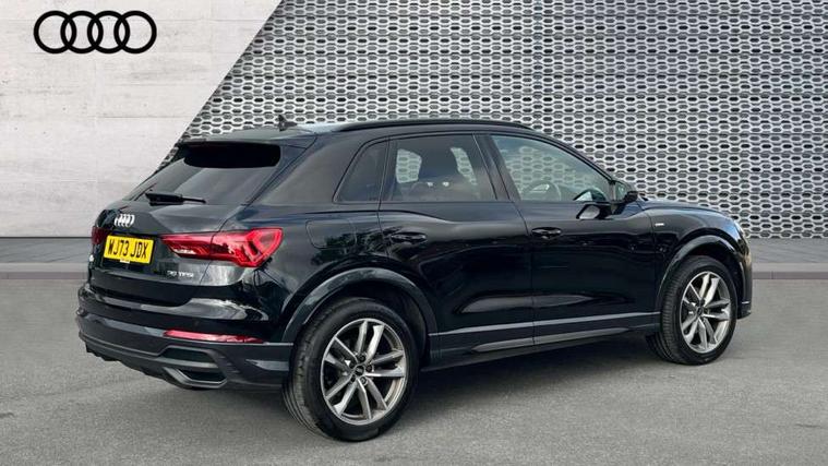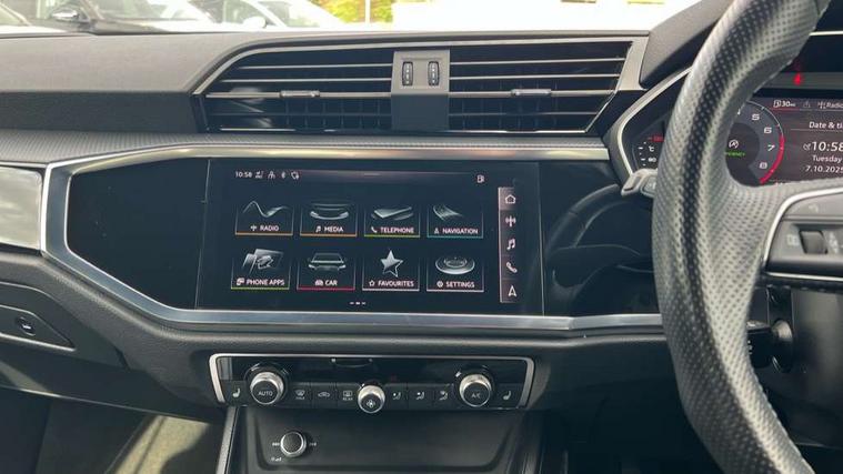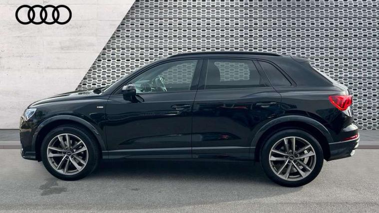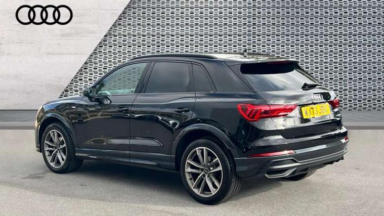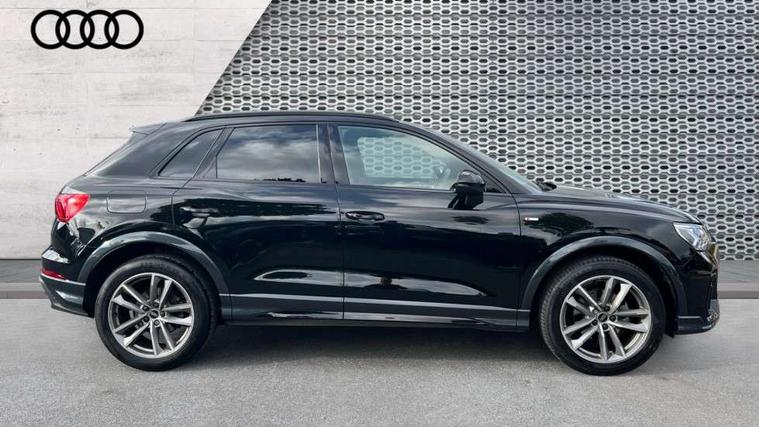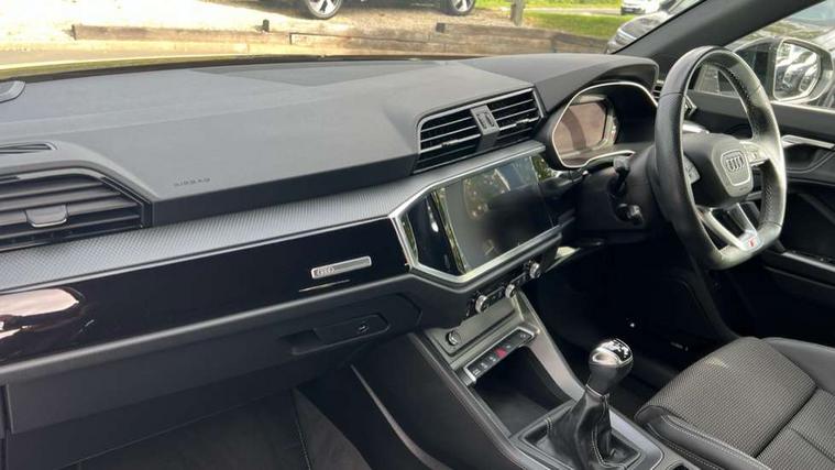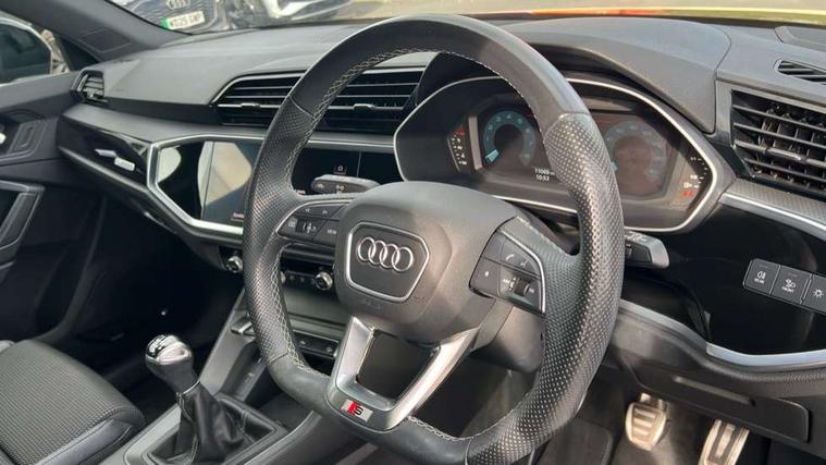 Amazon alexa Integration, Audi drive select, Audi lane departure warning, Audi Virtual Cockpit - 10.25" display, Bluetooth interface, Camera based traffic sign recognition, Cruise control + speed limiter, Legal emergency call, MMI Navigation Plus with high resolution 10.1 inch touchscreen colour display, Power operated tailgate, Progressive steering, Rear parking sensors, Service interval indicator, Smartphone interface includes wireless Apple carplay/Android Auto, Start stop system with recuperation, Voice control system with natural language interaction, Sports suspension, 2 USB-C ports with charge and data functions, 6 passive loudspeakers, DAB digital radio module, Acoustic windscreen, Auto dimming frameless rear view mirror, Black roof rails, Electrically folding, adjustable and heated door mirrors with integrated LED side indicators and kerb view function for passenger side, Front and rear electric windows, Front fog lights, Grille vertical bars in aluminium silver/Matt, High gloss black finish B and C pillars, LED Dynamic rear indicators, LED headlights with LED daytime running lights, LED rear lights, LED third brake light, Privacy glass dark tinted rear and rear-side windows (from B-pillar backwards), Rain and light sensors, Rear diffuser grille in grained matt black, Rear diffuser strip in matt anthracite black, Rear side wing doors, Rear wiper, S line bumpers in contrasting Manhattan grey, Variable front intermittent wipers, 12V socket in rear centre console, 3 seat bench in 2nd row, 3 spoke flat bottomed multi-function leather sport steering wheel, 40:20:40 folding with manual adjustment for 60:40 forwards/backwards position and backrest angle, Adjustable rear seat bench/backrest with centre armrest and cupholder, Black cloth headlining, Dual zone electronic climate control, Front and rear black floor mats with contrast stitching in rock grey, Front and rear headrests, Front and rear roof module including reading lights, Front centre armrest, Glove compartment lighting, Height and reach adjustable steering wheel, Illuminated door sill trims with S logo, ISOFIX child seat mounting for front passenger with airbag deactivation and outer rear seat including top tether attachment point for outer rear seats, Luggage compartment light, Manual front seats with height adjustment, Perforated leather gearknob, Single front passenger seat, Stainless steel luggage compartment sill finisher, Stainless steel pedals, Ambient lighting pack - Q3, Black styling pack - Q3, Non smoking pack - Q3, 3x3 point rear seatbelts, 6 airbags - Driver, front passenger, curtain and side windows, Audi pre-sense front with pedestrain and cyclist recognition, Electrically operated child locks on rear doors, Electromechanical parking brake, Electronic stabilisation control including ABS, ASR and EDL, Front seatbelt reminder, Hill descent control, Hill hold assist, Pre sense basic, Seatbelt monitoring, Tyre pressure warning, Warning triangle and first aid kit, Anti theft alarm, Anti theft wheel bolts, Immobiliser, Remote central locking, Aluminium look interior elements, Detail dashboard around MMI touch colour display in glass look, black with surround in aluminium look, Leatherette door armrest, Piano black inlay, 19" 5 twin arm design diamond cut audi sport alloy wheels in matt grey look,