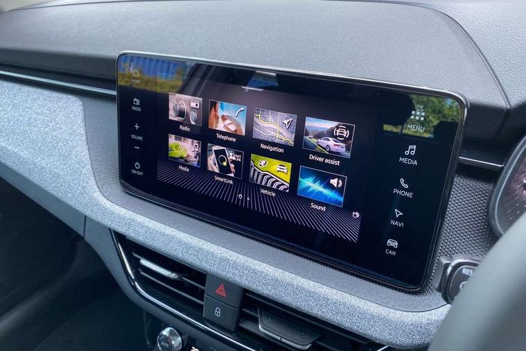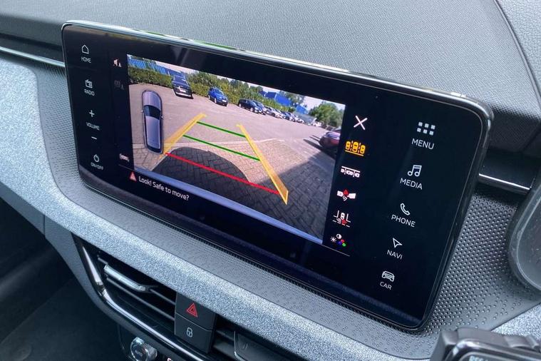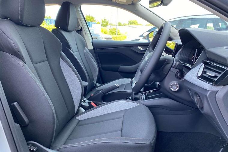 Advanced driver attention and drowsiness monitor, Bluetooth system, E-call, Front assist system, PAS, Rear parking sensors, Rear view camera, Service indicator, Speed limiter, Traffic sign recognition, Virtual cockpit with 10.25" display, Wireless smartlink, 4 USB C ports, 8 Speakers, 9.2" Skoda navigation display, DAB Digital radio, Auto dimming rear view mirror, Automatic headlight control with coming home and leaving home feature, Black roof rails, Body colour bumpers, Body colour door mirrors and handles, Chrome grille surround, Front and rear electric windows, Full LED headlights, Heated rear window, LED brake lights, LED daytime running lights, LED front turning lights, LED high beam, LED low beam, LED third brake light, Rear LED fog light, Rear side wing doors, Rear wiper, Ticket holder inside windscreen, 12V socket in luggage compartment, 3 seat bench in 2nd row, Black hotstamping, Cargo elements, Chrome inner door handles, Driver and passenger sun visors with vanity mirror, Dual zone climate control, Front and rear roof lights, Front centre armrest, Front head restraints, Glove compartment with illumination, Height adjustable driver seat, Height adjustable front passenger seat, Ice scraper, Inner circulation control with pollen filter, ISOFIX on front passenger seat, Isofix preparation for back seats, Krepp recycled decor inserts, Leather gearknob and handbrake lever, Loft cloth upholstery, Manual lumbar support for front seats, Net package and top tether hooks in boot space, Net under rear shelf, Overhead glasses storage compartment, Pocket on the back of both front seats include mobile phone pockets, Rake/reach adjustable steering wheel, Reading lights, Satin black door inserts, Single front passenger seat, Textile floor mats, Third rear headrest, Top tether for front passenger seat, Umbrella in driver's door, 3x3 point rear seatbelts, Airbags - driver and front passenger, Disc brakes, ESP, Extended and predictive pedestrian/cyclist protection, Front passenger airbag deactivation switch, Front side airbags with curtain airbags, Hill hold control, Manual leather parking brake, Manual rear child locks, One tone horn, Seatbelt reminder for driver an co-driver, Traction control, Tyre pressure monitor, Anti-theft alarm system with interior monitoring, backup horn, towing protection and remote central locking with SAFE system, Anti-theft wheel bolts, Electronic engine immobilizer,