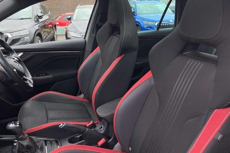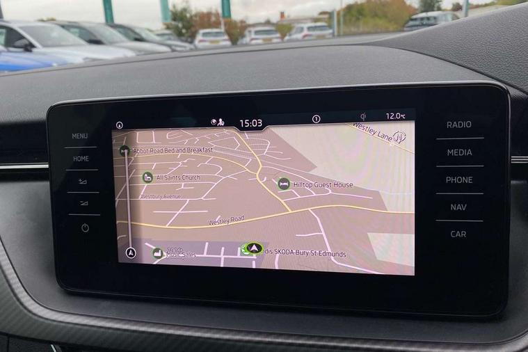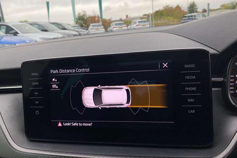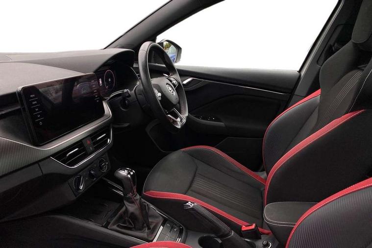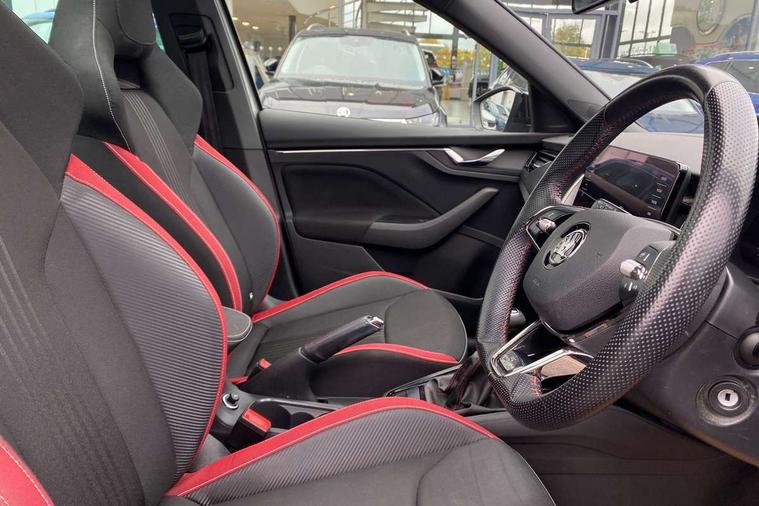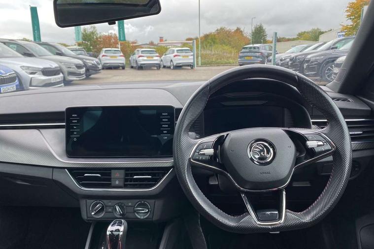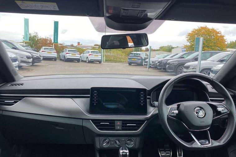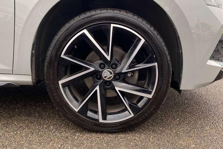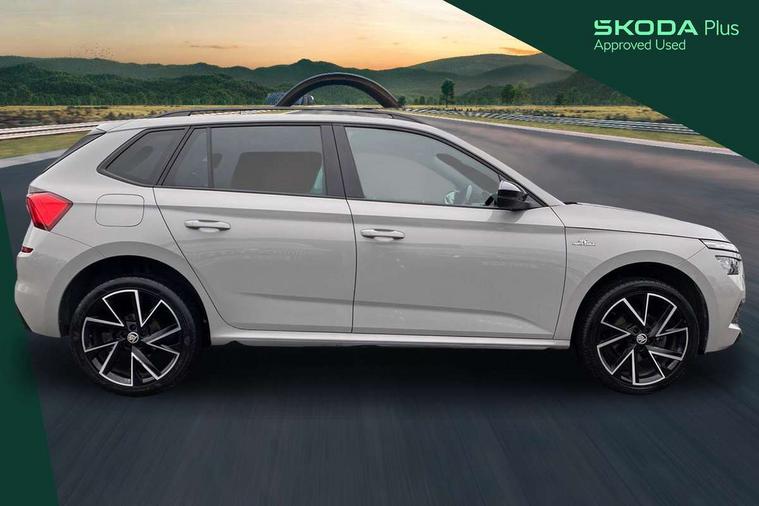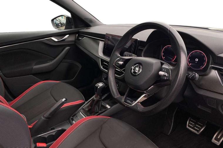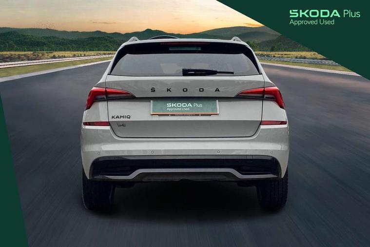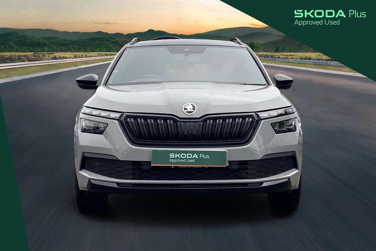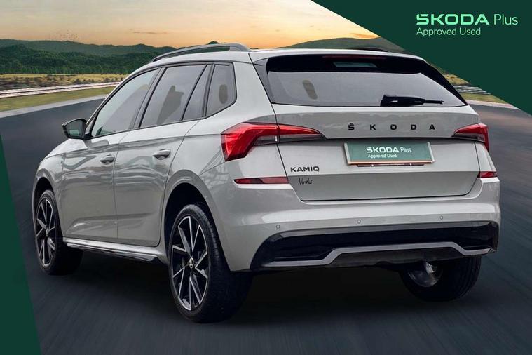 Amundsen satellite navigation with 9.2" touchscreen display, voice control, virtual cockpit and web radio, Bluetooth system, E-call, Front assist system, Gesture control, PAS, Service indicator, Speed limiter, Virtual cockpit with 10.25" display, Wireless SmartLink for apple car play, android auto and mirrorlink, 2 USB - C ports with 1x adaptor cable, Auxiliary input socket, DAB Digital radio, Auto dimming rear view mirror, Black door mirrors, Black radiator grille, Black rear diffuser, Body colour bumpers, Body colour door handles, Body colour roof spoiler, Boot lettering in black, Chrome grille surround, Electrically adjustable and heated door mirrors, Front and rear electric windows, Front sport bumper, Full LED headlights with adaptive front light system, dynamic indicators, cornering function and fog lights, Headlight range control, Heated rear window, High functionality rear led lights with dynamic indicators, KAMIQ Door sills, Light sensors, Monte carlo plaque, Panoramic sunroof with black roof rails, Privacy glass, Rear fog lights, Rear wiper, 12V Accessory socket in centre console, Aluminium pedals, Black ceiling for black/beige interior, Chrome inner door handles, Cloth upholstery, Front head restraints, Glove compartment with illumination, Height adjustable passenger seat, Ice scraper, Isofix child seat fittings on outer rear seats, ISOFIX on front passenger seat, Leather gear lever, Manual lumbar support for front seats, Rake/reach adjustable steering wheel, Reading lights, Sports seats, Sun visors with illumination on front passenger, Textile floor mats, Third rear headrest, Top tether for front passenger seat, Umbrella in driver's door, 3x3 point rear seatbelts, Airbags - driver and front passenger, ESP, Front passenger airbag deactivation switch, Front side airbags with curtain airbags, Hill hold control, Manual parking brake, One tone horn, Rear disc brakes, Seatbelt reminder for driver an co-driver, Traction control, Tyre pressure monitor, Anti-theft alarm system with interior monitoring, backup horn, towing protection and remote central locking with SAFE system, Anti-theft wheel bolts, Electronic engine immobilizer, Chrome air vent surrounds, 18" Vega alloy wheels in black,