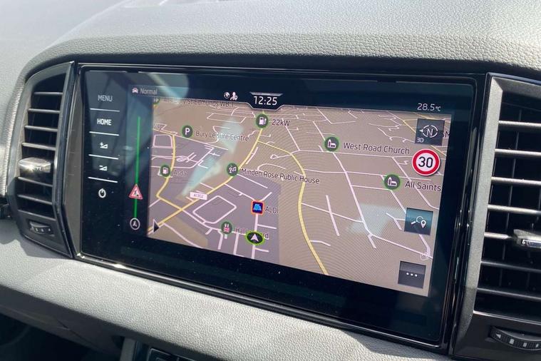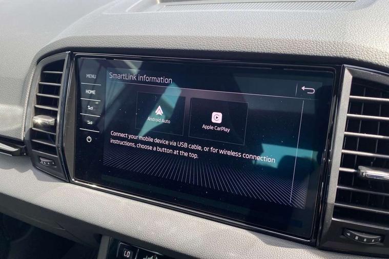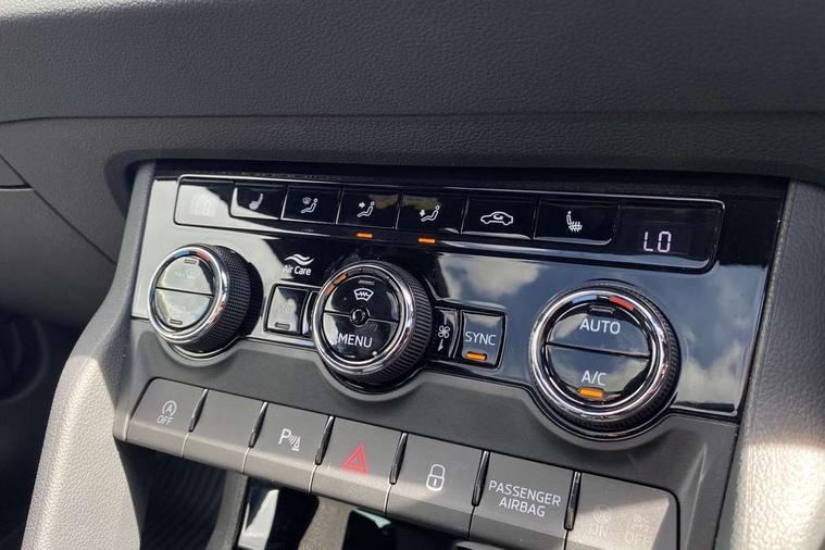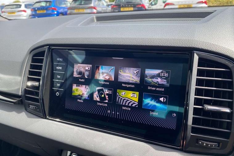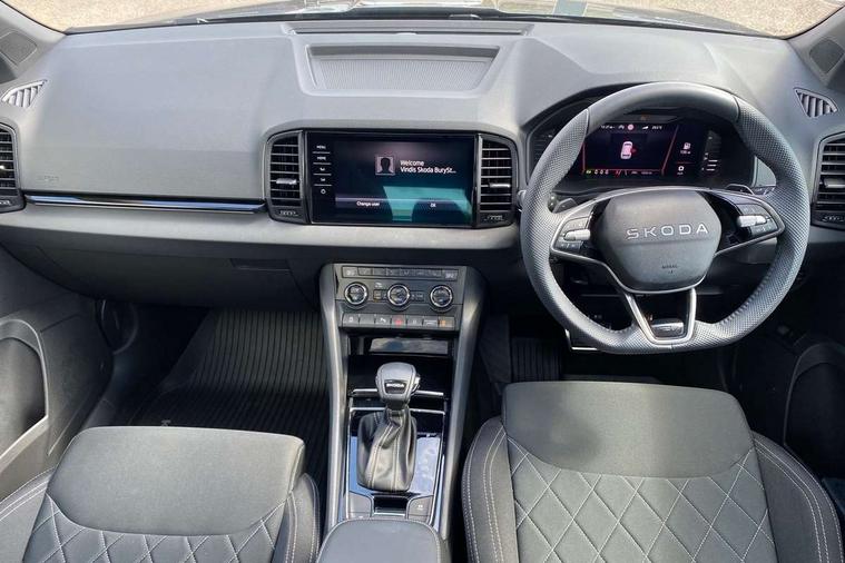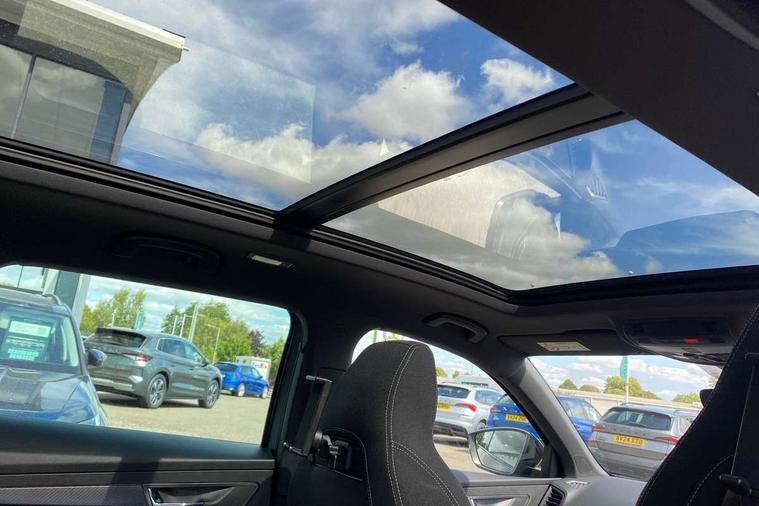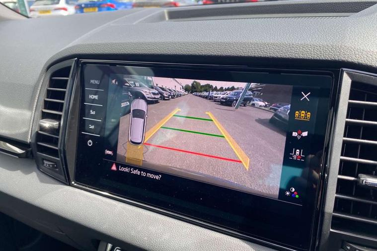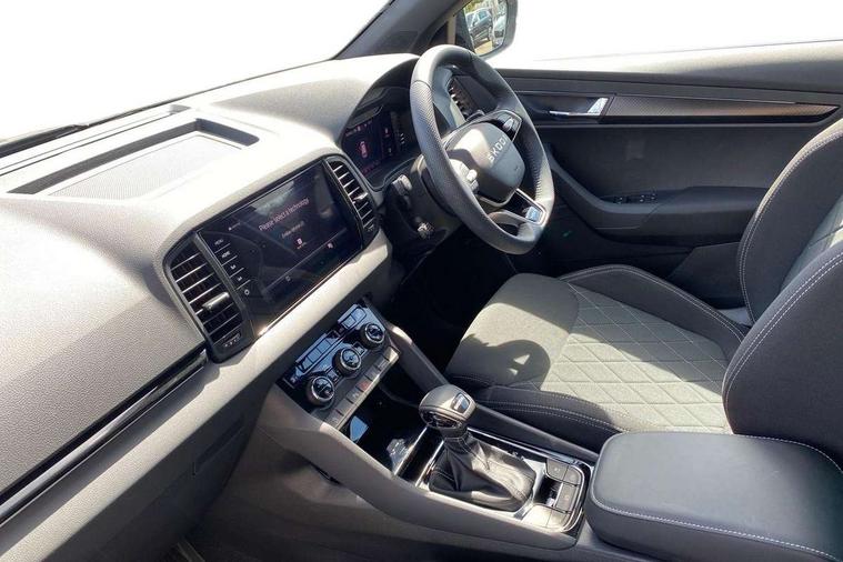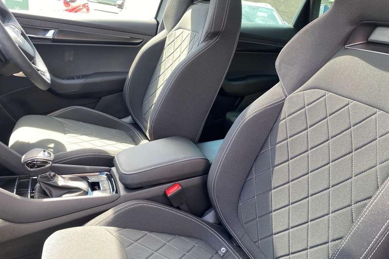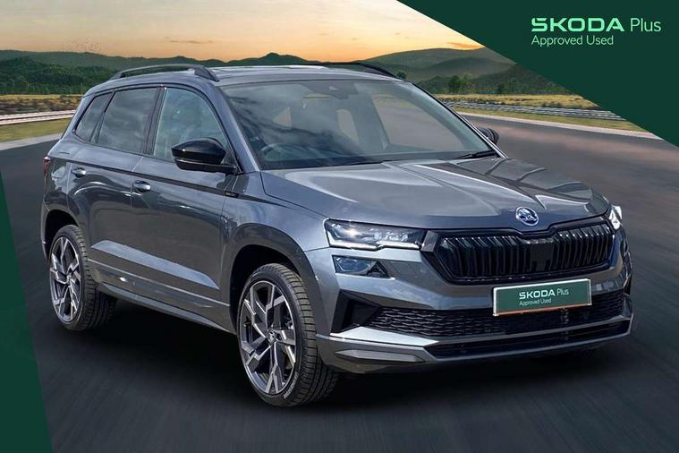 Advanced driver attention and drowsiness monitor, Emergency services call system, Outside temperature gauge, Sensor for driver assistance systems, Service interval indicator, SmartLink wireless for Apple and wired for Android, Start/stop system with regenerative braking, Traffic sign recognition, USB C Port x 2 in front centre console, Virtual Cockpit - 10.25" digital display, Virtual pedal with electrically operated boot door, Wireless smartphone charging, DAB radio with Bluetooth, USB connection, Acoustic glass, Aero front windscreen wipers with intermittent function, Auto dimming rear view mirror with light and rain sensors, Black door mirrors, Black electric window control buttons, Black radiator grille, Black roof rails, Body colour door handles, Electric front and rear windows with child proof lock, Extended rear roof spoiler, Front door steps with SportLine logo, Heated rear windscreen, LED daytime running lights, LED rear lights with high functionality welcome effect and dynamic indicators, Light assistant (coming/leaving home/tunnel light), Panoramic sliding sunroof, Plastic scuff plates in door apertures, Privacy glass, Protective door side sills in body colour, Rear diffuser, Rear side wing doors, Rear window wiper with washer system and intermittent control, Safety reflectors on front doors, Skoda lettering on tailgate in black, Sportline badge on front fender, Sports front and rear bumpers, Third brake light, Unique dark chrome design logo on alloy wheels, 1.5 litre bottle holders in driver and front passenger door panels, 12V socket in boot, 12v socket in front centre armrest with storage compartment and rear air vents, 2 x Tablet holder, 3 rear height adjustable headrests, 3 seat bench in 2nd row, 3 spoke sports leather heated multifunction steering wheel with DSG paddles, 4 foldable roof handles with rear coat hooks, Black floor carpet, Cargo elements in boot, Chrome inner door handles, Foldable hooks in the boot, Front head restraints, Height adjustable front three point seats belts with tensioners, Height/reach adjust steering wheel, Ice scraper, Illuminated glovebox, Illuminated luggage compartment, Isofix child seat preparation for front passenger seat, Isofix child seat preparation outer rear, Manual lumbar support for front seats, Pen holder, Pollen filter, Rear backrest release from boot, Rear boot cover, Rear package tray, Rear reading lights, Rear seats fixed folding and divided 60:40, Rubbish bin door, Safety vest holder, Single front passenger seat, Skoda lettering on steering wheel, Sportline decorative inserts, Storage box in upper central dashboard closed, Sunvisors with illuminated vanity mirrors, Textile floor mats, Ticket holder, Titan black interior ceiling, Umbrella under passenger seat, Under passenger seat storage compartment, Columbus pack - Karoq, LED Interior lighting pack with Skoda welcome logo - Karoq, Light Pack - Karoq, Non Smokers pack, Performance pack - Karoq, Winter plus pack with heated front and rear seats - Karoq, Automatic door unlocking in case of crash, Automatic fuel cut off in case of crash, Driver airbag, Electronic parking brake with auto hold function, Emergency rear braking signal, ESC (incl. ABS+MSR+ASR+EDS+HBA+DSR+RBS+MKB), Front side airbags, Head airbags, Hill hold control, Knee airbags, Passenger airbag with switch-off function, Pedestrian monitor, Seatbelt reminder signalisation and pretensioner for all seats, Three point seatbelts rear, Two tone horn, Tyre pressure monitor, Alarm with interior monitoring, back up horn and tilt sensor with safe function, Electronic engine immobiliser, Keyless entry and start/stop, Remote central locking with 2 remote folding keys, Black air vent surround, Black centre console, carbon door decor, Satin black dashboard, Satin black door trim, 19" Sagittarius anthracite alloy wheels, Anti-theft wheel bolts protection, Breakdown and tool kit,