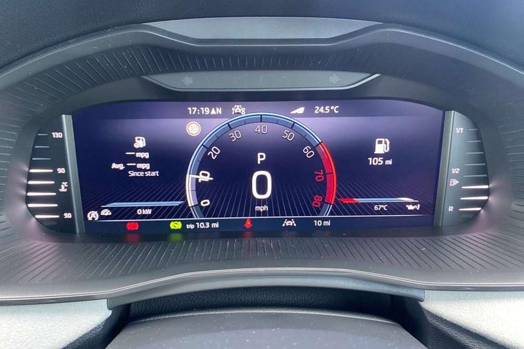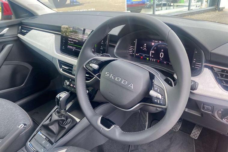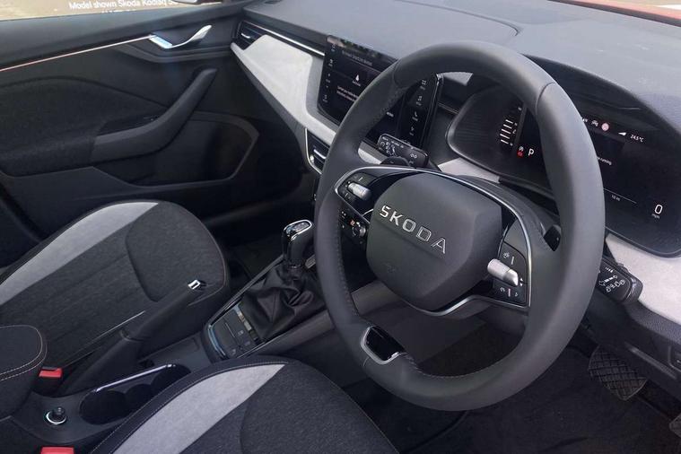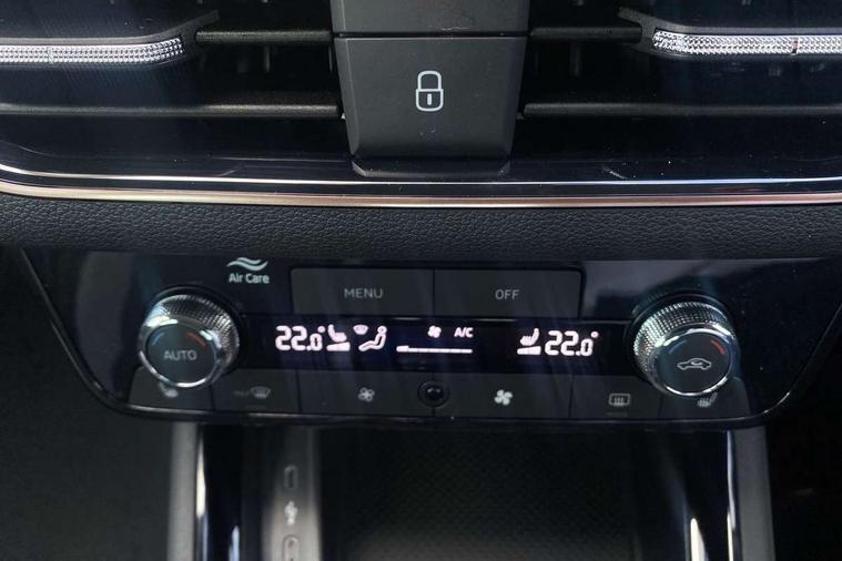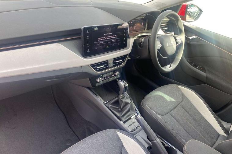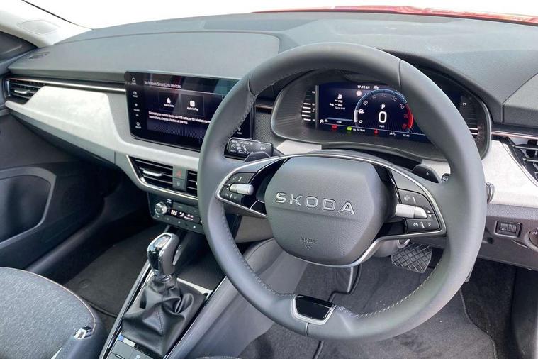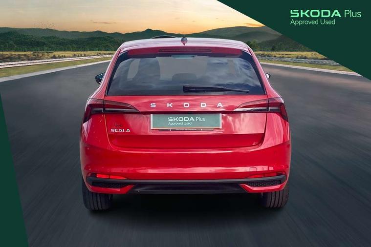 Advanced driver attention and drowsiness monitor, Bluetooth, e-Call (emergency call), Front assist system, PAS, Rear parking sensors, Rear view camera, Speed limiter, Tailgate, Traffic sign recognition, Virtual Cockpit - 10.25" digital display, Voice control system, Wireless smartlink, 4 USB C ports, 8 Speakers, 9.2" Skoda navigation display, DAB radio, Auto dimming rear view mirror, Automatic headlamp activation with Coming home and Leaving home feature, Automatic high/low beam, Automatic intermittent wipers, Body colour bumpers, Body colour door mirrors and handles, Chrome moulding around grille, Chrome window frames, Front and rear electric windows, Heated rear window, LED 3rd brake light, LED brake lights, LED daytime running lights, LED front turning lights, LED high beam, LED low beam, Light sensors, Privacy glass, Rear LED fog light, Rear side wing doors, Rear wiper, Tinted windows, Unique dark chrome design logo on alloy wheels, 12V socket in luggage compartment, 3 seat bench in 2nd row, Ambient lighting in white/red, Black / Copper armrest stitching, Cargo elements, Chrome inner door handles, Copper hotstamping, Door inserts in accent black, Driver and passenger sun visors with vanity mirror, Dual zone climate control, Front and rear roof lights, Front centre armrest, Front head restraints, Glasses storage in roof liner, Height adjustable driver seat, Height adjustable passenger seat, Ice scraper, Illuminated glove compartment, Inner circulation control with pollen filter, ISOFIX for front passenger seat, Isofix preparation for back seats, Leather gearknob and handbrake lever, Lodge cloth upholstery, Luggage net under rear parcel shelf, Manual lumbar support for front seats, Net package and top tether hooks in boot space, Pearl grey ceiling, Pocket on the back of both front seats, incl. mobile phone pockets, Rear centre armrest, Single front passenger seat, Skoda lettering on steering wheel, Textile floor mats, Third rear headrest, Ticket holder, Top tether for front passenger seat, Umbrella in driver's door, Convenience pack without rear camera - Scala, 3x3 point rear seatbelts, ABS, Child locks, Curtain airbags and front side airbags, Disc brakes, Driver and front passenger airbags, ESP, Hill hold control, Manual leather parking brake, One tone horn, Passenger airbag switch off function, Seatbelt reminder for driver and front passenger, Tyre pressure monitoring system, Anti theft alarm system with interior monitoring, backup horn and towing protection, Anti-theft wheel bolts, Remote central locking with 2 remote folding keys, SAFE function for remote central locking, Decorative inserts,