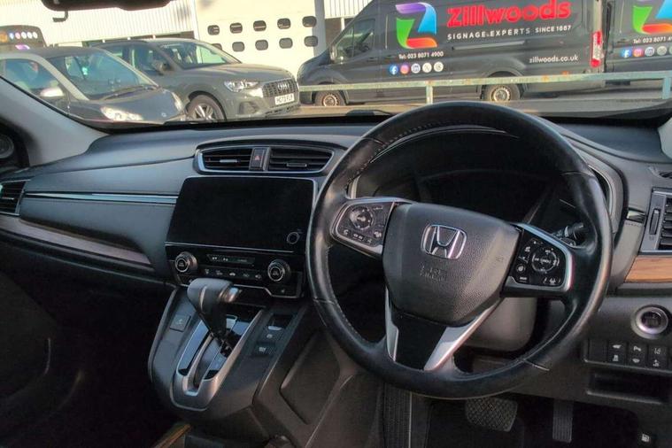 Adaptive cruise control, Agile handling assist, BLIS (Blind Spot Information System) with dual power heated blind spot mirrors, Bluetooth hands free telephone connection, Economy mode, Electric power steering, Emergency stop signalling system, Forward collision warning, Front and rear parking sensors, Hands free tailgate, Head up Display, Honda CONNECT with GARMIN Navigation + 7" touchscreen, DAB radio, Apple CarPlay, Android Auto, Aha app integration and internet browsing, Intelligent multi info display, Lane departure warning system, Lane keep assist system, Low speed following, Rear view camera, Road departure mitigation, Speed limiter, Traffic sign recognition, Vehicle stability assist, 2 USB sockets in rear, 2x USB sockets in front, 8 Speakers, DAB Digital radio, Steering wheel mounted controls, Subwoofer, Aspheric door mirrors, Auto dimming rear view mirror, Automatic headlights with dusk sensor, Body colour bumpers, Body colour door handles, Cornering light, Door mirrors tilt when reversing, Electric front windows/one touch facility, Electric rear windows + one touch facility, Electrically adjustable and heated door mirrors, Electrically retractable door mirrors, Front windscreen de-icer, High beam assist, LED daytime running lights, LED front fog lights, LED Headlights, LED rear lights, Panoramic opening glass sunroof, Rain sensor, Rear privacy glass, Rear wiper, Roof rails, Shark fin roof aerial, Trailer stability assist, Welcome home function, 60/40 split folding rear seat, 8 way electrically adjustable drivers seat + mirror memory, Accessory sockets, Ambient interior lighting, Ambient light in roof, AWD emblem rear, Cargo hooks, Courtesy lights, Driver's electric adjustable lumbar support, Driver/passenger front seatback pockets, Driver/passenger sunvisors with illuminated vanity mirrors, Dual zone automatic climate control, Electric lumbar adjustment on passenger's seat, Footwell ambient lighting, Front centre armrest, Front map lights, Front passenger seat height adjust, Heated front seats, Heated rear seats, Heated steering wheel, Illuminated glovebox, Instrument panel with garnish wood film, Isofix child seat preparation, Leather steering wheel, Leather upholstery, Paddle shift controls, Rear air vents, Rear centre armrest, Rear headrests, Rear reading lights, Silver interior door handles, Sunglasses holder with mirror, Tilt/telescopic adjustable steering wheel, Tonneau cover, Trunk light, 5 x 3 point seatbelts, ABS/EBD, Anti-whiplash front headrests, Brake assist function, Collision mitigation braking system, Deflation detection system, Driver airbag, Electronic parking brake with auto hold, Front and rear curtain airbags, Front side airbags, Hill start assist, Passenger airbag deactivate switch, Honda super locks, Immobiliser, Remote keyless entry, Security alarm, Ultrasonic sensor and tilt sensor, 19" Alloy wheels, Temporary spare wheel,
