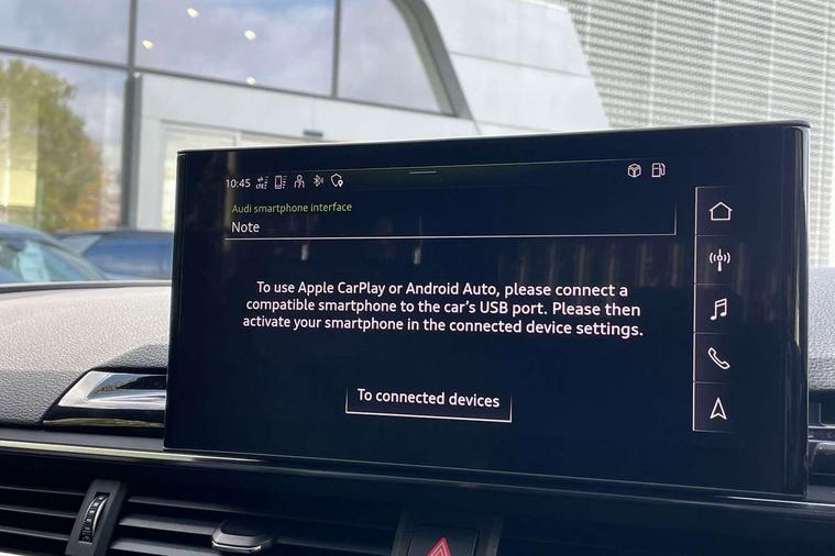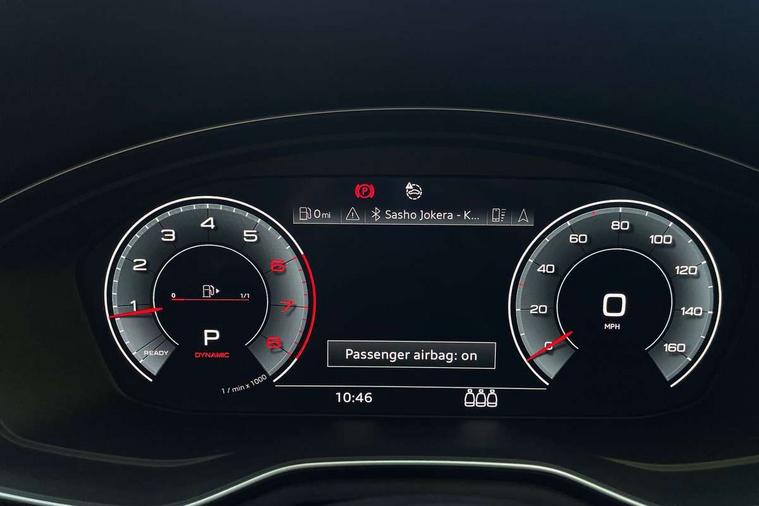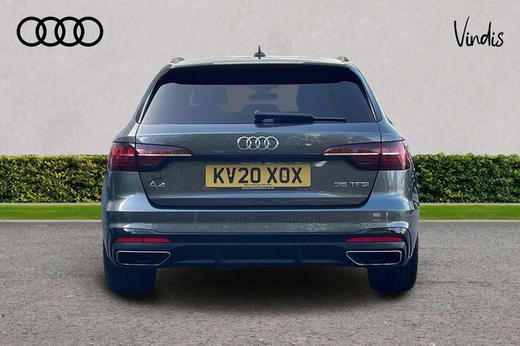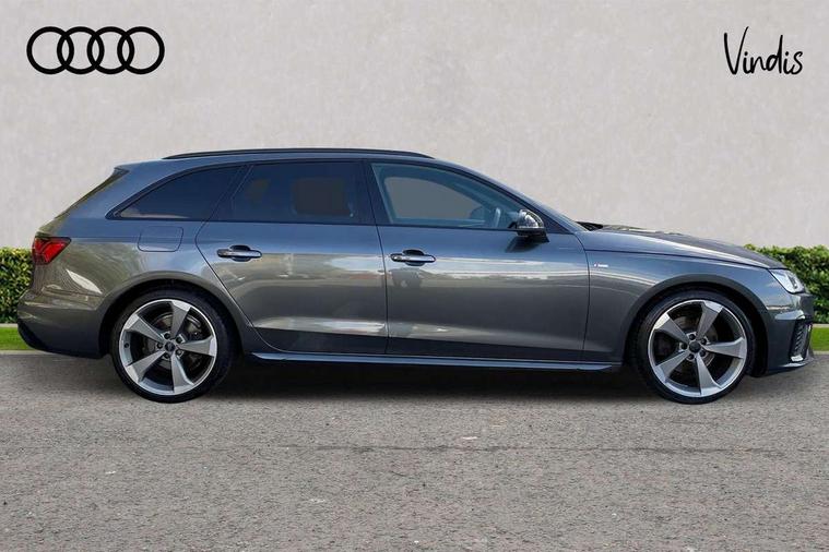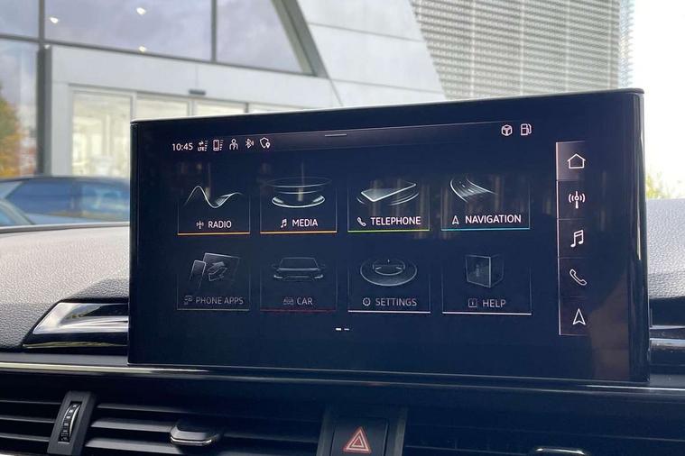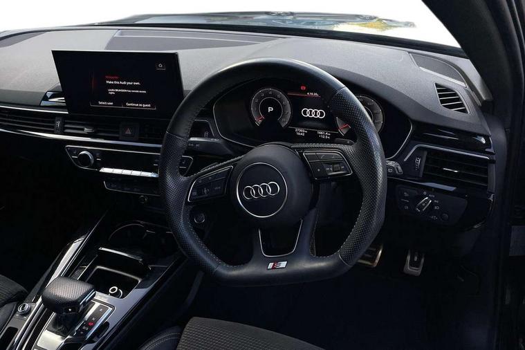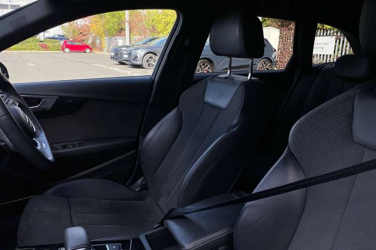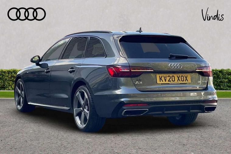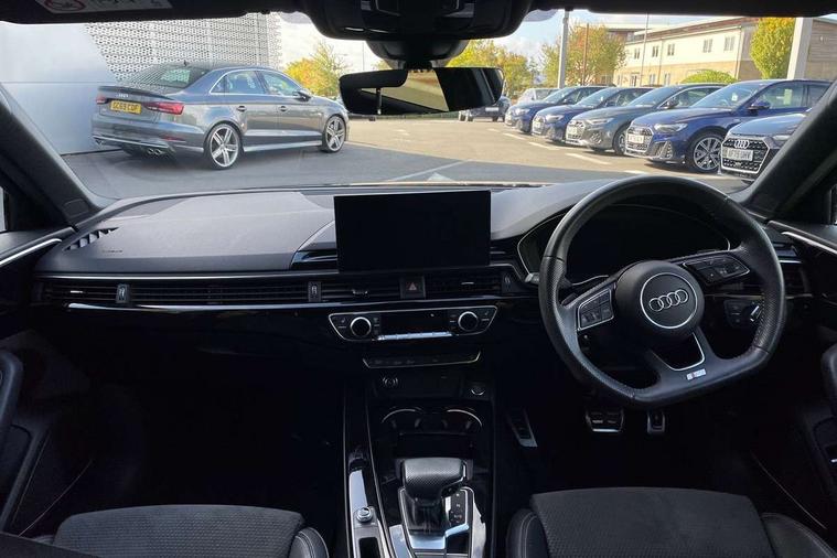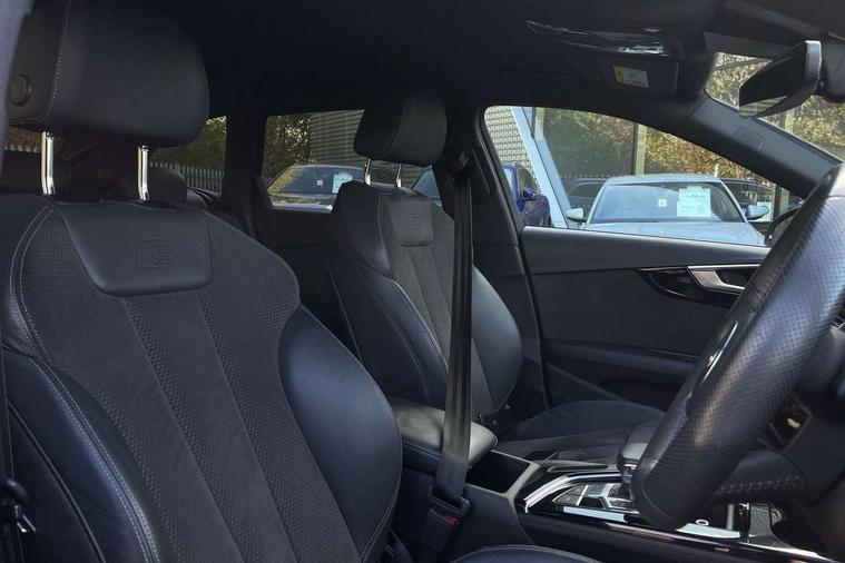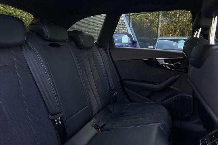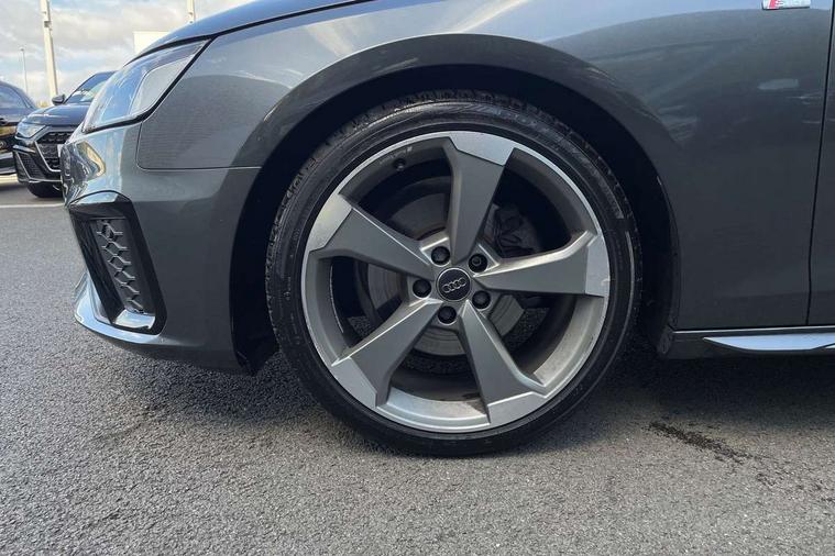 Audi connect safety and service (e-call), Audi drive select, Audi parking system plus with front and rear sensors, Audi smartphone interface, Audi virtual cockpit, Automatic start-stop system with coasting functionality and efficiency programme, Bluetooth interface, Electromechanical power steering, MMI Navigation plus with MMI touch includes 10.1" high resolution colour MMI display, 3D map, Power operated tailgate, Rear view camera, Voice control system, 54 litre fuel tank, Sports suspension lowered by 23mm, 2 USB charging ports, 8 passive loudspeakers, DAB digital radio reception, Auto dimming rear view mirror, Body colour door handles, Body colour front spoiler lip, Body colour side sill trim, Electrically folding auto dimming/adjustable/heated door mirrors with LED side indicators and kerb view function for passenger side, Grained matt black side air inlets with matt aluminium silver inlay, High beam assistant, LED headlights with LED rear lights + dynamic rear indicators + headlight adjustment and high beam, turning light + LED daytime running lights, Matt aluminium silver tailpipe trim, Privacy glass, Rain and light sensors, S Line badges on the front wings, S line front and rear bumpers with side skirts, S Line rear diffuser in matt titanium black with trim strip in matt aluminium silver, S Line roof edge spoiler, Windscreen with acoustic glazing, 4 way electric lumbar support for driver and front passenger, 40/20/40 split folding 3 rear seat bench in 3 parts with rear centre armrest, Black cloth headlining, Black perforated leather gearknob, Contrast stitching on seats, steering wheel and gear lever gaiter, Deluxe 3 zone electronic climate control, Door sill trims with aluminium inlay, Electric load area cover, Front and rear head restraints, Front centre armrest, Heated front seats, Illuminated door sill trims with S logo, ISOFIX child seat mounting and top tether, Manual seat adjustment, Stainless steel pedals and foot rest, LED Interior light pack - A4/S4, Titanium black styling pack - A4 Avant, 3 rear seatbelts, 6 airbags - Driver, front passenger, curtain and side windows, Electronic Stabilisation Control (ESC) including ABS, ASR and EDL, Hill hold assist, Multi collision brake assist, Pop-up bonnet for pedestrian protection, Pre sense city, Seatbelt monitoring, Warning triangle and first aid kit, Anti theft alarm, Anti theft wheel bolts, Keyless Go, Piano black finish inlay, 19" 5 arm rotor design alloy wheels titanium matt look, Tool kit, Tyre repair kit,