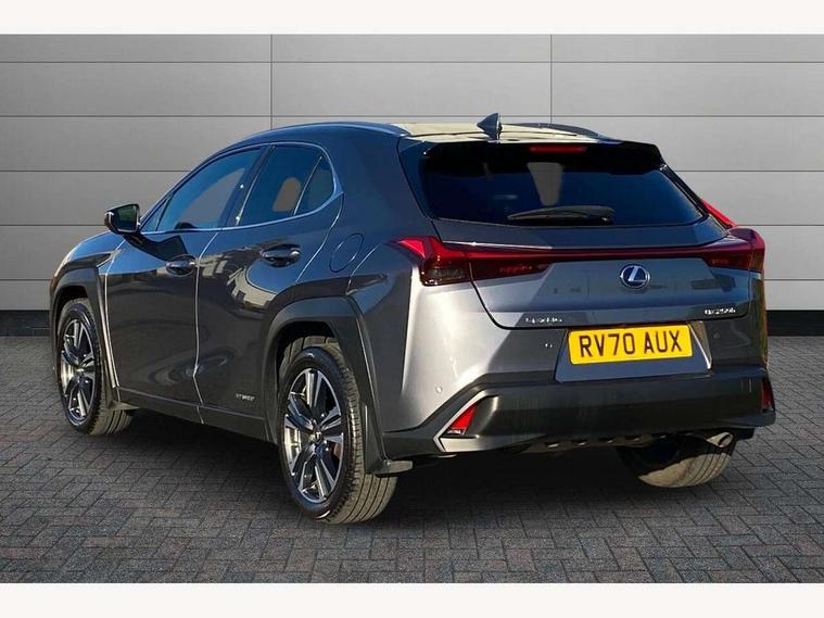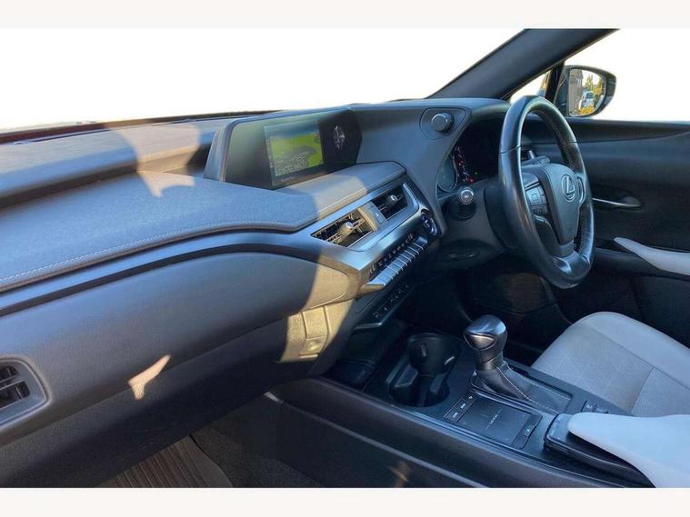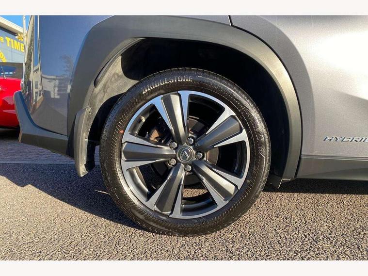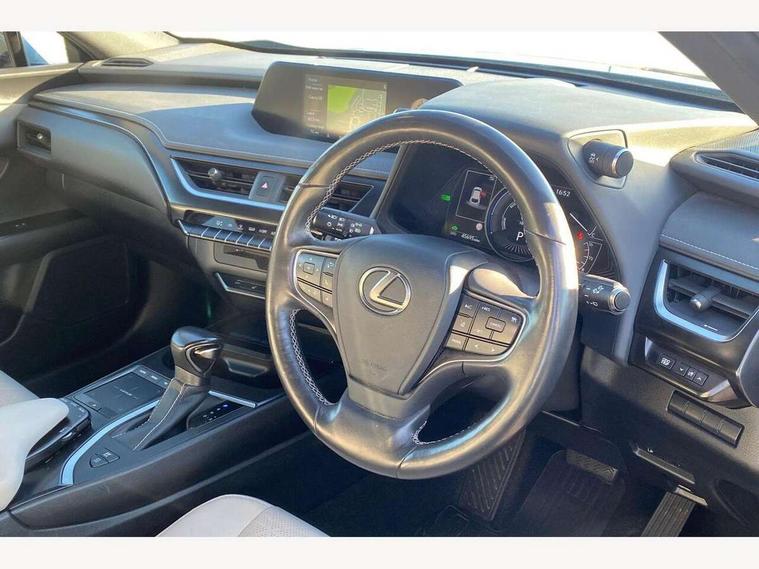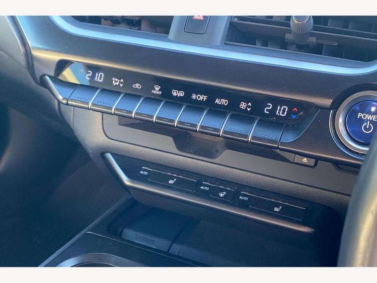 4 driving modes EV/Eco/Normal/Sport, 7" Lexus media display, 7" TFT instrument cluster, Analogue clock with GPS function, Apple car play/Android Auto, Compatible mobile phone bluetooth with audio streaming, E-call, Electric power steering (EPS) with speed sensitive features, Lane change flasher function, Lexus link connected services, Lexus safety systems + includes dynamic radar cruise control, pre collision system day and night, lane tracing assist, road sign assist, Push button start, Remote touch interface, Reversing camera with back guide lines, Trip computer, Vehicle Dynamics Integrated Management (VDIM), Vehicle Stability Control (VSC), 2 front USB and 2 rear USB charging points, 6 speakers, AM/FM and DAB radio, AUX socket with VTR compatibility, CD player, Acoustic windscreen, Aero stabilising arch mouldings, Aero stabilising rear lights, Aero ventilated wheels, Aluminium roof rails, Bi-LED (low and high beam) headlights with Auto High Beam (AHB), Body adhesive, laser screw welding and laser brazed roof structure, Electric adjustable/heated door mirrors, Front and rear one touch power windows, with anti-jam protection, Headlight cleaners, LED daytime running lights, LED front and rear fog lights, LED tail lights, Light green UV glass, Rain sensor windscreen wipers, Rear wiper, Shark fin roof aerial, Single hidden exhaust pipe, Towing preparation, 12V accessory port centre console and luggage compartment, 2 cup holders in the front and rear centre console, 2 x folding shopping bag hooks in boot, 2 x sun visors with vanity mirror and lamp, 4 x tie down hooks in the boot, 5 headrests, 6 way driver and passenger manually adjustable front seats, 60/40 split folding rear seat, Card holder installed in driver and passengers sun visors, Centre armrest with storage, Driver and passenger door pocket, Dual zone electronic climate control + Nano-E humidity sensor, Glovebox, Leather gear lever, Leather steering wheel, LED interior illumination, Map pockets in the rear of passenger's front seat, Premium fabric upholstery, Rear air vents with 2 USB chargers, Rear armrest with 2 cupholders, Storage tray under audio panel, Textile carpet mats, Tilt/reach adjustable steering column, Under deck storage, Under desk side storage, 2 x Isofix child rear seat restraints, 3x3 point rear seatbelts, Anti-lock braking system (ABS), BAS (Brake Assist System), Driver and front passenger 2 stage airbag, Driver and front passenger knee airbag, Driver/front passenger side airbags, EBD - Electronic brakeforce distribution, ECB (Electronically Controlled Brake System), Electric parking brake, Front adjustable seatbelt anchor points, Front and rear curtain shield airbags, Front outer seatbelt+pre-tensioners, force limiter+tension reduction: 3-point with active safety link to PCS, Hill start assist control (HAC), Passenger airbag cut-off device, Rear outer seatbelt+pre-tensioners, force limiter+tension reduction: 3-point with active safety link to PCS, Centre belt w/o pre tensioner+force limiter, Secondary Collision Brake (SCB), TRC (Traction Control), Tyre pressure warning, 2 x remote key fobs, Anti theft system : Alarm instruction sensor, glass breakage sensor and engine immobiliser, Locking wheel nuts, Remote central door locking, Speed sensitive auto door locking, Two motion door lock with double lock, VIN Window etching, 17" Alloy wheels, Tyre repair kit,