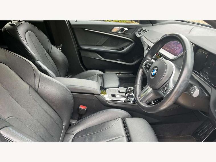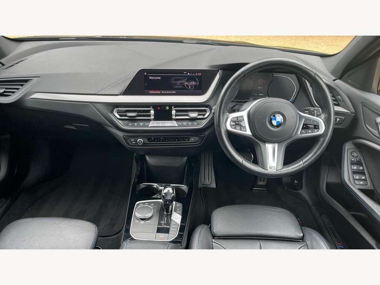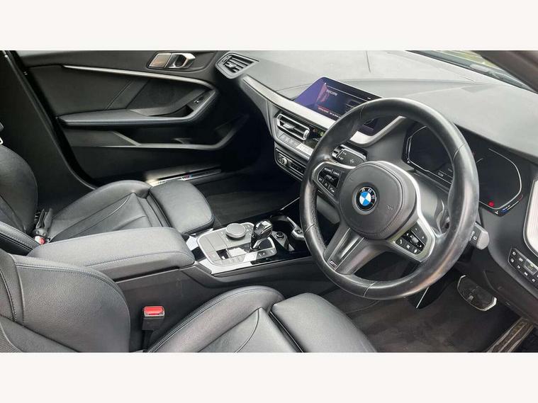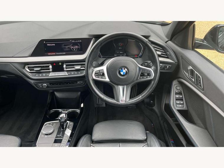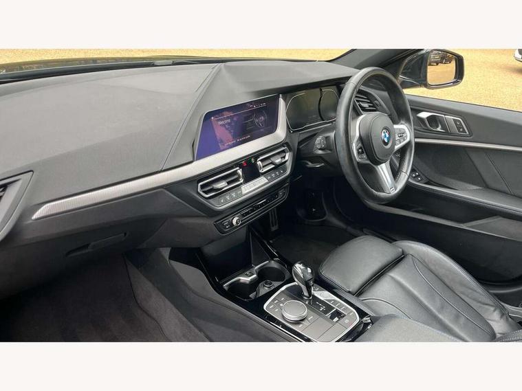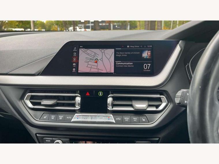 Active guard plus, Attentiveness assist, BMW Online services, BMW Teleservices, Check Control warning system for monitoring of lights and door/luggage compartment open warning, Connected eDrive Services, Eco pro mode, Integrated owners handbook, Oil sensor for level and grade, On board computer, Optimum shift indicator, Personal Profile, Pull away assistant, Speed limiter, Aluminium lightweight construction, Anti roll bar front and rear, Balancer shaft, Double VANOS, Drive Performance Control, Electronic differential lock, High precision injection, M sport suspension, Petrol Particulate Filter, VALVETRONIC engine management, Bluetooth audio streaming, DAB Digital radio, Auto dimming rear view mirror, Automatic headlight beam throw control, Automatic windscreen wipers and automatic headlight, Body colour door handles, Body colour mirror caps, Chrome 'M' logo side designation, Chrome exhaust tailpipe in single, round (Exhaust tailpipe, stainless steel - single, round), Chrome kidney grille frame with Satin Aluminium struts, Direction indicator side lights in exterior mirrors, Electric folding and anti dazzle exterior mirrors, Fading support, Follow me home headlights, Front and rear bumper system with replaceable deformation elements, Front and rear electric windows with open and close fingertip control, anti trap facility and comfort closing, Front door sill finishers in black plastic with M designation in metallic look, Green tinted heat protection glazing, Heated, electrically adjustable exterior mirror aspheric on driver side, convex on passenger side, High gloss shadowline window frame, Recess cover mirror frames and B/C pillar embelisher trim, High level third brake light, LED daytime running lights, LED eyebrow turn indicators, LED front fog lights, Lightweight engineering, Matt black air guide grilles, Model designation on right side of tailgate, Nearside reverse light in rear light cluster, Preparation for high beam assistant, Rain sensor including auto headlights activation, Rear fog lights, Rear window wiper, Shark fin antenna, Visible VIN plate, Welcome lighting, 12V power socket in centre console, 3 rear seat head restraints, 3 spoke M sports design leather steering wheel finished in nappa leather with specific M badge, Anthracite headlining, Anthracite Velour floor mats, Child seat ISOFIX attachment for two outer rear seats and front passenger seat with anchorage points, Conditioned based service, Dakota leather upholstery with perforation and contrast stitching, Driver and front passenger seat heating, Folding rear clothes hook, Four grab handles integrated in roof lining, Front and rear door pockets, Front and rear door pockets with bottle holders, Front and rear side armrest integrated into door trim, Front armrest foldable with integrated storage compartment, Front sports seats with electric side bolster adjustment, Glove compartment, Height adjustable front head restraints, Manual adjust steering wheel, Multi-function controls for steering wheel, Storage compartment in centre console, Sun visors with vanity mirrors and insert tab, Two zone automatic air conditioning, Additional interior lighting pack - 1 Series, Connected pack professional - 1 Series, Extended storage pack - 1 Series, Interior lights pack - 1 Series, Luggage compartment pack - 1 Series, M Sport exterior styling aerodynamics pack - 1 Series, 2 tone horn, 3 point seatbelts on all seats, front pyrotechnic belt tensioners, stopper and belt force limiters, rear coded belt buckles, Airbags - front driver/passenger, front & rear curtain, front side, Anti lock braking system (ABS) with brake assist, BMW emergency call, Brake drying, Braking readiness, Crash sensor activating central locking release, hazard warning lights, fuel cut off, interior lighting + activation of safety battery terminal clamp, Driver and front passenger seat belt security check, Dynamic stability control + (DSC+), Dynamic Traction Control - DTC, Electrically operated hand brake, Front and rear disc brakes, Front passenger manual airbag deactivation, Seatbelt warning, Side impact protection, Tyre pressure monitoring system, Warning triangle and first aid kit, Automatic drive away locking facility, Central locking switch for all doors, fuel filler cap and luggage compartment, Deadlocking function system to all doors, Locking wheel bolts, Remote control with integrated key with High-gloss Black inlay and M designation and 1 button for open/ close lock, window, open luggage compartment, Start/stop button with comfort go keyless engine start and auto start stop deactivation button, Thatcham Cat.1 alarm and immobiliser, Contrast stitching on instrument panel, Reduced rolling resistance tyres,