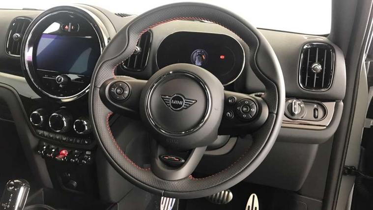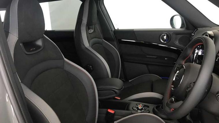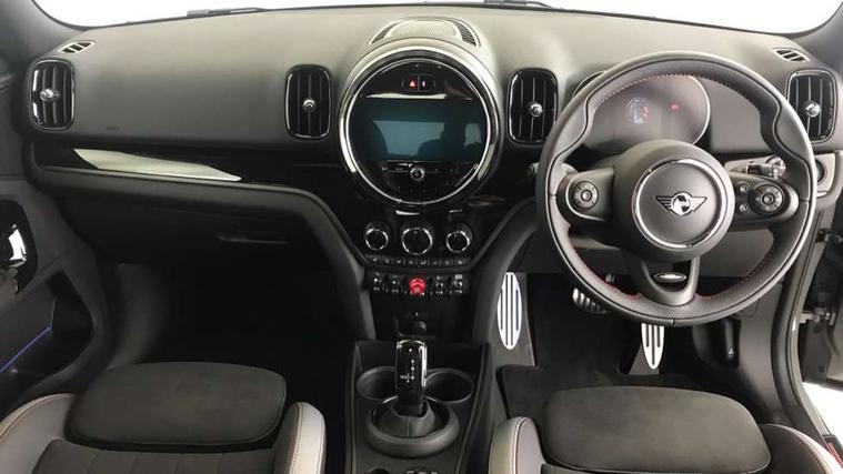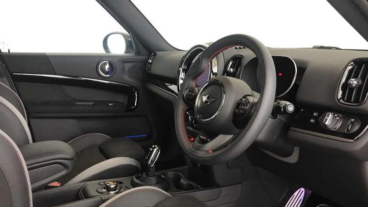 Active Guard incl speed limiting and lane departure functions with auto steering, and front collision warning with brake intervention, Automatic start/stop function with brake energy recuperation, Compatible mobile phone bluetooth with audio streaming, Electro-mechanical speed dependant steering assistance, Instrument cluster, On board computer, Rear parking distance control, 51 Litre fuel tank, Double Vanos system, Fully variable valve control, High precision injection, Performance Control, Steptronic transmission with double clutch, FM tuner and DAB digital radio, Body colour fuel filler cap, Day time driving lights, Door sill strips, Dynamic brake lights, Electric windows, Heated rear window, Heated windscreen washer jets, John Cooper Works - aerodynamic kit (front and rear apron, spoiler), front and rear sport bumpers and part-painted side sills with door sill finishers, John Cooper Works Logo, LED fog lights, LED Headlights, Model logo, Model logo on Tailgate, Rain sensor with auto headlights, Rear fog lights, Rear window wiper, Side scuttle panel with integrated indicator, Split rear doors, Sun/heat protection glass, White indicator lenses, 12V socket in centre console, 360L luggage compartment capacity, 4 lashing eyes in luggage compartment, 40:20:40 split folding rear seats, Anthracite headlining with grab handles and clothes hooks, Chrome interior highlights, Colour line - Carbon black, Cupholders, English handbook, Floor mats, Front headrests, Glove compartment, Height and length steering column adjustment, Interior lighting with 12 basic colours selectable via toggle switch in roof, Isofix rear child seat preparation, LED reading lights, vanity mirror lights, front foot well light and spotlight on front seats, Manual air conditioning, Mini John Cooper Works leather gearshift lever and handbrake gaiters, Multifunction steering wheel, Nappa leather steering wheel with MINI Yours logo, Rear headrests, Stainless steel pedals and foot rest, Storage compartments in doors, Sunvisors with vanity mirrors, Excitement pack - Countryman, Navigation pack - Countryman, Piano black exterior pack - Countryman, 2 tone horn, 3 point seatbelts on all seats, 6 Airbags - front, side, head and seat belt tensioners, Anti-lock braking system (ABS), DSC - Dynamic Stability Control, Electronic handbrake, Front and rear disc brakes, Hill start assist, Tyre pressure monitoring system, Alarm system with tilt sensor, monitoring doors, bonnet interior and tailgate, Auto drive away locking, Deadlocking function, Electronic vehicle immobiliser, Locking wheel bolts, Start/stop toggle with keyless go, Piano black JCW interior trim, Tool kit,