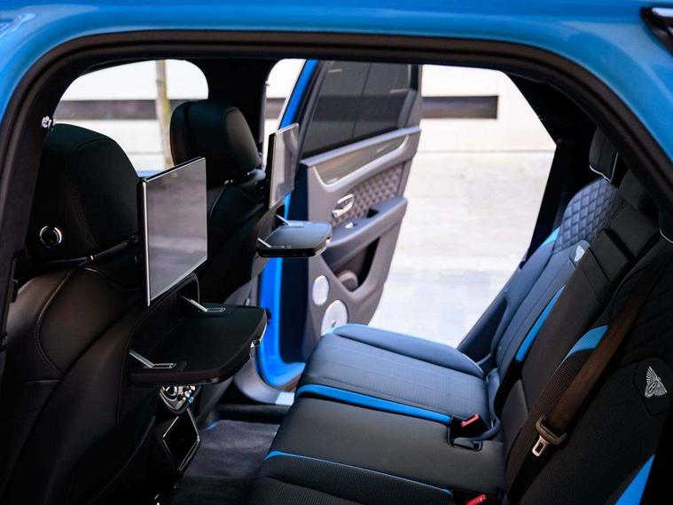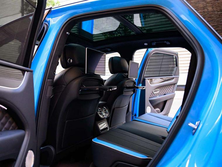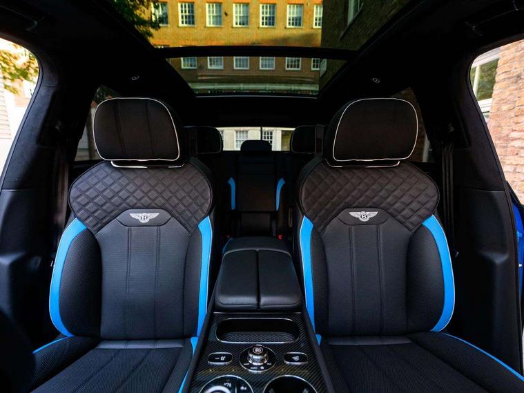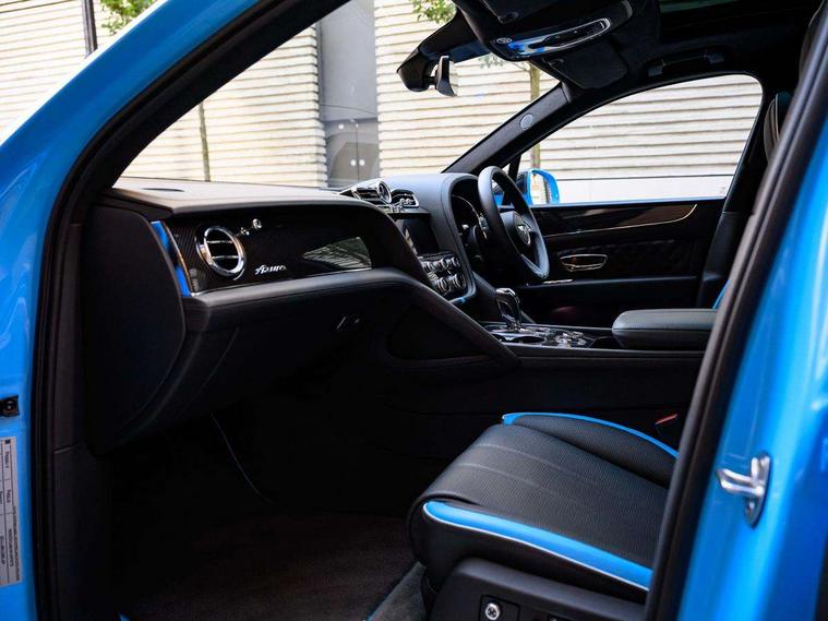 10.9" touch screen high resolution and configurable infotainment display and digital drivers information display, Adaptive cruise control, Advanced navigation function with text, search, 3D, satellite maps, speed limit, dynamic traffic route guide, telephone, Text-speech + voice, Bentley branded clock, Bentley GPS tracking system full fitment, Bentley safeguard plus, Blind spot assist, Bluetooth and WIFI enabled, Emergency services call system, Four drive dynamics modes (bentley, comfort, sport, custom), Front/rear park distance control, Hands free power tailgate, Head up Display, Lane assist, MMI Screen, My Bentley connected car services, Night vision, Power latching to all doors for easy entry, Redesigned instrument panel lower trim rolls, incorporating a storage compartment on the passenger side, Seamlessly integrated technology with wireless apple car play and android auto, Speed sensitive variable ratio electric power steering, Touch screen remote, Traffic jam assist, Voice control system, Wireless phone charging compartment, Air suspension with continuous damping control, Bentley Dynamic ride, Permanent all wheel drive with centre torsen differential, Bluetooth audio streaming, 3rd brake light, Adaptive low beam, Auto dimming rear view mirror, Automatic headlights, Azure exterior door badges, Azure fascia badge, Bentley badge in tailgate opening switch, Black painted shark fin aerial, Body colour door mirrors, Body coloured lower bodywork - Standard paint range, Bright chromed matrix style grille to lower bumper apertures, Bumper design with large side intakes and sculptured surfaces, Clamshell rear tailgate design with Bentley lettering under the wings, Elec/heat/adj/fold door mirror+memory, Electric tilt/slide panoramic sunroof, Fender design reduces over bodied perception, Fixed rear spoiler, Front and rear fog lamps, Full LED supplementary lamps and tail lamps, Full matrix LED headlamps with high beam assist, Full width clamshell design and deeply contoured rear tailgate panel, Heated rear windscreen, Jewel fuel and oil filler caps, Large dominant B shaped side wing vent front position, LED daytime running lights, Long fender vent above the power line on body side, Lower door side mouldings, Number plate aperture position under rear bumper, Oval split tailpipe, Phone antenna amplifier, Rain sensing wipers, Rear side wing doors, Rear wiper, Self levelling wheel badge, Trailer sway mitigation, Tunnel detection for auto light control, V8 exterior badge, Wet arm wipers and heated water jets, 12V power in rear centre console, 12V socket in glovebox, 12V socket in luggage compartment, 3 seat bench in 2nd row, 4-Zone HVAC, Air Ioniser, Azure seat emblems, Black (Beluga) boot carpet, Electric tilt and reach adjustment steering column with memory and easy entry function, Electronic accessory preparation, Embroidered Bentley emblems, Fluted seat design, Foams and cover design on all seats, Folding luggage compartment cover, Front and rear cupholders, Indented steering wheel, Interior mood lighting, Isofix attachments on outer rear seats, Key box, Leather trimmed gear lever, Load through facility, Lockable cooled glovebox, Luggage rails, Rear dual window switches, Rear head restraints, Rear seat climate control, Rear seat massage function, Single front passenger seat, Sports pedals, Stowage with instrument panel, doors (front and rear), armrests and console, Twin front armrests, Two metal bulls eye vents with organ stops and redesigned centre vents, Two type C USB ports front and rear, Wing pockets for small items, Diamond quilting specification pack, Front seat comfort specification pack - Bentayga, 3 rear seatbelts, ABS/EBD, Child safety lock, EDL, Electronic park brake with move-off assist, Electronic stability control, Electronic tyre pressure monitoring, ESP + MSR + ASR, Exit warning, Front and rear head airbags, Front and rear thorax airbag system, Front passenger airbag deactivation, Front seatbelt pretensioners with force limiters, Hill descent function, Hydraulic Brake Assist (HBA), Rear outer seatbelt pretensioners with force limiters, Rollover mitigation, Side airbags, Traction control, Immobiliser, Keyless entry, Keyless ignition, Preparation for vehicle tracking, Remote central locking, Volumetric anti theft alarm, Veneered centre fascia panel,