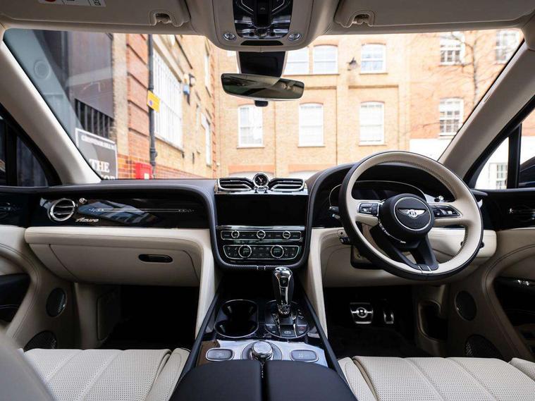 10.9" touch screen high resolution and configurable infotainment display and digital drivers information display, Advanced navigation function with text, search, 3D, satellite maps, speed limit, dynamic traffic route guide, telephone, Text-speech + voice, Bentley branded clock, Bentley GPS tracking system full fitment, Bentley safeguard plus, Blind spot assist, Bluetooth and WIFI enabled, Emergency services call system, Four drive dynamics modes (bentley, comfort, sport, custom), Front/rear park distance control, Hands free power tailgate, MMI Screen, My Bentley connected car services, Power latching to all doors for easy entry, Redesigned instrument panel lower trim rolls, incorporating a storage compartment on the passenger side, Seamlessly integrated technology with wireless apple car play and android auto, Speed sensitive variable ratio electric power steering, Touch screen remote, Traffic jam assist, Voice control system, Wireless phone charging compartment, Air suspension with continuous damping control, Bentley Dynamic ride with electronic all wheel steer, Permanent all wheel drive with centre torsen differential, DAB Digital radio, 3rd brake light, Adaptive low beam, Auto dimming rear view mirror, Automatic headlights, Azure exterior door badges, Azure fascia badge, Bentley badge in tailgate opening switch, Bentley lettering under the wings in tailgate, Black painted shark fin aerial, Body colour door mirrors, Body coloured lower bodywork - Standard paint range, Bright chromed matrix style grille to lower bumper apertures, Bumper design with large side intakes and sculptured surfaces, Contrast front and rear bumper apron, Elec/heat/adj/fold door mirror+memory, Electric tilt/slide panoramic sunroof, Fender design reduces over bodied perception, Fixed rear spoiler, Front and rear fog lamps, Full LED supplementary lamps and tail lamps, Full matrix LED headlamps with high beam assist, Full width clamshell design and deeply contoured rear tailgate panel, Heated rear windscreen, Illuminated treadplates, Jewel fuel and oil filler caps, Large dominant B shaped side wing vent front position, LED daytime running lights, Long fender vent above the power line on body side, Lower door side mouldings, Number plate aperture position under rear bumper, Oval split tailpipe, Phone antenna amplifier, Power close rear door, Rain sensing wipers, Rear side wing doors, Rear wiper, Roof rails, Trailer sway mitigation, Tunnel detection for auto light control, V8 exterior badge, Wet arm wipers and heated water jets, 12V power in rear centre console, 12V socket in glovebox, 12V socket in luggage compartment, 3 seat bench in 2nd row, 4-Zone HVAC, Air Ioniser, Azure seat emblems, Deep pile overmats to front and rear, Dinamica headlining and upper trim, Electric tilt and reach adjustment steering column with memory and easy entry function, Electronic accessory preparation, Embroidered Bentley emblems, Fluted seat design, Foams and cover design on all seats, Folding luggage compartment cover, Front and rear cupholders, Indented steering wheel, Interior mood lighting, Isofix attachments on outer rear seats, Key box, Load through facility, Lockable cooled glovebox, Luggage rails, Rear dual window switches, Rear seat climate control, Single front passenger seat, Sports pedals, Stowage with instrument panel, doors (front and rear), armrests and console, Twin front armrests, Two metal bulls eye vents with organ stops and redesigned centre vents, Two type C USB ports front and rear, Wing pockets for small items, Harmony diamond quilt specification pack - Bentayga, Touring specification pack - Bentayga, 3 rear seatbelts, ABS/EBD, Child safety lock, EDL, Electronic park brake with move-off assist, Electronic tyre pressure monitoring, ESP + MSR + ASR, Exit warning, Front and rear head airbags, Front and rear thorax airbag system, Front passenger airbag deactivation, Front seatbelt pretensioners with force limiters, Hill descent function, Hydraulic Brake Assist (HBA), Rear outer seatbelt pretensioners with force limiters, Rollover mitigation, Side airbags, Traction control, Immobiliser, Keyless entry, Keyless ignition, Preparation for vehicle tracking, Remote central locking, Volumetric anti theft alarm, Veneered centre fascia panel,