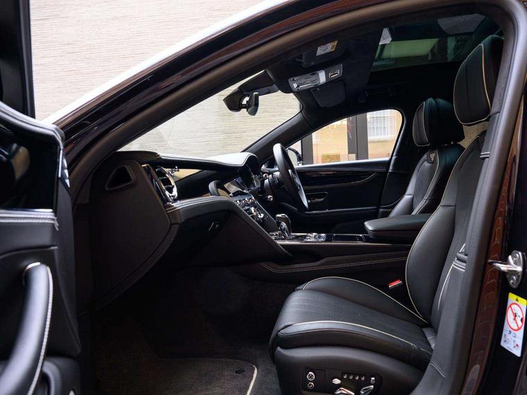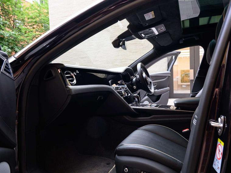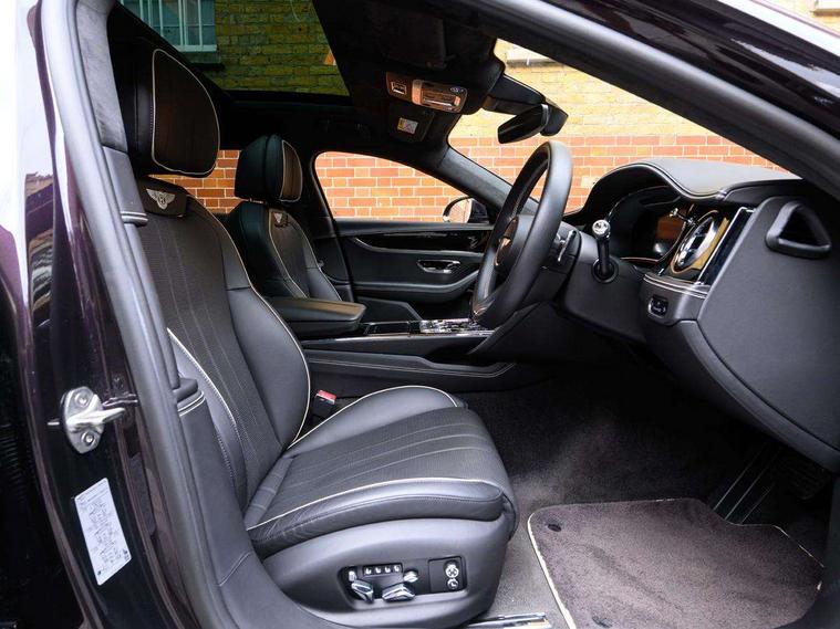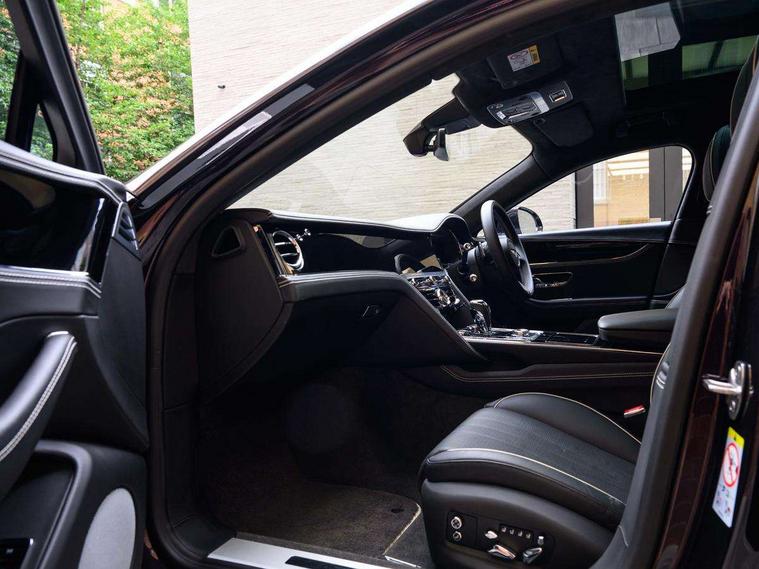 Apple car play, Bentley safeguard plus, Blind spot assist, Bluetooth telephone connectivity, Car computer, City assist, Continuous damping control, Engine start/stop button, Front/rear park distance control, Hands free boot opening, Infotainment system/satellite navigation, Power latching to all doors for easy entry, Rear cross traffic alert, Speed sensitive power steering, Telephone voice dialling, Top view camera, Anti roll bar front and rear, Battery charger, Wi-Fi hot spot, Acoustic glass, Adaptive brake lights, Auto dimming door mirrors, Body colour door mirrors, Elec/heat/adj/fold door mirror+memory, Electric front windows, Front fog lights, LED daytime running lights, Rain sensor windscreen wipers, Rear diffuser, Rear electric windows, 14 way Elec adj front seats/memory/lumbar control, Air Ioniser, Door lights, Easy entry/electrically adj steering column+memory, Electric rear window sunblinds, Footwell illumination, Front head restraints, Full hide trim upholstery, Illuminated centre console storage, Isofix attachments on rear seats, Multi-zone automatic climate control, Rear centre armrest with 2 cupholders + storage, Rear headrests, City specification pack - Flying Spur, Comfort specification pack - Flying spur, 3 point inertia reel seatbelts on outer rear seats, ABS/EBD, Driver/front passenger airbag, Drivers knee airbag, Electronic park brake with move-off assist, Electronic tyre pressure monitoring, ESP, Exit warning, Front and rear curtain airbags, Front and rear thorax airbag system, Front passenger airbag deactivation, HBA (Hydraulic Brake Assist), Motor Slip Regulation (MSR) - Engine Drag Torque Control, Traction control, Anti-theft wheel bolts, Bentley GPS advanced tracking system, Immobiliser, Keyless entry, Keyless ignition, Preparation for vehicle tracking, Remote central locking, Ultrasonic alarm, Tyre repair kit,