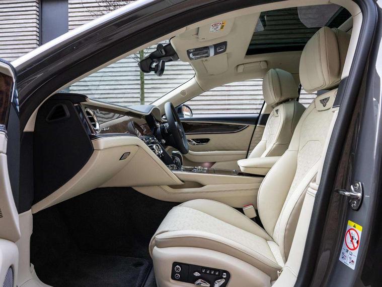 4G LTE telephone module, Adaptive cruise control, Apple car play, Blind spot assist, Bluetooth telephone connectivity, Car computer, City assist, Continuous damping control, Emergency services call system, Engine start/stop button, Front/rear park distance control, Hands free boot opening, Inductive phone charger, Infotainment system/satellite navigation, Power latching to all doors for easy entry, Prediction for adaptive cruise control, Rear cross traffic alert, Speed sensitive power steering, Telephone voice dialling, Top view camera, Traffic sign recognition, Anti roll bar front and rear, Battery charger, Dynamic ride with electronic All wheel steer, Digital TV tuner, Wi-Fi hot spot, 3rd brake light, Acoustic glass, Adaptive brake lights, Auto dimming door mirrors, Automatic headlamps, Bentley 'jewel' fuel filler cap, Body colour door mirrors, Body coloured bumpers, Elec/heat/adj/fold door mirror+memory, Electric front windows, Front fog lights, Full LED Matrix headlamps with high-beam assist, Hidden antennae, LED daytime running lights, LED welcome lamps, Rain sensor windscreen wipers, Rear boot, Rear diffuser, Rear electric windows, Rear side wing doors, 14 way Elec adj front seats/memory/lumbar control, 5 seats, Air Ioniser, Colour specification - Dinamica upholstery, Door lights, Easy entry/electrically adj steering column+memory, Electric rear window sunblinds, Footwell illumination, Front head restraints, Illuminated centre console storage, Isofix attachments on outer rear seats, Key box matched to colour split, Multi-zone automatic climate control - two zone, Parking heater, Rear centre armrest with 2 cupholders + storage, Rear headrests, Sports pedals, City specification pack - Flying Spur, Colour specification pack - Flying Spur, Comfort specification pack - Flying spur, Precision diamond quilting specification pack - Flying Spur, 3 point inertia reel seatbelts on outer rear seats, ABS/EBD, Child safety lock, Driver/front passenger airbag, Drivers knee airbag, Electronic park brake with move-off assist, Electronic tyre pressure monitoring, ESP, Exit warning, Front and rear curtain airbags, Front and rear thorax airbag system, Front passenger airbag deactivation, Hydraulic Brake Assist (HBA), Motor Slip Regulation (MSR) - Engine Drag Torque Control, Pedestrian warning, Traction control, Anti-theft wheel bolts, Bentley GPS advanced tracking system, Immobiliser, Keyless entry, Keyless ignition, Preparation for vehicle tracking, Remote central locking, Ultrasonic alarm, 5 year service plan, Tyre inflation kit,