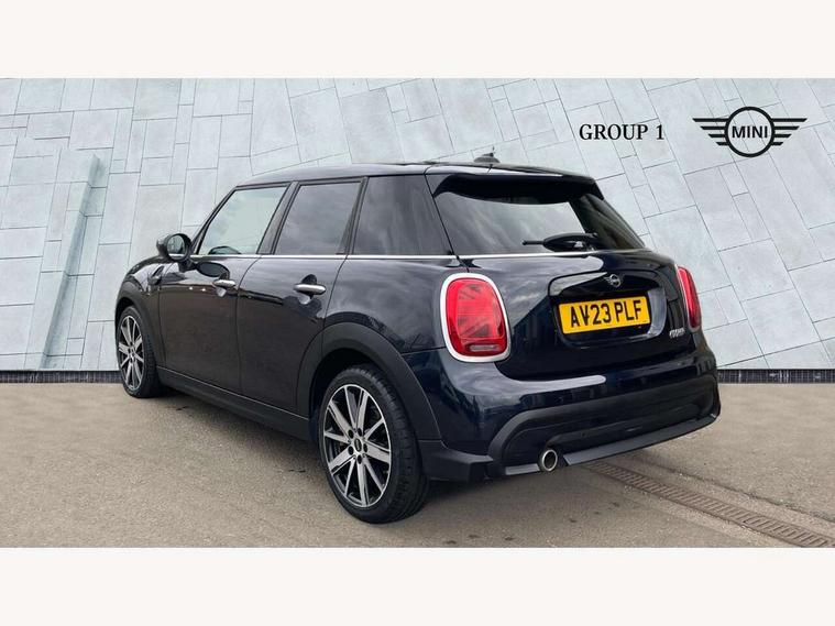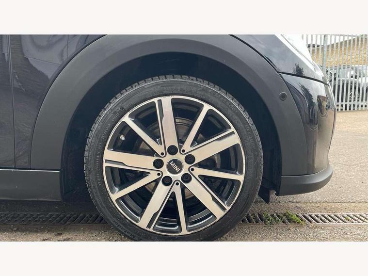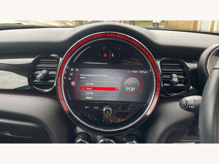 Apple CarPlay, Automatic start/stop function with brake energy recuperation, Compatible mobile phone bluetooth with audio streaming, Electro-mechanical speed dependant steering assistance, Flexible car sharing preparation, Mini E-call, MINI TeleServices, On board computer, Service interval indicator, Double Vanos system, Fully variable valve control, Gear change indicator display, High precision injection, Performance Control, Steptronic transmission with double clutch, 8.8" touchscreen with LED ring, FM tuner and DAB digital radio, 3rd brake light, Automatic headlight activation switch, Body colour fuel filler cap, Chrome border high gloss black slats radiator grille, Dynamic brake lights, Electric front+rear windows, Exhaust tailpipe on left with chrome finisher, Heated rear window, Heated windscreen washer jets, Metal door sill strips with MINI imprint, Model logo Cooper on right of tailgate, Rain sensor window wipers, Rear fog lights, Rear LED lights with union jack design, Rear side wing doors, Rear window wiper, Side scuttle panel with integrated indicator, Sun/heat protection glass, White indicator lenses, 12V Accessory socket in centre console, 3 seat bench in 2nd row, 4 lashing eyes in luggage compartment, 60/40 split folding rear seat, Ambient lighting, Carbon black colour line - Knee roll and door armrest, Chrome interior highlights, Cupholders, Front and rear head restraints, Front and rear isofix with front passenger airbag deactivation, Front and rear velour floor mats, Glove compartment, Height and length steering column adjustment, Interior lighting with 12 different colours across the dashboard, underneath door bezel with illuminated laser-engraved design on central display, Leatherette gearshift lever and handbrake gaiters, LED reading lights, vanity mirror lights, front foot well light and spotlight on front seats, Mechanical seat adjustment - forward/back & backrest for front seats and driver seat height adjust, Multifunction steering wheel, Satellite grey headlining including grab handles and clothes hooks, Single front passenger seat, Sport leather steering wheel with speed limiter and audio/communication controls, Storage compartments in doors, Sunvisors with vanity mirrors, 3 point seatbelts on all five seats, 6 Airbags - front, side, head and seat belt tensioners, Anti-lock braking system (ABS), Child locks on rear doors, DSC - Dynamic Stability Control, Front and rear disc brakes, Hill start assist, Single tone fanfare horn, Tyre pressure monitoring system, Alarm system with tilt sensor, monitoring doors, bonnet interior and tailgate, Electronic vehicle immobiliser, Start/stop toggle with keyless go, Piano black interior trim, Tool kit, Tyre repair kit,