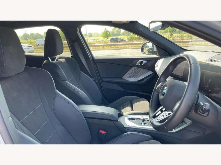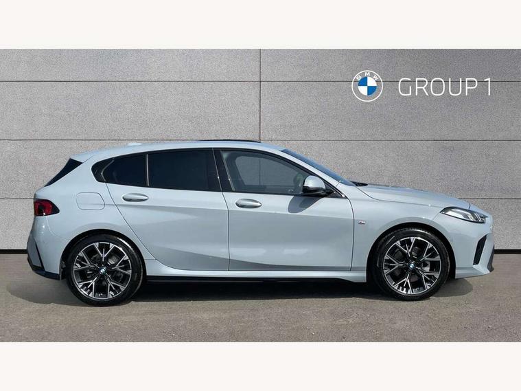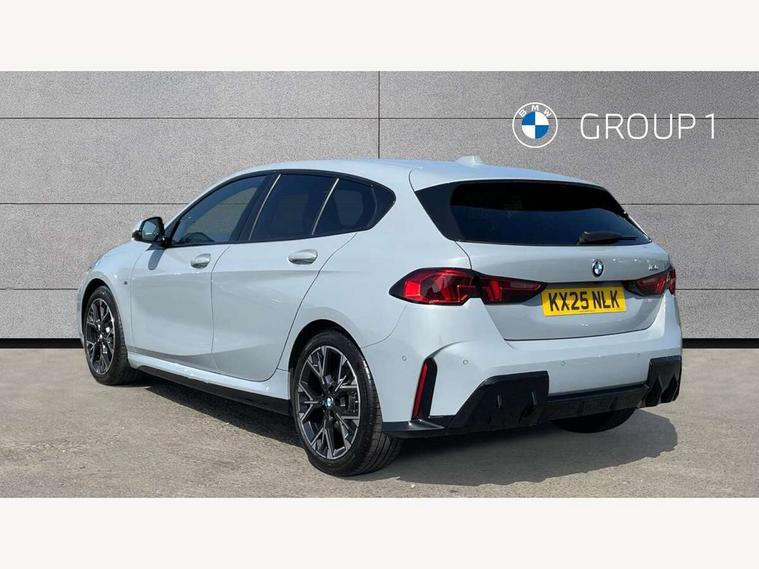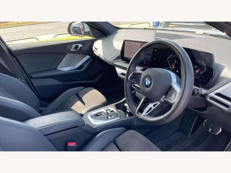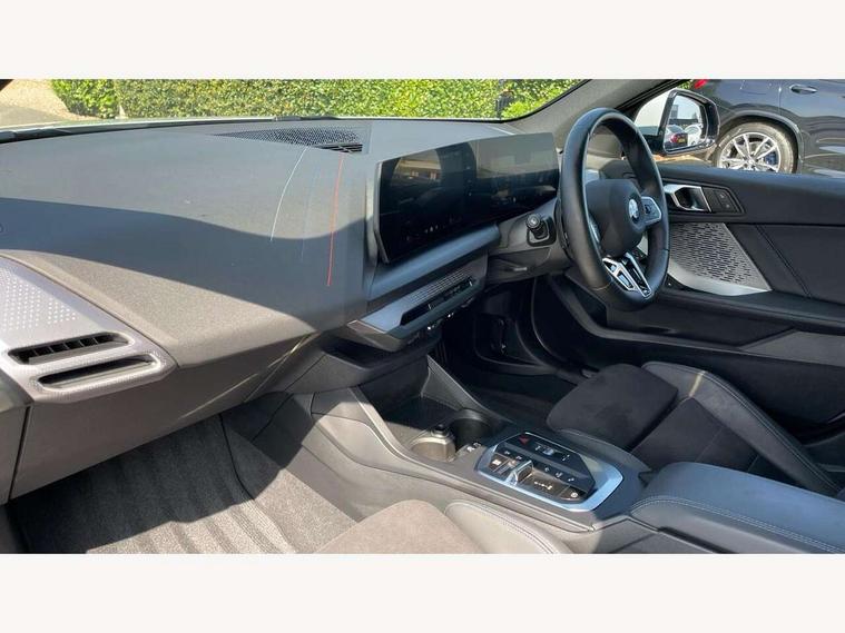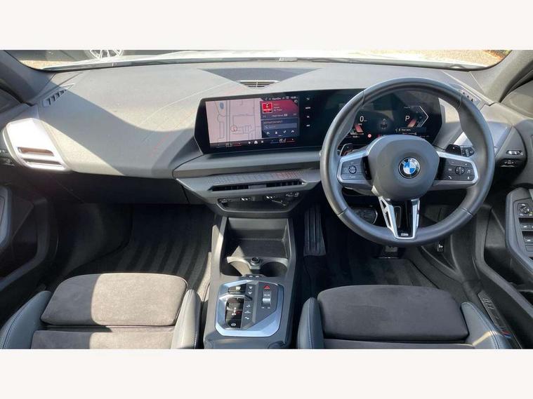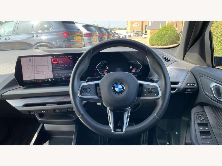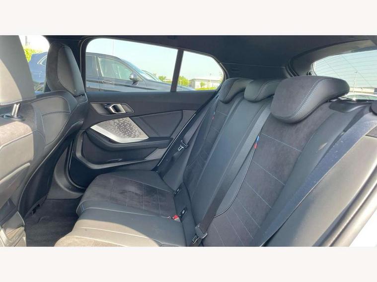 Active guard plus, Attentiveness assist, Bluetooth / WiFi interface for wireless connection of mobile terminal devices and audio streaming, BMW ConnectedDrive online services, BMW Live cockpit plus, BMW Teleservices, Check Control warning system for monitoring of lights and door/luggage compartment open warning, Eco pro mode, Electric power steering with Servotronic steering optimised at all speed ranges, Evasion assistant, Flat airvents in instrument panel with adjustable slats, Front and rear parking sensors, Front axle single joint with specific axle kinematics to minimise drive influences on steering + provide increased rigidity agile driving behaviour, Gearshift time display in manual mode, Integrated owners handbook, Left turn warning with brake function, My modes (Personal / Efficient / Sport), Oil sensor for level and grade, On board computer, Optimum shift indicator, Park assist including reversing assistant, lateral parking aid and reversing assist camera, Personal e-SIM, Personal Profile, Pull away assistant, Rigidly mounted rear subframe - Multi link construction with separate spring / damper configuration and excellent driving characteristics, Speed limit Info including no-overtaking indicator, Speed limiter, 49 litre fuel tank, Aluminium lightweight construction, Anti roll bar front and rear, Balancer shaft, Double VANOS twin scroll turbocharging system, Drive Performance Control, Electronic differential lock, Electronic selector lever, High precision injection, M Adaptive suspension, Petrol Particulate Filter, Steptronic transmission with double clutch, Twin tube gas filled shock absorbers with degressive characteristic curve, VALVETRONIC engine management, DAB Digital radio, Auto dimming rear view mirror, Automatic windscreen wipers and automatic headlight, Body colour door handles, Body colour mirror caps, Body colour roof trims, Chrome 'M' logo side designation, Chrome exhaust twin tailpipes round 90mm in left, Chrome kidney grille frame with Satin Aluminium struts, Direction indicator side lights in exterior mirrors, Electrically adjustable exterior mirror with mirror adjustment switch on drivers armrest and aspheric on driver side, convex on passenger side, Exterior M sport design elements, Fading support, Folding side mirrors with auto dimming/folding wing mirrors with auto dimming, Follow me home headlights, Front and rear bumper system with replaceable deformation elements, Front and rear electric windows with open and close fingertip control, anti trap facility and comfort closing, Front bumper panel with M specific design in vehicle colour with inserts in black high gloss, Front door sill finishers in black plastic with M designation in metallic look, Green tinted heat protection glazing, Heated rear window, High gloss black exterior mirrors, High gloss shadowline window frame, Recess cover mirror frames and B/C pillar embelisher trim, High level third brake light, Integrated front windscreen with washer jets, LED daytime running lights, LED eyebrow turn indicators, LED front fog lights, LED Headlights, Lightweight engineering, M identification on the sides, Matt black air guide grilles, Matt black wheel arch trim, Model badge on tailgate right, Nearside reverse light in rear light cluster, Preparation for high beam assistant, Rain sensor, Rear bumper panel with M-specific design in vehicle colour with inserts in black high gloss, Rear fog lights, Rear side wing doors, Rear window wiper, Shark fin antenna, Side sill covers with M specific design in body colour, Trailer stabilisation logic, Visible VIN plate, Welcome lighting, 12V power socket in front centre console with blanking plug, 3 rear seat head restraints, 3 seat bench in 2nd row, 3 spoke sports leather steering wheel with black leather and stitching, pearl chrome decorative finish, specific M Badge, Anthracite front and rear floor mats, Anthracite headlining, Black boot net with lashing eyes, Cargo function on 2nd seat row, Child seat ISOFIX attachment for two outer rear seats and front passenger seat with anchorage points, Conditioned based service, Driver and front passenger backrest net on rear, Driver and front passenger seat heating, Driver side folding compartment in instrument panel, Folding rear clothes hook, Footrest and pedals in black plastic, Four grab handles integrated in roof lining, Front and rear door pockets with bottle holders, Front and rear side armrest integrated into door trim, Front armrest with storage compartment, Gearshift paddles on steering wheel, Glove compartment, Height adjustable front head restraints, Luggage compartment for bag hooks on left and right, foldable luggage compartment liner and four lashing eyelets, Manual adjust steering wheel, Multi-function controls for steering wheel, Rear seat backrest with manual 60:40 split folding with 3 top tether clips integrated on rear of seat panels, Single front passenger seat, Storage compartment in centre console, Storage compartment in luggage compartment, Stowage of the parcel shelf in luggage compartment trim, Sun visors with vanity mirrors and insert tab, Two front centre console cupholders, Type C two USB ports in rear centre console, Upper retaining strap integrated into backrest rear panels, Connected pack professional - 1 Series, Interior lights pack - 1 Series, M Sport exterior styling aerodynamics pack - 1 Series, 2 tone horn, 3 point seatbelts on all seats, front pyrotechnic belt tensioners, stopper and belt force limiters, rear coded belt buckles, Airbags - Front driver/passenger, front and rear curtain head protection, front side, manual deactivation of front passenger airbag, Anti lock braking system (ABS) with brake assist, BMW emergency call, Brake drying, Braking readiness, Child proof locking system in rear door, Comfort modes, Cornering brake control, Crash sensor activating of airbags, Unlocking doors, hazard warning lights, interior light, safety battery terminal, Driver and front passenger seat belt sec
