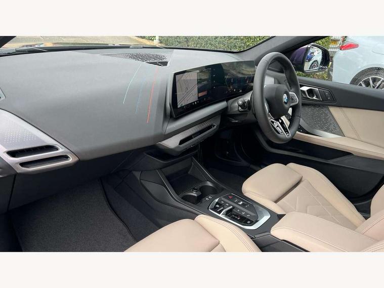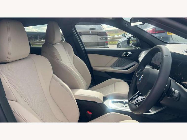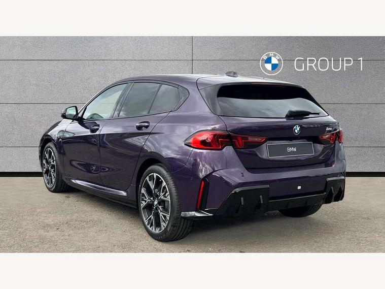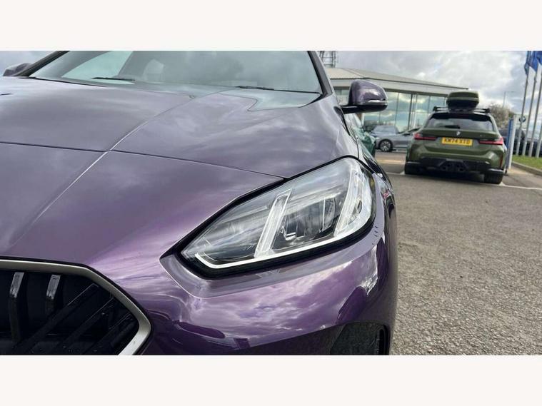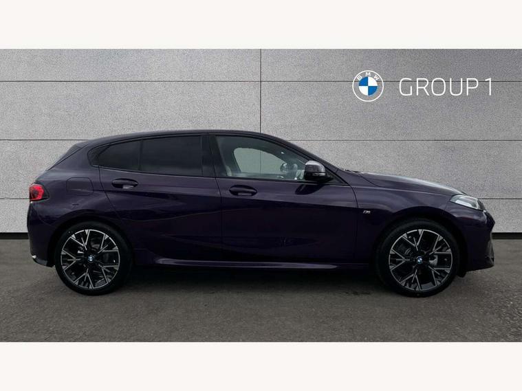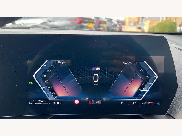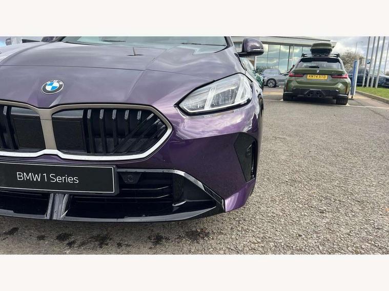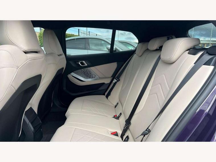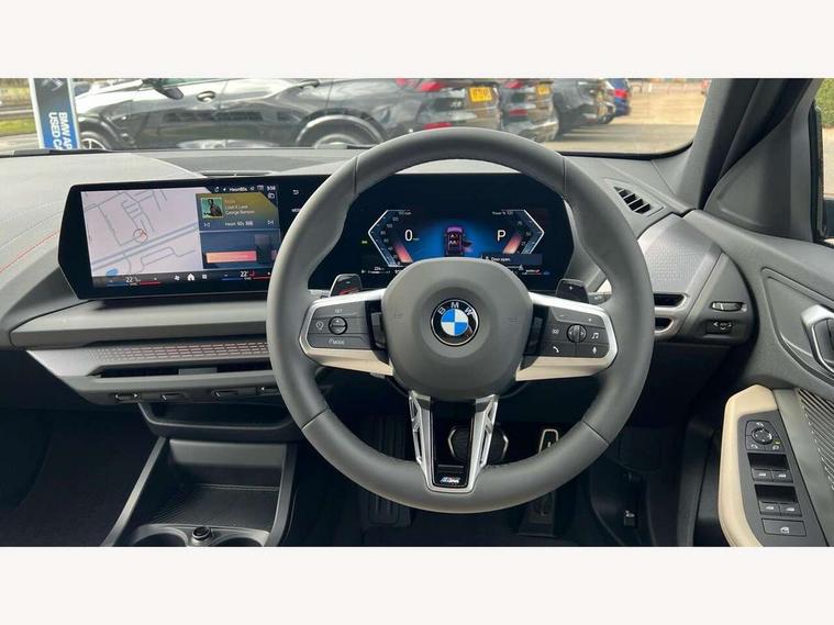 Active guard plus, Attentiveness assist, Bluetooth / WiFi interface for wireless connection of mobile terminal devices and audio streaming, BMW ConnectedDrive online services, BMW Live cockpit plus, BMW Teleservices, Check Control warning system for monitoring of lights and door/luggage compartment open warning, Eco pro mode, Electric power steering with Servotronic steering optimised at all speed ranges, Evasion assistant, Flat airvents in instrument panel with adjustable slats, Front and rear parking sensors, Front axle single joint with specific axle kinematics to minimise drive influences on steering + provide increased rigidity agile driving behaviour, Gearshift time display in manual mode, Integrated owners handbook, Left turn warning with brake function, My modes (Personal / Efficient / Sport), Oil sensor for level and grade, On board computer, Optimum shift indicator, Park assist including reversing assistant, lateral parking aid and reversing assist camera, Personal e-SIM, Personal Profile, Pull away assistant, Rigidly mounted rear subframe - Multi link construction with separate spring / damper configuration and excellent driving characteristics, Speed limit Info including no-overtaking indicator, Speed limiter, 49 litre fuel tank, Aluminium lightweight construction, Anti roll bar front and rear, Balancer shaft, Double VANOS twin scroll turbocharging system, Drive Performance Control, Electronic differential lock, Electronic selector lever, High precision injection, M Adaptive suspension, Petrol Particulate Filter, Steptronic transmission with double clutch, Twin tube gas filled shock absorbers with degressive characteristic curve, VALVETRONIC engine management, DAB Digital radio, Auto dimming rear view mirror, Automatic windscreen wipers and automatic headlight, Body colour door handles, Body colour mirror caps, Body colour roof trims, Chrome 'M' logo side designation, Chrome exhaust twin tailpipes round 90mm in left, Chrome kidney grille frame with Satin Aluminium struts, Direction indicator side lights in exterior mirrors, Electrically adjustable exterior mirror with mirror adjustment switch on drivers armrest and aspheric on driver side, convex on passenger side, Exterior M sport design elements, Fading support, Folding side mirrors with auto dimming/folding wing mirrors with auto dimming, Follow me home headlights, Front and rear bumper system with replaceable deformation elements, Front and rear electric windows with open and close fingertip control, anti trap facility and comfort closing, Front bumper panel with M specific design in vehicle colour with inserts in black high gloss, Front door sill finishers in black plastic with M designation in metallic look, Green tinted heat protection glazing, Heated rear window, High gloss black exterior mirrors, High gloss shadowline window frame, Recess cover mirror frames and B/C pillar embelisher trim, High level third brake light, Integrated front windscreen with washer jets, LED daytime running lights, LED eyebrow turn indicators, LED front fog lights, LED Headlights, Lightweight engineering, M identification on the sides, Matt black air guide grilles, Matt black wheel arch trim, Model badge on tailgate right, Nearside reverse light in rear light cluster, Preparation for high beam assistant, Rain sensor, Rear bumper panel with M-specific design in vehicle colour with inserts in black high gloss, Rear fog lights, Rear side wing doors, Rear window wiper, Shark fin antenna, Side sill covers with M specific design in body colour, Trailer stabilisation logic, Visible VIN plate, Welcome lighting, 12V power socket in front centre console with blanking plug, 3 rear seat head restraints, 3 seat bench in 2nd row, 3 spoke sports leather steering wheel with black leather and stitching, pearl chrome decorative finish, specific M Badge, Anthracite front and rear floor mats, Anthracite headlining, Black boot net with lashing eyes, Cargo function on 2nd seat row, Child seat ISOFIX attachment for two outer rear seats and front passenger seat with anchorage points, Conditioned based service, Driver and front passenger backrest net on rear, Driver and front passenger seat heating, Driver side folding compartment in instrument panel, Folding rear clothes hook, Footrest and pedals in black plastic, Four grab handles integrated in roof lining, Front and rear door pockets with bottle holders, Front and rear side armrest integrated into door trim, Front armrest with storage compartment, Gearshift paddles on steering wheel, Glove compartment, Height adjustable front head restraints, Luggage compartment for bag hooks on left and right, foldable luggage compartment liner and four lashing eyelets, Manual adjust steering wheel, Multi-function controls for steering wheel, Rear seat backrest with manual 60:40 split folding with 3 top tether clips integrated on rear of seat panels, Single front passenger seat, Storage compartment in centre console, Storage compartment in luggage compartment, Stowage of the parcel shelf in luggage compartment trim, Sun visors with vanity mirrors and insert tab, Two front centre console cupholders, Type C two USB ports in rear centre console, Upper retaining strap integrated into backrest rear panels, Connected pack professional - 1 Series, Interior lights pack - 1 Series, M Sport exterior styling aerodynamics pack - 1 Series, 2 tone horn, 3 point seatbelts on all seats, front pyrotechnic belt tensioners, stopper and belt force limiters, rear coded belt buckles, Airbags - Front driver/passenger, front and rear curtain head protection, front side, manual deactivation of front passenger airbag, Anti lock braking system (ABS) with brake assist, BMW emergency call, Brake drying, Braking readiness, Child proof locking system in rear door, Comfort modes, Cornering brake control, Crash sensor activating of airbags, Unlocking doors, hazard warning lights, interior light, safety battery terminal, Driver and front passenger seat belt sec