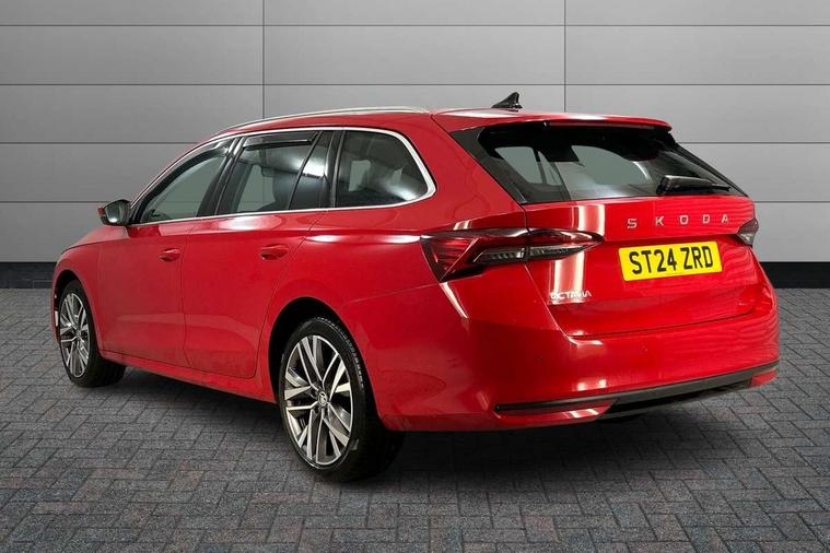 1x USB Typc C port in rear view mirror, 4x USB Type C ports - 2x in front centre console and 2x in rear (45W), Drive mode selection, Driver fatigue sensor, eCall emergency system, Electro-mechanical power steering, Front and rear parking sensors with manoeuvre assist, Front assist system, Traffic jam assist, Traffic sign recognition, Turn Assist, Virtual Cockpit - 10.25" digital display, Voice control system, Wireless charging (15W) with cooling function, Wireless SmartLink for Apple CarPlay and Android Auto, 13" touchscreen display with navigation, DAB Digital radio, Aero front windscreen wipers with intermittent function, Auto dimming rear view mirror, Body colour bumpers, Body colour door mirrors and handles, Chrome grille surround, Chrome roof rails, Chrome strip in lower front bumper, Chrome window surrounds, Electric front and rear windows, Heated rear windscreen, High level third brake light, Ice scraper in fuel cap, LED daytime running lights, LED Headlights, Logo projection in front doors, Rain and light sensors, Rear fog light on one side, Rear privacy glass, Rear side wing doors, Rear spoiler, Rear window wiper, 12 volt socket in boot, 3 rear headrests, 3 seat bench in 2nd row, 4 foldable roof handles, Front head restraints, Heated front seats, Illuminated glovebox, Interior door handles in dark chrome, Jumbo Box storage, Luggage compartment lighting x2 lights, Mechanical rear seat release from boot, Rear seat sleep headrests + blanket, Single front passenger seat, Steering wheel in black leather with black stitching, Storage compartments in left and right of boot, Sun visors with mirrors, Sunglasses storage, Ticket holder, Umbrella in door panel, Unsplit rear bench seat, split folding backrest with centre armrest with cupholder, Comfort package - Octavia Estate, Simply clever package premium - Octavia, 3x3 point rear seat belts, Alarm with interior monitoring, tilt sensor and back up horn, Curtain airbags and front side airbags, Driver and front passenger airbags, Drivers knee airbag, Electronic parking brake, ESC including ABS, EBV, MSR, ASR, EDS, HBA, DSR, Front central airbag, Hill hold assist, ISOFIX on front passenger seat and outer rear seats, Passenger airbag deactivate switch, Three point seat belts in front and rear, Two tone horn, Tyre pressure monitor, Visual and acoustic seat belt reminder, Warning reflectors in front door, Anti-theft wheel bolts, Keyless start/stop, Remote central locking, Chrome air vent surrounds,