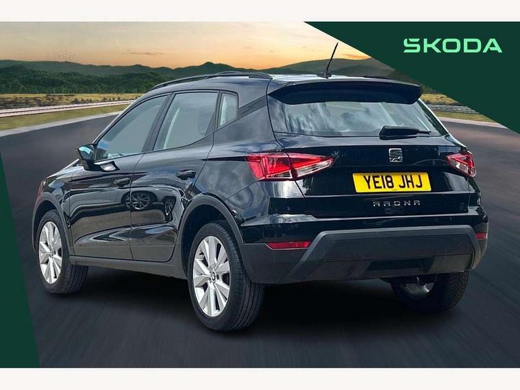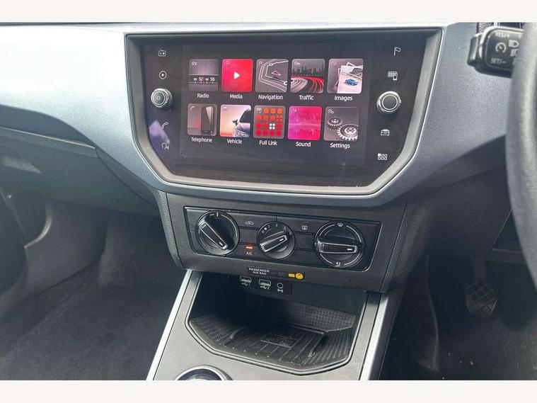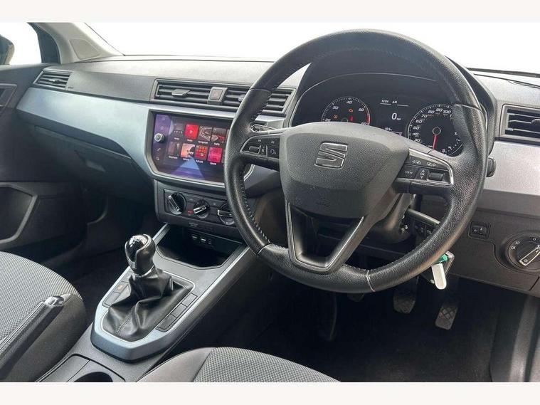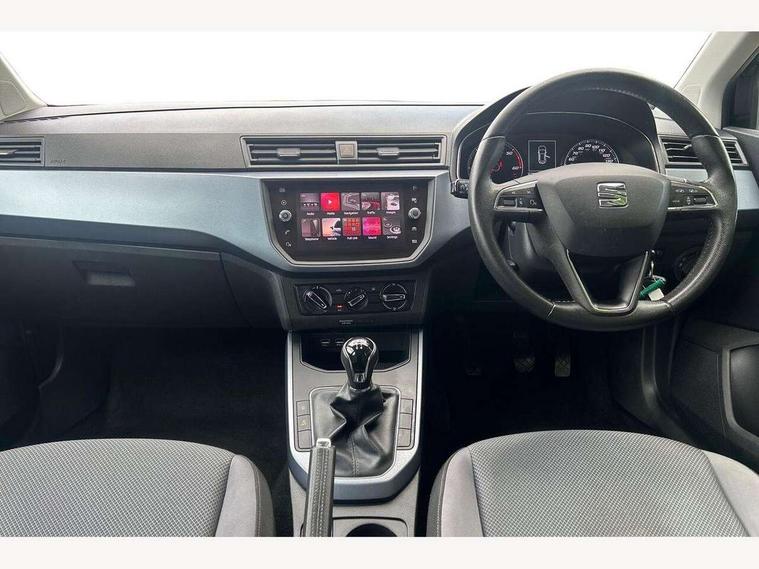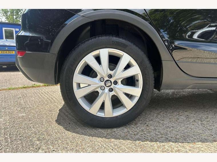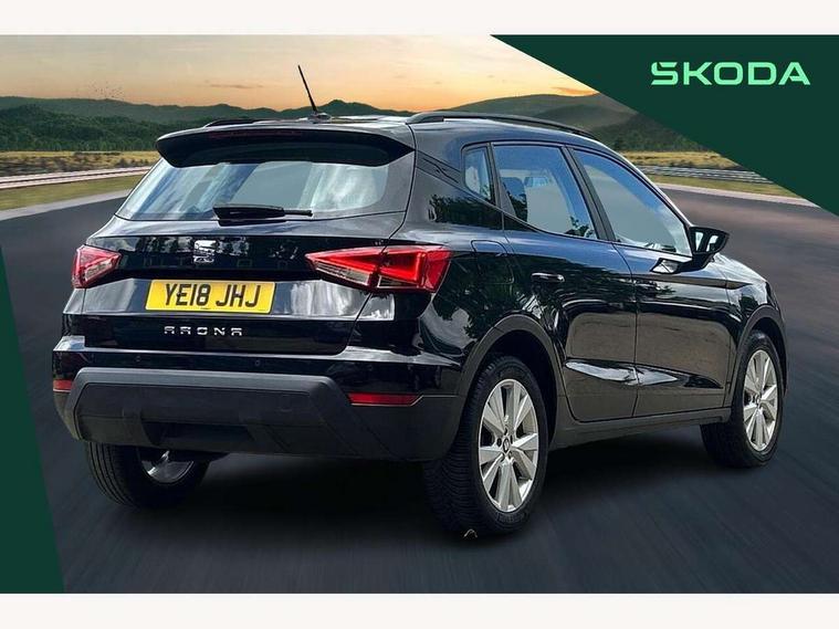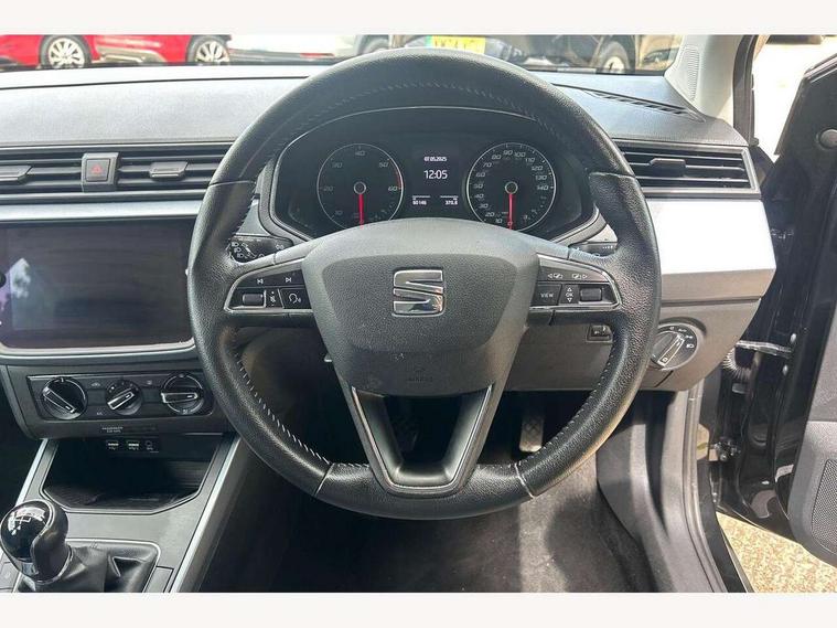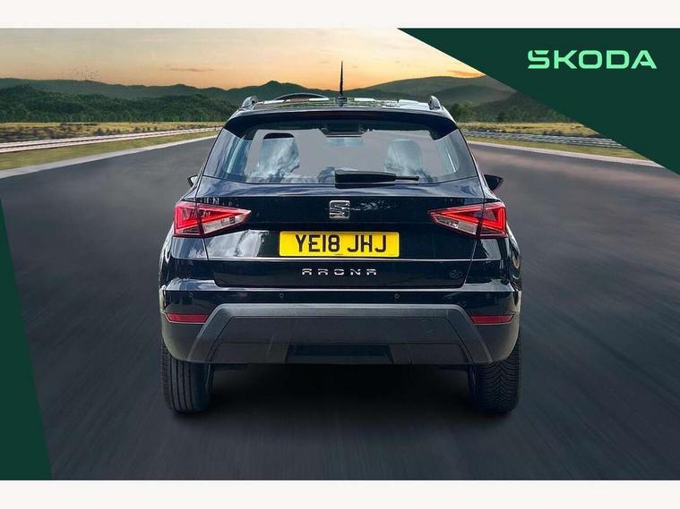 'Lights On' Reminder warning buzzer, Cruise control, Electric speed sensitive power steering, Front assistant collision mitigation, Outside temperature display, Rear parking sensor, Trip computer, Comfort suspension, 6 speakers, Bluetooth interface for hands free and audio streaming, DAB Digital radio, Steering wheel mounted audio controls, Automatic activation of hazard warning lights, Automatic headlights, Black roof rails, Black window surrounds, Body coloured bumpers, Body coloured door handle inserts, Chrome grille surround, Electric adjustable door mirrors, Electric front/rear windows with one touch/auto up/down, Electric headlight adjustment, Front fog lights with static cornering function, LED daytime running lights, Rear window wash/wipe, 2 cupholders, 3 rear height adjustable headrests, 60/40 split folding rear seat, Air conditioning, Ambient interior lighting, Cloth upholstery, Double boot floor, Driver and passenger sunvisors, Driver/front passenger seat height adjustment, Dust/pollen filter, Footwell ambient lighting, Front courtesy lights, Front reading light, Height/reach adjustable steering column, Illuminated boot, Isofix attachments on outer rear seats, Leather handbrake, Leather steering wheel and gear knob, Connectivity pack plus - Arona, 3 point seatbelts on all rear seats, ABS+EBA, Child locks on rear doors, Driver/Front Passenger airbags, Electronic stability control, Front and rear seatbelt reminder, Front side/curtain airbags, Height adjustable active front headrests, Hill hold control + Tyre Pressure monitor, Multi-Collision braking, Passenger airbag deactivate switch, Tiredness recognition system, Traction control, 2 folding remote keys with window open/close function, Immobiliser, Locking wheel bolts, Remote central locking + deadlocks, Interior chrome line trim, 17" Dynamic alloy wheels,