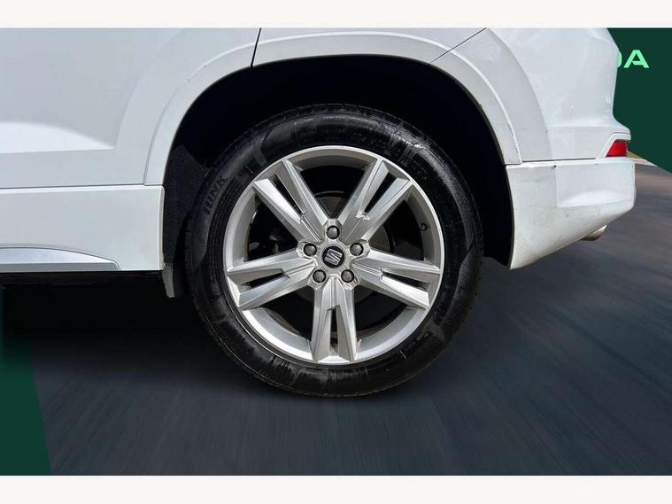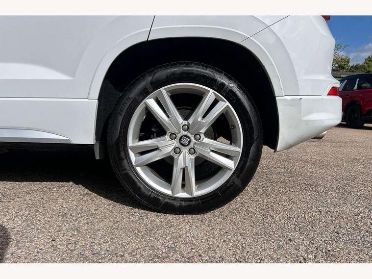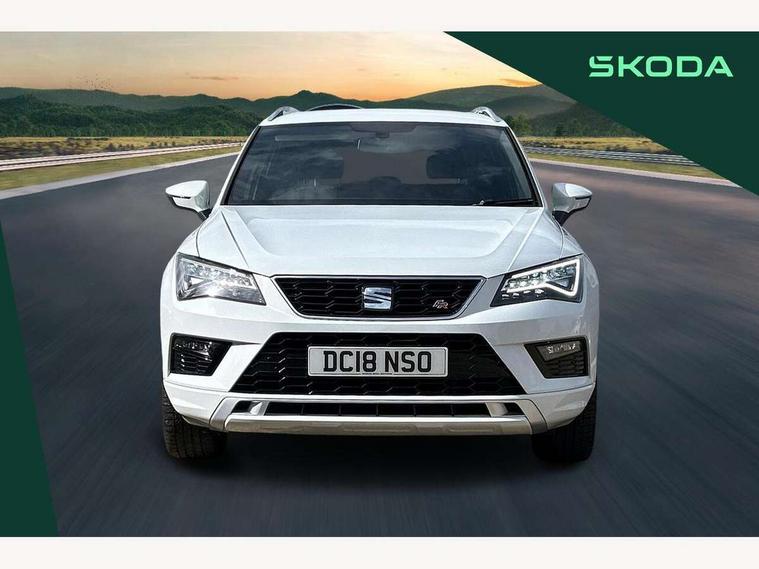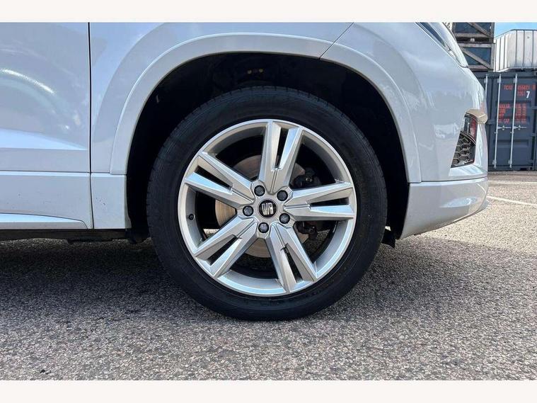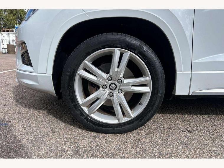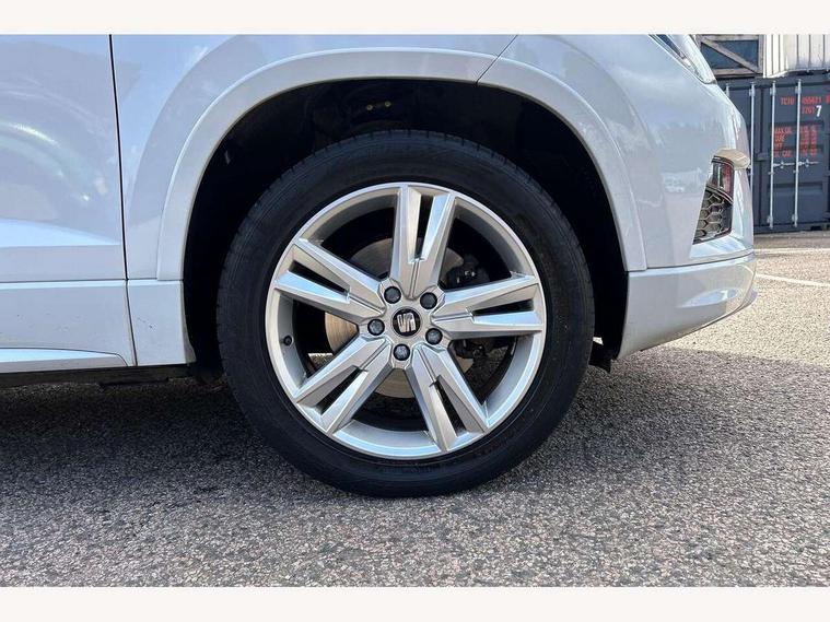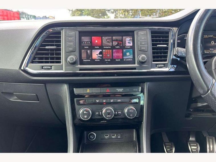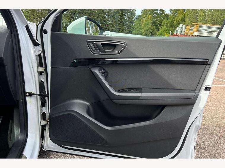 'Lights On' Reminder warning buzzer, Apple car play/Android Auto, Driver alert system, Low fuel warning light, Multi function display, Outside temperature gauge, Progressive power assisted steering, Rear parking sensor, Rear view camera, Remote fuel flap release, SEAT Drive profile, SEAT logo boot release, Trip computer, Comfort suspension, XDS electronic differential lock, 2 USB sockets in rear, Mirror link app interface, Steering wheel mounted audio/phone controls, Aluminium front door sills, Aluminium roof rails, Automatic headlights, Body colour bumpers, Body colour door handles, Body colour door mirrors, Body coloured wheel arches, Chrome side window trim, Chromed centre radiator grille surround, Dark tinted rear windows, Electric folding door mirrors, Electrically adjustable and heated door mirrors, Front and rear electric windows, High gloss black grille, LED daytime running lights, LED front fog lights with static cornering light function, LED Headlights, LED tail lights, Rear wash/wipe, Twin chromed exhaust pipes, Welcome lighting, 12V power point front, 3 height adjustable rear headrests, 4 Lashing eyes in boot, 60/40 split folding rear seat, Active head restraints, Adjustable front armrest with storage compartment, Advanced multicolour ambient light with LED interior light and LED illuminated glovebox, Aluminium pedals, Black roof lining, Card holder, Driver seat lumbar adjustment, Driver/passenger lumbar adjustment, Driver/passenger sunvisors with illuminated vanity mirrors, Dual zone climate control, Footwell illumination, Front cupholders x 2, Front reading lights, Front seat back storage pockets, Height adjustable front headrests, Height adjustable passenger seat, Illuminated boot, Isofix child seat preparation, Leather steering wheel and gear knob, Rear armrest, Rear central air outlet, Rear reading lights, Sports seats, Seat Media System Plus pack - Ateca, 3x3 point rear seatbelts, ABS, Auto hold function, Automatic post collision braking, Curtain airbags, Driver/Front Passenger airbags, Drivers knee airbag, Electronic parking brake, ESP+EBA, Front and rear seatbelt reminder, Front assist including city emergency braking, Front passenger airbag deactivation, Front side airbags, Hill hold control, Predictive pedestrian protection, Tiredness recognition system, Traction control, Tyre pressure monitoring system, 2 folding remote keys with window open/close function, Immobiliser, Locking wheel bolts, Remote central locking, Volumetric alarm with back up horn, Chrome effect dashboard facia,