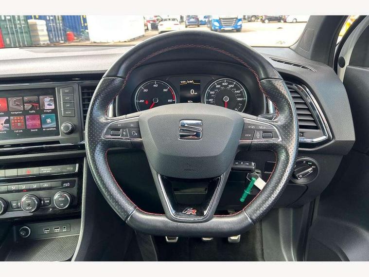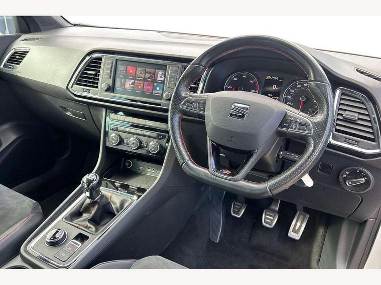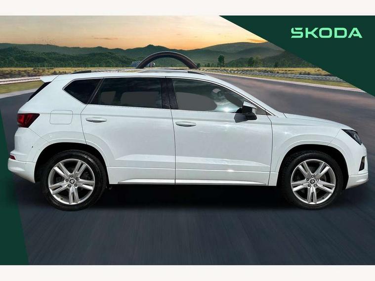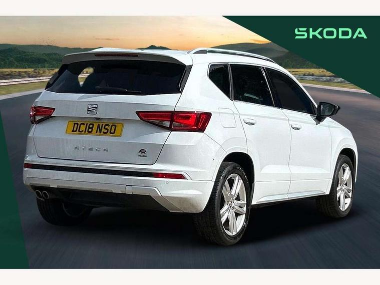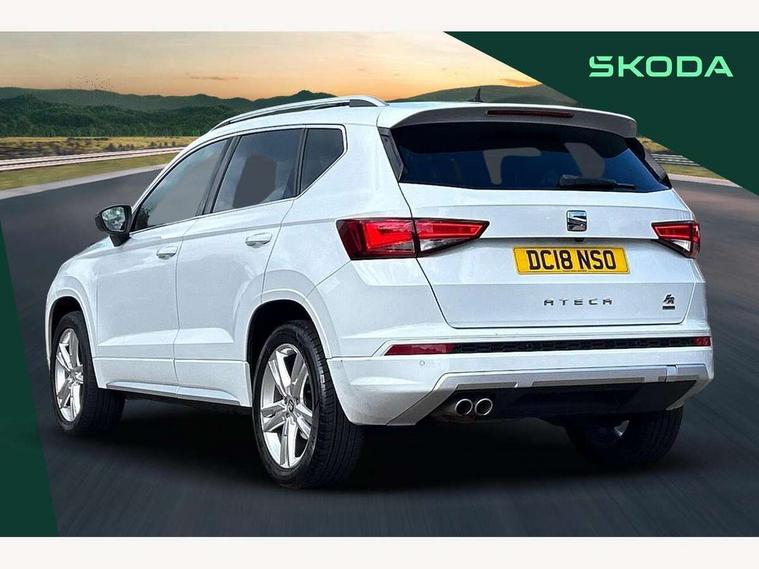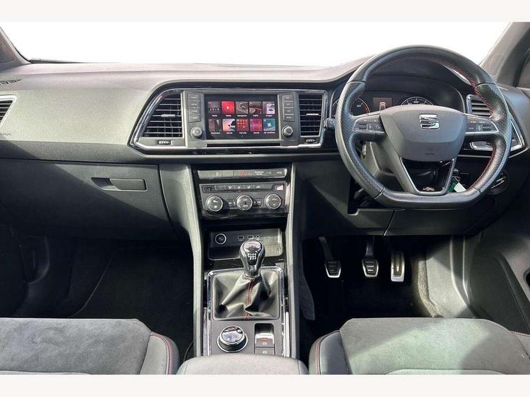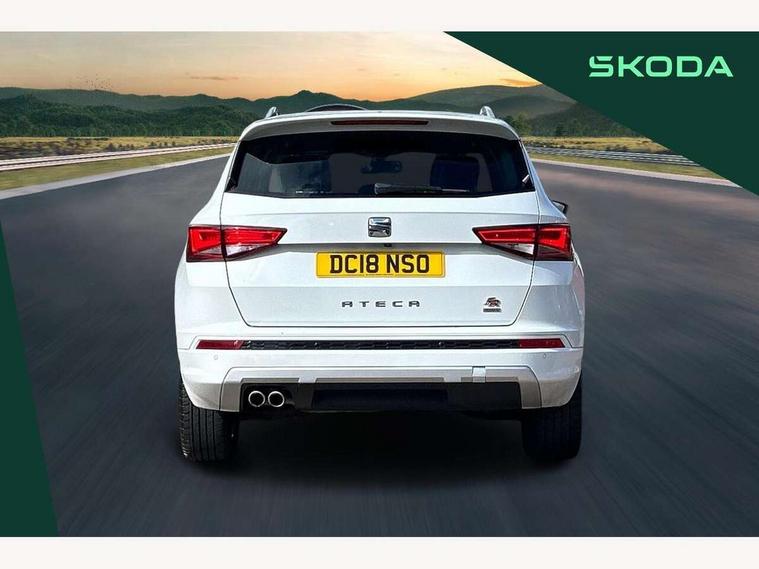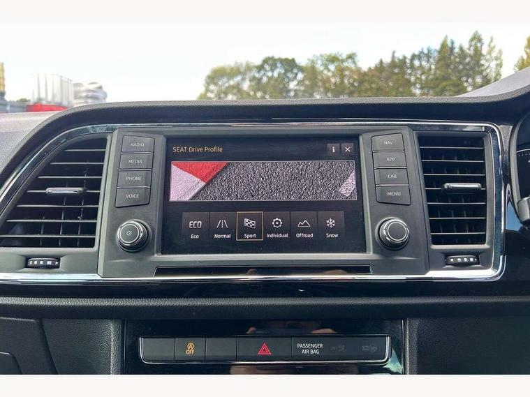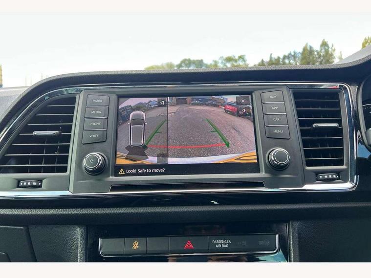 'Lights On' Reminder warning buzzer, Apple car play/Android Auto, Driver alert system, Low fuel warning light, Multi function display, Outside temperature gauge, Progressive power assisted steering, Rear parking sensor, Rear view camera, Remote fuel flap release, SEAT Drive profile, SEAT logo boot release, Trip computer, Comfort suspension, XDS electronic differential lock, 2 USB sockets in rear, Mirror link app interface, Steering wheel mounted audio/phone controls, Aluminium front door sills, Aluminium roof rails, Automatic headlights, Body colour bumpers, Body colour door handles, Body colour door mirrors, Body coloured wheel arches, Chrome side window trim, Chromed centre radiator grille surround, Dark tinted rear windows, Electric folding door mirrors, Electrically adjustable and heated door mirrors, Front and rear electric windows, High gloss black grille, LED daytime running lights, LED front fog lights with static cornering light function, LED Headlights, LED tail lights, Rear wash/wipe, Twin chromed exhaust pipes, Welcome lighting, 12V power point front, 3 height adjustable rear headrests, 4 Lashing eyes in boot, 60/40 split folding rear seat, Active head restraints, Adjustable front armrest with storage compartment, Advanced multicolour ambient light with LED interior light and LED illuminated glovebox, Aluminium pedals, Black roof lining, Card holder, Driver seat lumbar adjustment, Driver/passenger lumbar adjustment, Driver/passenger sunvisors with illuminated vanity mirrors, Dual zone climate control, Footwell illumination, Front cupholders x 2, Front reading lights, Front seat back storage pockets, Height adjustable front headrests, Height adjustable passenger seat, Illuminated boot, Isofix child seat preparation, Leather steering wheel and gear knob, Rear armrest, Rear central air outlet, Rear reading lights, Sports seats, Seat Media System Plus pack - Ateca, 3x3 point rear seatbelts, ABS, Auto hold function, Automatic post collision braking, Curtain airbags, Driver/Front Passenger airbags, Drivers knee airbag, Electronic parking brake, ESP+EBA, Front and rear seatbelt reminder, Front assist including city emergency braking, Front passenger airbag deactivation, Front side airbags, Hill hold control, Predictive pedestrian protection, Tiredness recognition system, Traction control, Tyre pressure monitoring system, 2 folding remote keys with window open/close function, Immobiliser, Locking wheel bolts, Remote central locking, Volumetric alarm with back up horn, Chrome effect dashboard facia,