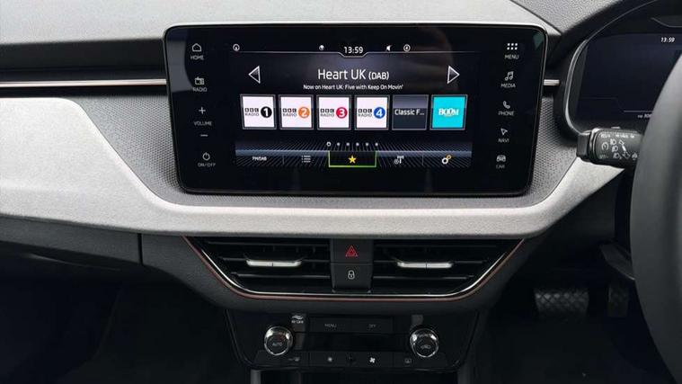 Advanced driver attention and drowsiness monitor, Bluetooth, e-Call (emergency call), Front assist system, PAS, Rear parking sensors, Speed limiter, Tailgate, Traffic sign recognition, Virtual Cockpit - 10.25" digital display, Voice control system, Wireless smartlink, 4 USB C ports, 8 Speakers, 9.2" Skoda navigation display, DAB radio, Auto dimming rear view mirror, Automatic headlamp activation with Coming home and Leaving home feature, Automatic high/low beam, Automatic intermittent wipers, Body colour bumpers, Body colour door mirrors and handles, Chrome moulding around grille, Chrome window frames, Front and rear electric windows, Heated rear window, LED 3rd brake light, LED brake lights, LED daytime running lights, LED front turning lights, LED high beam, LED low beam, Light sensors, Privacy glass, Rear LED fog light, Rear side wing doors, Rear wiper, Tinted windows, 12V socket in luggage compartment, 3 seat bench in 2nd row, Ambient lighting in white/red, Black / Copper armrest stitching, Cargo elements, Chrome inner door handles, Copper hotstamping, Door inserts in accent black, Driver and passenger sun visors with vanity mirror, Dual zone climate control, Front and rear roof lights, Front centre armrest, Front head restraints, Glasses storage in roof liner, Height adjustable driver seat, Height adjustable passenger seat, Ice scraper, Illuminated glove compartment, Inner circulation control with pollen filter, ISOFIX for front passenger seat, Isofix preparation for back seats, Leather gearknob and handbrake lever, Lodge cloth upholstery, Luggage net under rear parcel shelf, Manual lumbar support for front seats, Net package and top tether hooks in boot space, Pearl grey ceiling, Pocket on the back of both front seats, incl. mobile phone pockets, Rear centre armrest, Single front passenger seat, Textile floor mats, Third rear headrest, Ticket holder, Top tether for front passenger seat, Umbrella in driver's door, 3x3 point rear seatbelts, ABS, Child locks, Curtain airbags and front side airbags, Disc brakes, Driver and front passenger airbags, ESP, Hill hold control, Manual leather parking brake, One tone horn, Passenger airbag switch off function, Seatbelt reminder for driver and front passenger, Tyre pressure monitoring system, Anti theft alarm system with interior monitoring, backup horn and towing protection, Anti-theft wheel bolts, Remote central locking with 2 remote folding keys, SAFE function for remote central locking, Decorative inserts,
