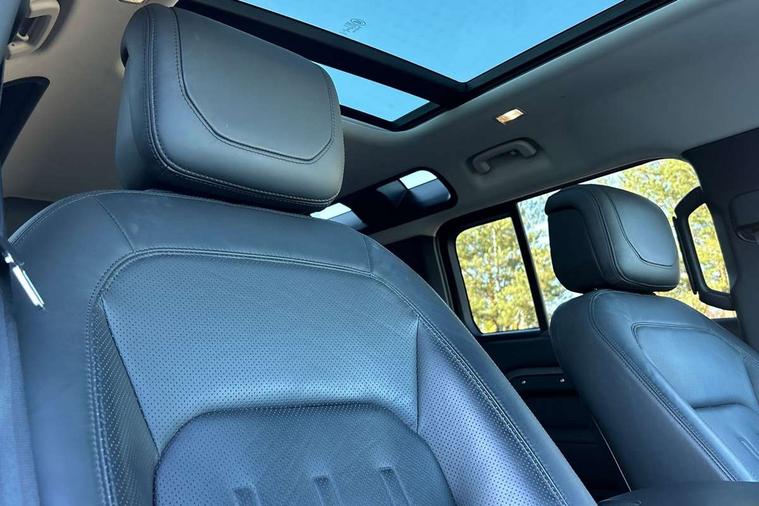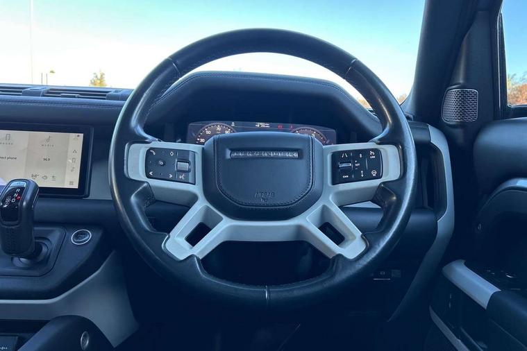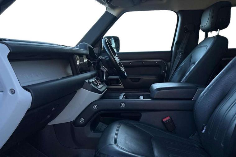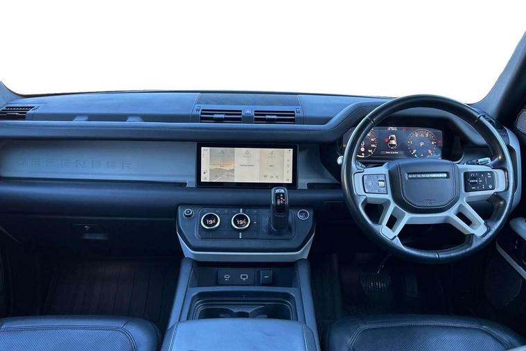 10" touch screen, 360 degree parking aid, 3D Surround Camera with 360 View, 180 Rear View, Front Traffic Detection, Forward Vehicle Guidance, Tow Hitch Assist and clear sight Ground View, Adaptive cruise control, Android Auto, Apple CarPlay, Blind spot assist, Bluetooth system, Clear exit monitor, Click and go integrated base unit, Connected navigation pro, Driver condition monitor, Interactive driver display, Lane keep assist, PAS, Pivi Pro connected navigation system with upgraded Infotainment, Rear collision monitor, Rear traffic monitor, Traffic sign recognition with adaptive speed limiter, Trip computer, Wade Sensing, Adaptive dynamics, Electronic air suspension, DAB Radio (Digital Audio Broadcasting), Automatic headlight levelling, Automatic headlights, ClearSight interior rear view mirror, Front fog lights, Heated windscreen, LED tail lights, Matrix LED headlights with signature DRL, Power fold, auto-dimming, heated door mirrors with memory and approach lights, Puddle lights, Rain sensing windscreen wipers, Signature graphic (with interior storage), Sliding panoramic roof, Standard treadplates, 14 way heated and cooled electric adjustable memory front seats with 4 way manual headrests, Air quality sensor, Cabin air ionisation, Carpet mats, Electric reach + rake adjustable steering column, Extended leather upgrade, Front passenger isofix child seat attachment, Heated steering wheel, Leather gearshift, Leather steering wheel, Loadspace cover, Morzine headlining, Multifunction steering wheel, Rear headrests, Rear ISOFIX, Sunvisors with illuminated vanity mirrors, Three-zone Climate Control with Rear Cooling Assist, Twin front cupholders with cover, Windsor leather upholstery, Online pack with data plan - Defender, 7 three point seatbelts, ABS, Driver and passenger airbags, Emergency braking, ESP + traction control, TPMS (Tyre pressure monitoring system), Alarm, Immobiliser, Intrusion sensor, Keyless entry and go, Locking wheel nuts, Remote locking,