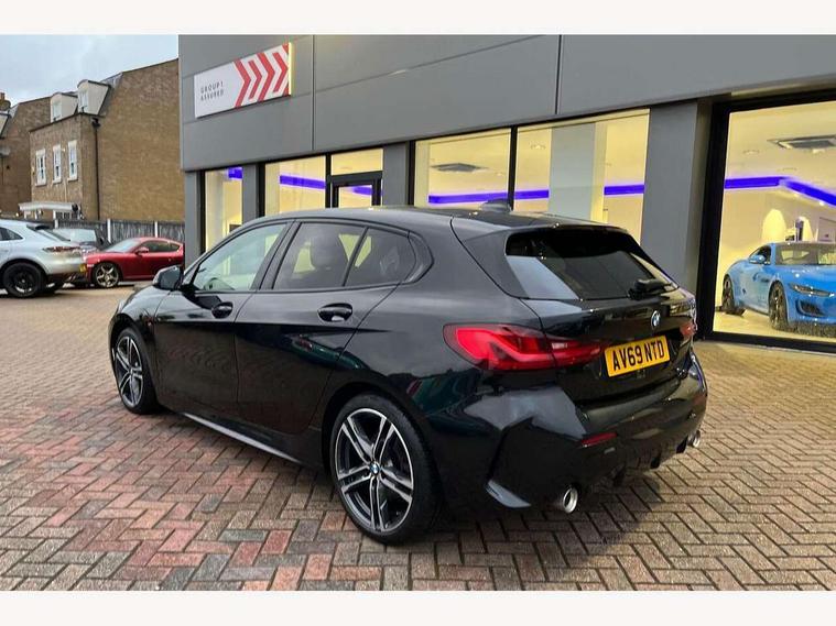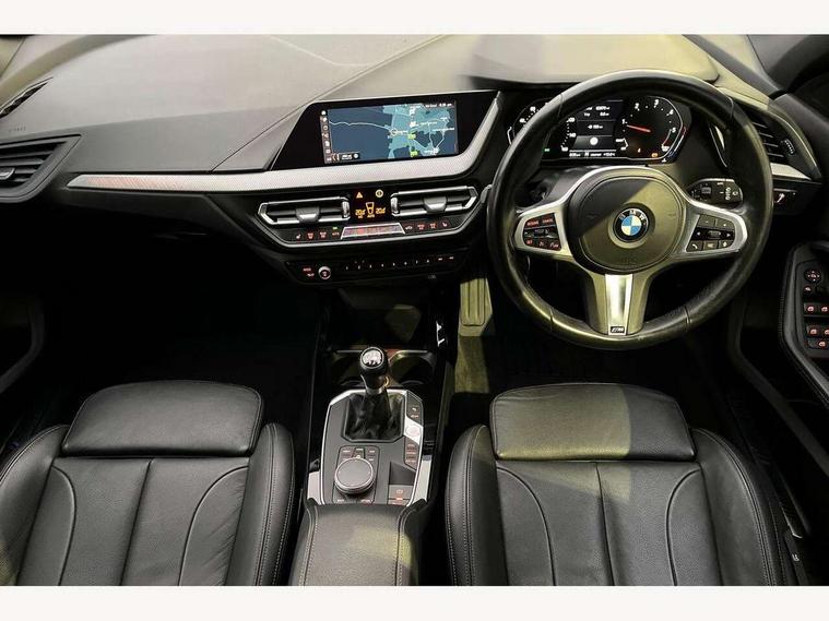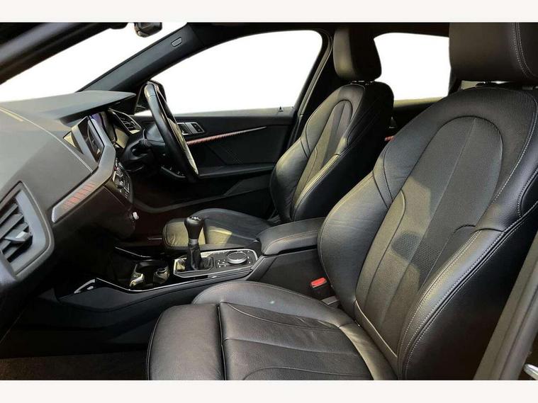 Active guard plus, Attentiveness assist, BMW Online services, BMW Teleservices, Check Control warning system for monitoring of lights and door/luggage compartment open warning, Connected eDrive Services, Cruise control with brake assist, Eco pro mode, Electric power steering, Integrated owners handbook, Lane departure warning system, On board computer, Optimum shift indicator, Personal Profile, Pull away assistant, Speed limiter, Anti roll bar front and rear, Balancer shaft, Diesel particulate filter, Drive Performance Control, Electronic differential lock, Bluetooth audio streaming, DAB Digital radio, Auto dimming rear view mirror, Body colour door handles, Body colour mirror caps, Chrome 'M' logo side designation, Chrome exhaust tailpipe in single, round (Exhaust tailpipe, stainless steel - single, round), Chrome kidney grille frame with Satin Aluminium struts, Direction indicator side lights in exterior mirrors, Electric folding and anti dazzle exterior mirrors, Fading support, Follow me home headlights, Front and rear electric windows with open and close fingertip control, anti trap facility and comfort closing, Front door sill finishers in black plastic with BMW designation, Green tinted heat protection glazing, Headlight beam throw control, High gloss shadow line exterior trim, High level third brake light, LED daytime running lights, LED front fog lights, Lightweight engineering, Matt black air guide grilles, Matt black roof moulding, B pillar finisher and wheel arch trim, Matt black window frame, Model designation on right side of tailgate, Nearside reverse light in rear light cluster, Rain sensor including auto headlights activation, Rear fog lights, Rear window wiper, Shark fin antenna, Visible VIN plate, Welcome lighting, Windscreen wipers with integrated washing jets, 12V power socket in centre console, 2 cupholders in front centre console, 3 rear seat head restraints, 3 spoke M sports design leather steering wheel finished in nappa leather with specific M badge, Anthracite headlining, Anthracite Velour floor mats, Child seat ISOFIX attachment for two outer rear seats and front passenger seat with anchorage points, Conditioned based service, Dakota leather upholstery with perforation and contrast stitching, Driver and front passenger seat heating, Driver side folding compartment in instrument panel, Folding rear clothes hook, Folding rear seats, Four grab handles integrated in roof lining, Front and rear door pockets, Front and rear side armrest integrated into door trim, Front armrest foldable with integrated storage compartment, Front sports seats with electric side bolster adjustment, Gearshift lever with M designation, Glove compartment, Height adjustable front head restraints, Manual adjust steering wheel, Multi-function controls for steering wheel, Rear seat backrest with manual 60:40 split folding with 3 top tether clips integrated on rear of seat panels, Storage compartment in centre console, Sun visors with vanity mirrors and insert tab, Two zone automatic air conditioning, Extended Lighting pack - 1 Series, Extended storage pack - 1 Series, Interior lights pack - 1 Series, Luggage compartment pack - 1 Series, M Sport exterior styling aerodynamics pack - 1 Series, 2 tone horn, 3 point seatbelts on all seats, front pyrotechnic belt tensioners, stopper and belt force limiters, rear coded belt buckles, Airbags - Front driver and passenger, front and rear head, front side, curtain head protection, Anti lock braking system (ABS) with brake assist, BMW emergency call, Brake drying, Braking readiness, City braking function, Crash sensor activating central locking release, hazard warning lights, fuel cut off, interior lighting + activation of safety battery terminal clamp, Driver and front passenger seat belt security check, Dynamic stability control + (DSC+), Dynamic Traction Control - DTC, Electrically operated hand brake, Front passenger manual airbag deactivation, Rear child proof door locks, Seatbelt warning, Side impact protection, Tyre pressure monitoring system, Warning triangle and first aid kit, Automatic drive away locking facility, Central locking switch for all doors, fuel filler cap and luggage compartment, Deadlocking function system to all doors, Incorrect fuel protection system, Locking wheel bolts, Remote control with integrated key with High-gloss Black inlay and M designation and 1 button for open/ close lock, window, open luggage compartment, Start/stop button with comfort go keyless engine start and auto start stop deactivation button, Thatcham Cat.1 alarm and immobiliser, Contrast stitching on instrument panel, Reduced rolling resistance tyres,