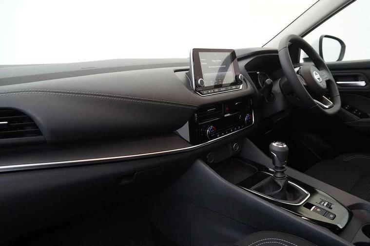 7" High definition full colour TFT screen combimeter, Blind spot warning, Drive modes (sport, normal, eco), Electric speed sensitive power steering, Emergency and breakdown call, Idle stop/start system, Intelligent Cruise control (ICC), Intelligent driver alert system, Intelligent forward collision warning, Intelligent lane intervention, Lane departure prevention, Lane departure warning system, Maximum speed limiter, Push button starter, Rear cross traffic alert, Rear parking sensors, Traffic sign recognition with legal speed adjustment, Trip computer, 6 speakers, AM/FM audio system with DAB, Bluetooth audio streaming, Front USB connections (Type-A and Type-C), Auto dimming rear view mirror, Auto rear wiper when reversing, Body colour mirror caps, Body coloured door handles, Bodyside mouldings, Chrome side window finisher, Electric auto folding door mirrors, Electrically adjustable and heated door mirrors with LED turn indicator, Follow me home headlights, High beam assist, Intelligent auto headlights, LED daytime running lights, LED Headlights, LED rear lights, One touch front and rear electric windows with remote opening and closing, Partially body coloured bumpers, Rear reversing light (bulb lighting), Rear roof spoiler, Shark fin antenna, Splash free rain sensing wipers, Three blink turn signal, 12v power socket in dashboard and luggage, 2 way electrical driver lumbar adjustment, 2x Rear coat hooks, 3 rear headrests, 4 grab handles, 6 Luggage hooks - 4 on floor, 2 on side, Centre console storage tray, Chrome interior door handles, Cloth monoform upholstery, Driver and front passenger sunvisors with illuminated vanity mirrors, Driver seat back pocket, Dual zone automatic climate control with pollen filter, Front centre console and armrest, Front cupholder, Front door with bottle holders, Glovebox with light, Hard trunk cover, Height adjustable front headrests, Leather shift knob, Leather steering wheel, Luggage space lighting, Manually adjustable passenger (slide recline + lifter), Multifunction steering wheel, Passenger seat back pocket, Rear armrest with 2 cupholders, Rear door bottle holders, Steering wheel switches, Sunglasses holder, Tilt/telescopic adjustable steering wheel, Two rear isofix child seat anchorage points with top tether, 3x3 point rear seatbelt pretensioners + load limiters, ABS, ESP, EBD and brake assist, Active brake limited slip, Auto hold function, Child locks on rear doors, Curtain and front side, far side airbags, Driver and passenger airbags, Driver, passenger and 2nd row rear seat belt reminder, Electronic parking brake, Front seatbelt pretensioners + load limiters, Height adjustable front seatbelts, Hill start assist, Intelligent blind spot intervention, Intelligent front emergency braking with pedestrian, cyclist recognition and junction assist, Intelligent rear automatic braking, Tyre pressure monitoring system, Vehicle dynamic control, Capless fuel filler, Engine immobiliser, Nissan i-key, Remote central door locking with deadlocking, Thatcham Cat.1 alarm, 17" Alloy wheels,