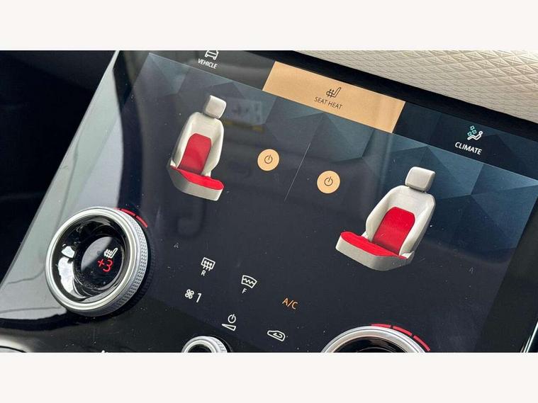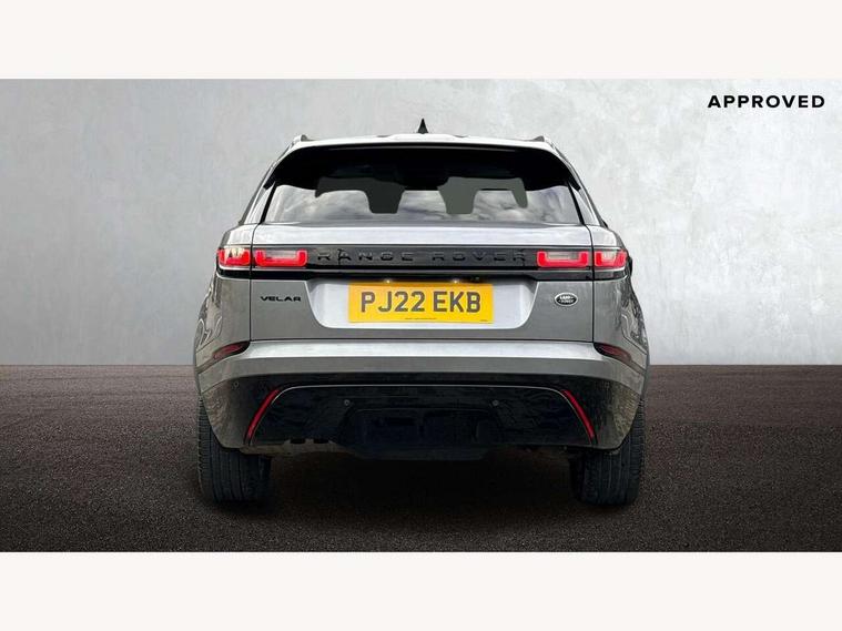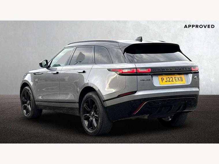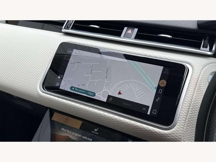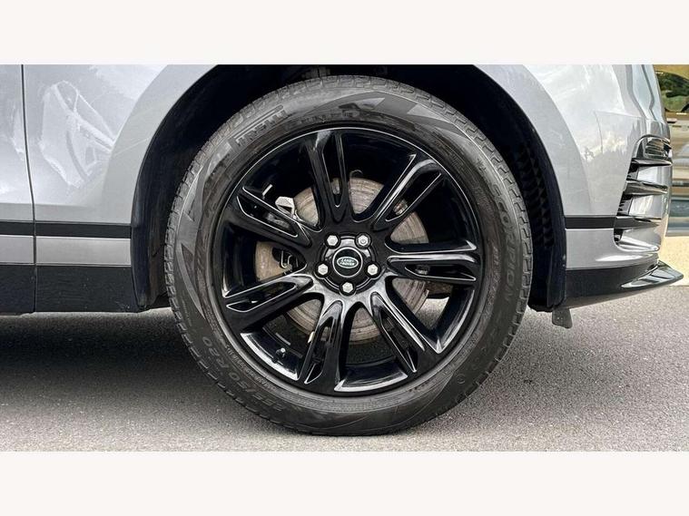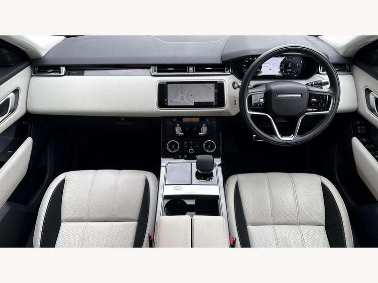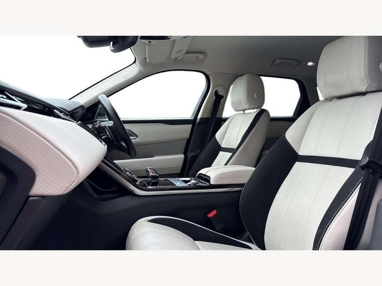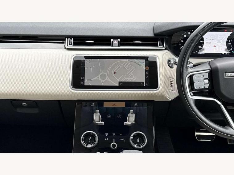 10" deployable touchscreen, Android Auto, Apple car play, Blind spot assist, Bluetooth connectivity, Brake pad wear indicator warning light, Driver condition monitor, eCall emergency call system, InControl remote, Land Rover InControl apps, Lane keep assist, Pivi pro with connected navigation, Push button start, Rear traffic monitor, Service indicator, Speed proportional electronic power assisted steering (EPAS), Traffic sign recognition with adaptive speed limiter, Trip computer, Voice control system, 8 speed automatic transmission, All terrain progress control, Open differential with torque vectoring by braking, Single speed transfer box, Digital Audio Broadcast radio-DAB, Steering wheel mounted controls, Acoustic laminated windscreen, Adaptive front lighting system, Auto dimming interior rear view mirror, Automatic headlamp levelling, Automatic headlights, Body coloured bumpers, Boot protection plate, Electric heated/power fold door mirrors with approach lights and auto dimming driver side, Electric windows with one touch open/close and anti trap, Flush deployable exterior door handles, Follow me home headlights, Heated rear window with timer, Heated washer jets, Heated windscreen, LED 3rd brake light, Metal load space scuff plates, No badge - Removes engine badge, Rain sensor windscreen wipers, Rear animated directional indicators, Rear fog lights, Rear side wing doors, Rear wash/wipe, Tailgate/boot lid spoiler, Trailer stability assist, Velar and R-dynamic badge, 3 seat bench in 2nd row, Ambient lighting, Bright metal pedals, Driver/passenger sunvisors with illuminated vanity mirrors, Isofix system on outer rear seats, Loadspace cover, Overhead lighting console, Overhead stowage for sunglasses, Passive front headrests, Rear air vents, Rear centre headrest, Satin chrome gearshift paddles, Single front passenger seat, Standard interior, Twin front cupholders, Twin sliding front centre armrest, Online pack with data plan - Velar, 355mm front brakes and 325mm rear brakes, 3x3 point rear seatbelts, Anti-lock braking system (ABS), Cornering brake control, Curtain airbags, Customer configurable autolock, Door side intrusion beams, Driver airbag, DSC - Dynamic Stability Control, Electronic brake force distribution, Electronic parking brake, Electronic traction control, Emergency brake assist, Emergency braking, Front and rear seatbelt reminder, Hill descent control, Hill launch assist, Low traction launch, Passenger airbag, Power operated child locks, Rear airbags, Roll stability control, Side airbags, Tyre pressure monitoring system, Unpainted brake calipers, Global lock and unlock switch on driver door, Immobiliser, Intrusion sensor, Keyless entry, Lock only switch on front passenger door, Locking wheel nuts, Perimetric alarm, Remote central locking,