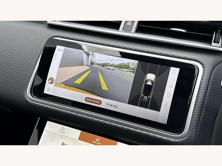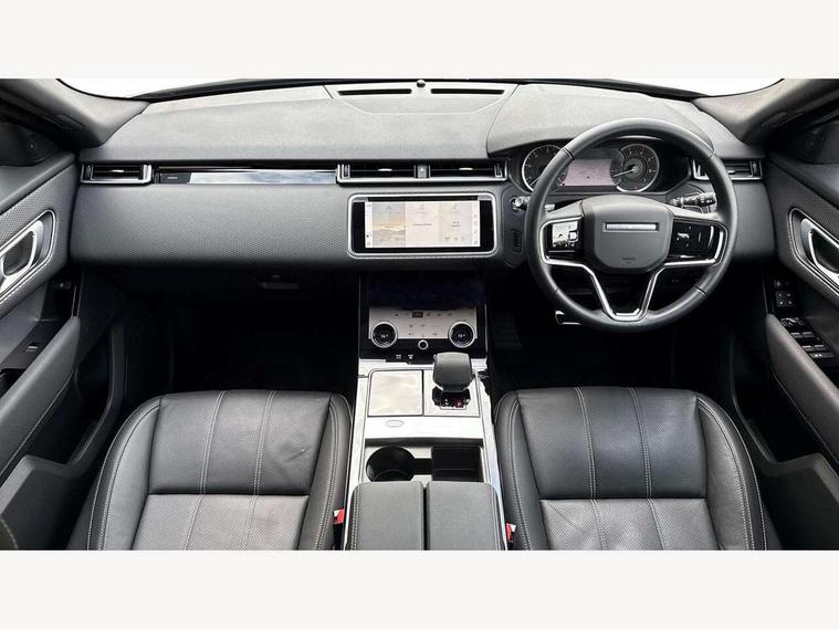 10" deployable touchscreen, Android Auto, Apple car play, Blind spot assist, Bluetooth connectivity, Brake pad wear indicator warning light, Driver condition monitor, eCall emergency call system, InControl remote, Land Rover InControl apps, Lane keep assist, Pivi pro with connected navigation, Push button start, Rear traffic monitor, Service indicator, Speed proportional electronic power assisted steering (EPAS), Traffic sign recognition with adaptive speed limiter, Trip computer, Voice control system, 8 speed automatic transmission, All terrain progress control, Open differential with torque vectoring by braking, Single speed transfer box, Digital Audio Broadcast radio-DAB, Steering wheel mounted controls, Acoustic laminated windscreen, Adaptive front lighting system, Auto dimming interior rear view mirror, Automatic headlamp levelling, Automatic headlights, Body coloured bumpers, Boot protection plate, Electric heated/power fold door mirrors with approach lights and auto dimming driver side, Electric windows with one touch open/close and anti trap, Flush deployable exterior door handles, Follow me home headlights, Heated rear window with timer, Heated washer jets, Heated windscreen, LED 3rd brake light, Metal load space scuff plates, No badge - Removes engine badge, Rain sensor windscreen wipers, Rear animated directional indicators, Rear fog lights, Rear side wing doors, Rear wash/wipe, Tailgate/boot lid spoiler, Trailer stability assist, Velar and R-dynamic badge, 3 seat bench in 2nd row, Ambient lighting, Bright metal pedals, Driver/passenger sunvisors with illuminated vanity mirrors, Isofix system on outer rear seats, Loadspace cover, Overhead lighting console, Overhead stowage for sunglasses, Passive front headrests, Rear air vents, Rear centre headrest, Satin chrome gearshift paddles, Single front passenger seat, Standard interior, Twin front cupholders, Twin sliding front centre armrest, Online pack with data plan - Velar, 355mm front brakes and 325mm rear brakes, 3x3 point rear seatbelts, Anti-lock braking system (ABS), Cornering brake control, Curtain airbags, Customer configurable autolock, Door side intrusion beams, Driver airbag, DSC - Dynamic Stability Control, Electronic brake force distribution, Electronic parking brake, Electronic traction control, Emergency brake assist, Emergency braking, Front and rear seatbelt reminder, Hill descent control, Hill launch assist, Low traction launch, Passenger airbag, Power operated child locks, Rear airbags, Roll stability control, Side airbags, Tyre pressure monitoring system, Unpainted brake calipers, Global lock and unlock switch on driver door, Immobiliser, Intrusion sensor, Keyless entry, Lock only switch on front passenger door, Locking wheel nuts, Perimetric alarm, Remote central locking,