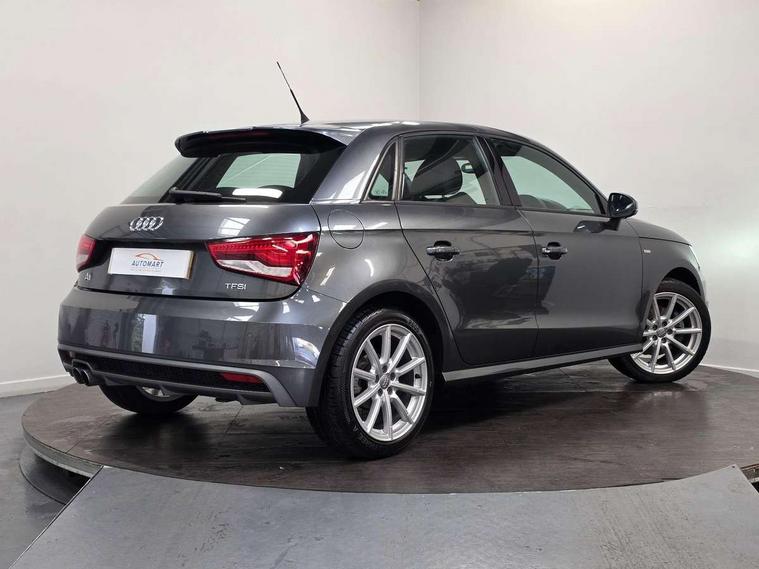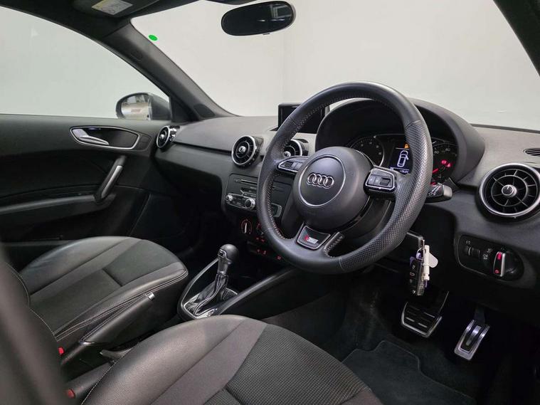 Audi drive select, Cruise control, Driver's information system, Electro-mechanical PAS, Low washer fluid indicator, Service interval indicator, Voice control system, Additional SD card reader, Audi music interface, Bluetooth audio streaming, DAB Digital radio, Adaptive brake lights, Body coloured bumpers, Body coloured door mirrors, Electric adjustable door mirrors, Electric front windows, Electric rear windows, Front fog lights, Heat insulating glass, Heated door mirrors, Heated rear windscreen, Polished stainless steel tailpipe, Rear wiper, Roof spoiler, S Line body styling, Xenon plus headlights including automatic headlights, LED daytime running lights, LED rear lights, dynamic range control and headlight washers, 12V Accessory socket in centre console, 3 rear seats, Adjustable rear head restraints, Black cloth headlining, Cupholders in centre console, Door sills trims with aluminium inlays, Front floor mats, Front head restraints, Front sports seats, Height adjustable front seats, Isofix attachments on outer rear seats, Jack and tool kit, Leather gear knob, Leather handbrake, Lumbar adjustment for front seats, Rake/reach adjustable steering wheel, Split folding rear seats, 3x3 point rear seatbelts, ABS/EBD, Brake assist function, Driver and passenger side airbags, Driver/Front Passenger airbags, EDL, ESP with ASR, First aid kit, Front and rear seatbelt reminder, Front passenger airbag deactivation, Head airbags, Height adjustable front seatbelts, Tyre pressure monitor, Warning triangle, Locking wheel bolts, Remote central locking with 2 remote folding keys, Thatcham category 1 alarm + immobiliser, Tyre repair kit,