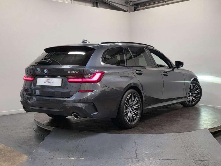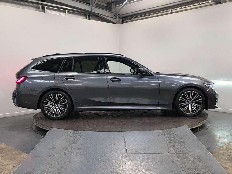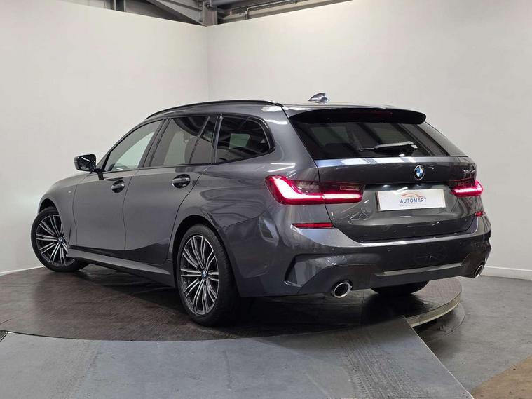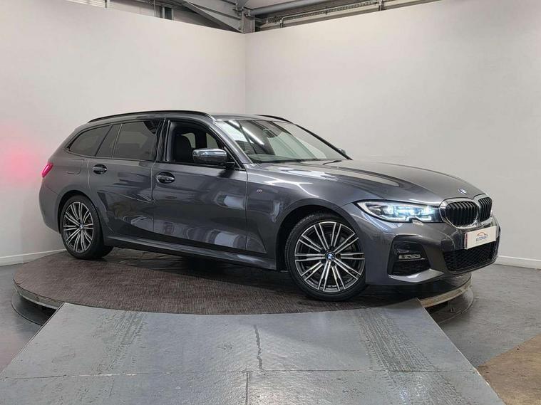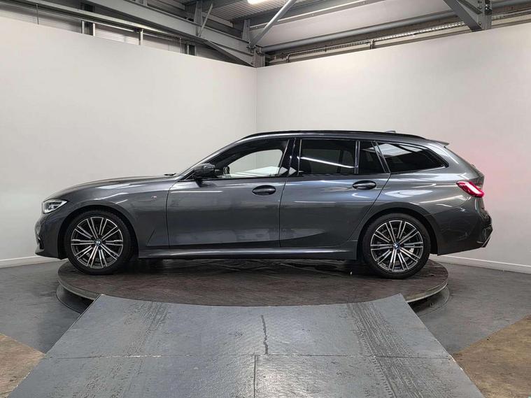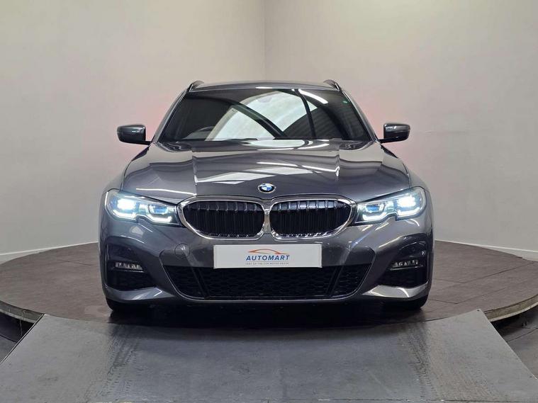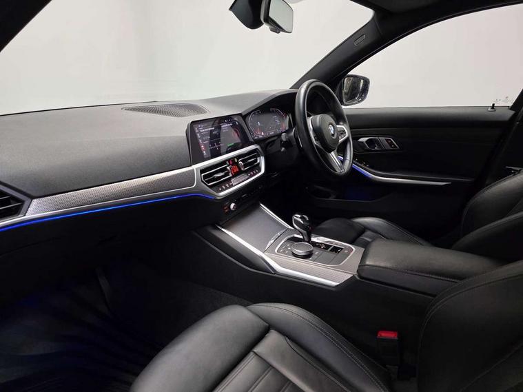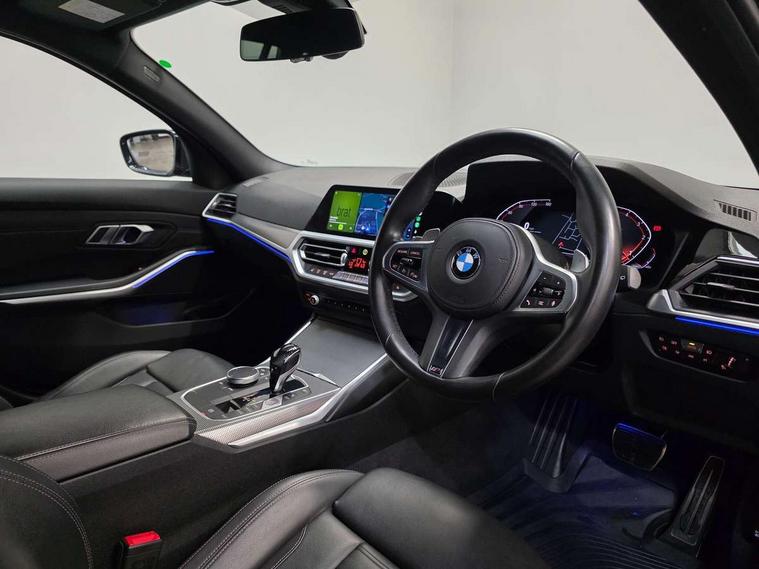 Active guard plus, Attentiveness assist, Auto start-stop, BMW ConnectedDrive online services, BMW iDrive controller on centre console, BMW Live Cockpit Professional sat nav system including 10.25" high resolution display and Intelligent Voice Assistant, BMW service history, BMW Teleservices, Brake pad wear indicator in front and rear, Check Control warning system for monitoring of lights and door/luggage compartment open warning, Condition based service, Electric power steering with Servotronic steering optimised at all speed ranges, Instrument cluster with speedometer with mph readout, tachometer, fuel gauge and oil temperature gauge, Integrated owners handbook, Oil sensor for level and grade, warning by check control system, On board computer - average speed+fuel consumption, service interval, clock/date, odometer/trip meter, outside temperature display and ice warning, Optimum shift indicator, Personal Profile - automatic lock when driving away selectable, Variable sport steering, Balanced 50/50 weight distribution, Battery cut-out switch, Diesel particulate filter, Drive performance control - ECO PRO, comfort and sport modes, Incorrect fuelling protection, Larger capacity fuel tank, M sport suspension, Sport automatic transmission with steering-wheel mounted gearshift paddles and launch control, Stroke dependent dampers, DAB tuner, Electronic service booklet, Acoustic glazing, Active airstream chrome frame kidney grille with 8 high gloss black vertical slats, Automatic headlight beam throw control with load dependent regulating reaction, dynamic compensation of braking dive and acceleration squat, Black roof mouldings, BMW Individual high gloss shadow line roof rails, Body colour - fuel filler flap, front and rear bumpers, door handles and mirror caps with integrated turn indicator + bottom segment in matt black, Dynamic brake lights, Electric windows - front and rear, with open/close fingertip control, anti-trap facility and comfort closing, Exhaust tailpipe - split left and right, Extended LED headlights, Exterior mirrors - electrically folding with anti-dazzle, Fading support, Front and rear bumper system with replaceable deformation elements, Front black door sill finishers with BMW designation, Green tinted heat protection glazing, High gloss shadow line exterior trim, Interior rear view electrochromatic mirror with automatic anti dazzle function, LED front fog lights, Lightweight engineering, M designation on front side panels, left and right, Matt black exterior B pillar, Model designation on right side of tailgate, Rain sensor with automatic headlight activation, Rear wiper, Shark fin antenna, Two part LED tailights in L-shape with components in smoked glass, brake light, LED turn indicator and rear fog light, Visible VIN plate, Welcome lights in interior and door handle area, Windscreen wipers with integrated washing jets, 12V power socket in front storage compartment, 2 front cupholder in centre console with clamping elements and matt black inlay, 3 rear seats with non folding headrests with 3 point seat belts, 3 zone automatic air conditioning, 4 pieces lashing eyelets in luggage compartment, 40:20:40 split folding rear seat with loading system, Ambient lighting with welcome carpet light, Anthracite headlining, Armrest integrated in front and rear door trim + front centre console armrest, Centred top Luggage compartment lights, Four grab handles integrated in roof lining, Front and rear door exit lighting (left / right), Front and rear door pockets, Front and rear reading lights, Front and rear velour floor mats, Front head restraints, Front sport seats, Heated driver and front passenger seats, Height adjustable mechanically and infinitely variable steering column, Illuminated armrest storage compartment, Illuminated glove compartment with separate small compartment, Interior lighting - front centre over interior mirror with soft light, rear centre and front and rear footwell lighting, M Sport multifunction leather steering wheel, Make-up mirror lights, Rear centre armrest with 2 cupholders, Rear centre console with storage compartment and ventilation grille, Sunvisors with vanity mirrors and ticket pocket, Toolkit located in luggage compartment, Connected pack professional - 3 Series Saloon/Touring, M Aerodynamics pack - 3 Series Saloon/Touring, 2 tone horn, BMW emergency call, Brake energy regeneration, Braking pre-tensioning, Child proof locking system in rear door, Child seat ISOFIX attachment rear outer seats, Coasting in idle in ECO PRO mode, Crash sensor activating of airbags, Unlocking doors, hazard warning lights, interior light, safety battery terminal, Driver and front passenger side airbags, integrated in the door side seat backrest bolsters for all seat variants, Driver/Front Passenger airbags, Dry braking, Dynamic brake control, Dynamic stability control + (DSC+) - Anti-lock Braking System (ABS) with brake assist and cornering brake control + Automatic Stability Control (ASC), Dynamic Traction Control - DTC, Electric parking brake including automatic hold function and automatic release of the parking brake when driving off, Electronic differential lock control (EDLC), Front passenger manual airbag deactivation, Head airbags for all 4 outer seats, Hill start assist, Seat belt security check for driver and front passenger, Side impact protection, Three 3 point seat belts on all seats including front belt stopper, pyrotechnic belt tensioners and belt force limiters, Tyre pressure monitoring with three level warning strategy, Ventilated front and rear disc brakes, Warning triangle and first aid kit, Alarm system (Thatcham 1) with remote control and electronic engine immobiliser, Central locking switch for all doors, fuel filler cap and luggage compartment, Remote control with integrated key one button open/close vehicle and windows, sole opening of the luggage compartment lid and panic mode, Start/stop button with Comfort Go keyless engine start and auto Start/st