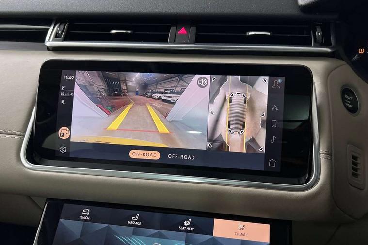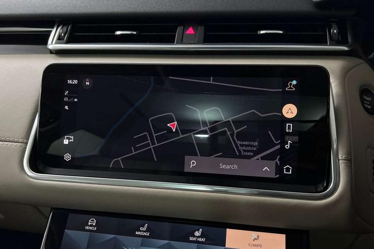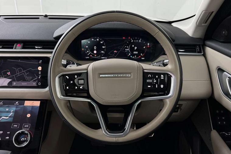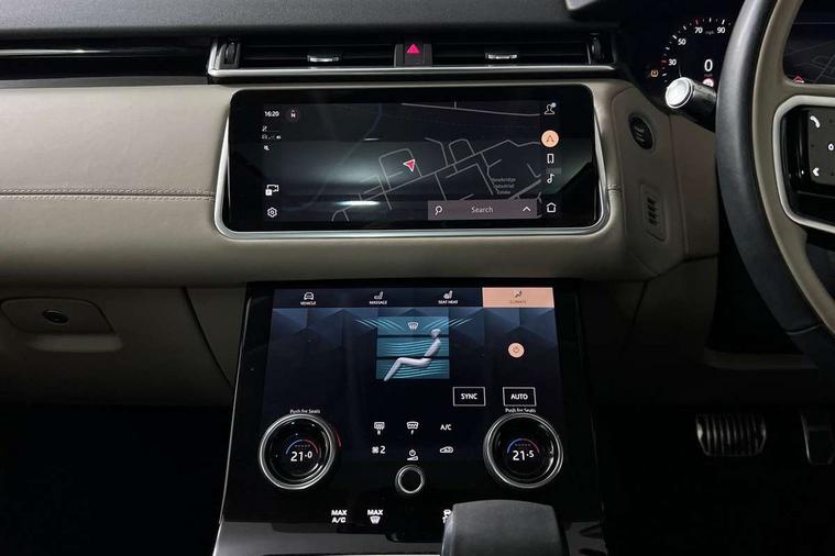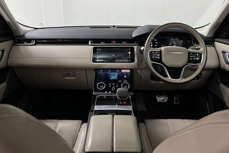 10" touch screen, Adaptive cruise control with steering assist, Android Auto, Apple car play, Blind spot assist, Bluetooth connectivity, Brake pad wear indicator warning light, Driver condition monitor, InControl remote, Interactive Driver display instrument cluster, Land Rover InControl apps, Lane keep assist, Pivi pro connected includes upgraded infotainment, smart settings, connected navigation pro, Nuance speech licence, Push button start, Rear collision monitor, Rear traffic monitor, Service indicator, Speed proportional electronic power assisted steering (EPAS), Traffic sign recognition with adaptive speed limiter, Trip computer, Voice control system, 8 speed automatic transmission, Adaptive dynamics, All terrain progress control, Electronic air suspension, Open differential with torque vectoring by braking, Single speed transfer box, Digital Audio Broadcast radio-DAB, Steering wheel mounted controls, Acoustic laminated windscreen, Adaptive front lighting system, Auto dimming interior rear view mirror, Automatic headlamp levelling, Automatic headlights, Body coloured bumpers, Boot protection plate, Electric heated/power fold door mirrors with approach lights and auto dimming driver side, Electric windows with one touch open/close and anti trap, Flush deployable exterior door handles, Follow me home headlights, Heated rear window with timer, Heated windscreen, HSE badge, Metal load space scuff plates, Rain sensor windscreen wipers, Rear fog lights, Rear wash/wipe, Tailgate/boot lid spoiler, Trailer stability assist, Velar and R-dynamic badge, Ambient lighting, Bright metal pedals, Driver/passenger sunvisors with illuminated vanity mirrors, Electric adjustable steering column, Isofix system on outer rear seats, Loadspace cover, Overhead lighting console, Overhead stowage for sunglasses, Passive front headrests, Rear air vents, Rear centre headrest, Satin chrome gearshift paddles, Twin front cupholders, Twin sliding front centre armrest, Online pack with data plan - Velar, 355mm front brakes and 325mm rear brakes, 3x3 point rear seatbelts, Anti-lock braking system (ABS), Cornering brake control, Curtain airbags, Customer configurable autolock, Door side intrusion beams, Driver airbag, DSC - Dynamic Stability Control, Electronic brake force distribution, Electronic parking brake, Electronic traction control, Emergency brake assist, Emergency braking, Front and rear seatbelt reminder, Hill descent control, Hill launch assist, Low traction launch, Passenger airbag, Power operated child locks, Rear airbags, Roll stability control, Side airbags, Tyre pressure monitoring system, Unpainted brake calipers, Global lock and unlock switch on driver door, Immobiliser, Intrusion sensor, Keyless entry, Lock only switch on front passenger door, Locking wheel nuts, Perimetric alarm, Remote central locking,