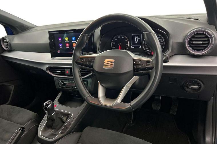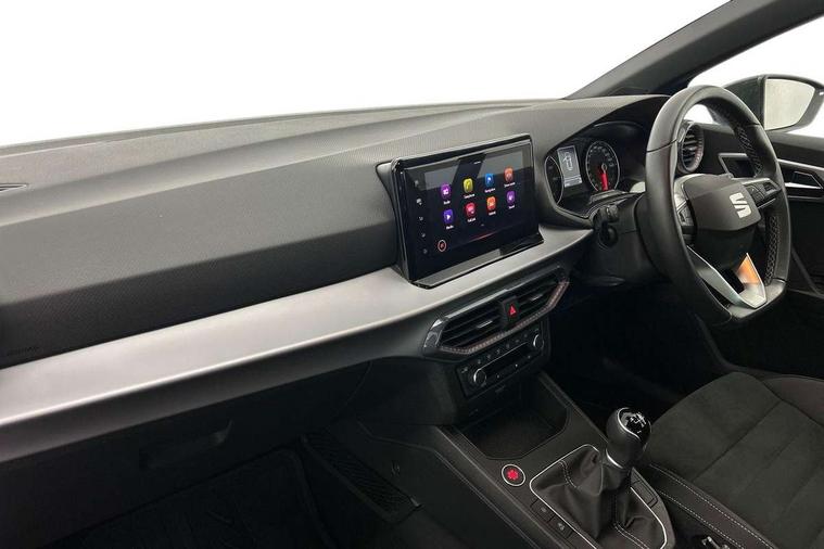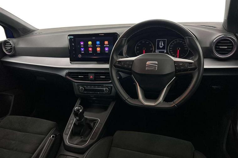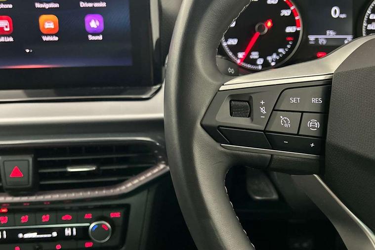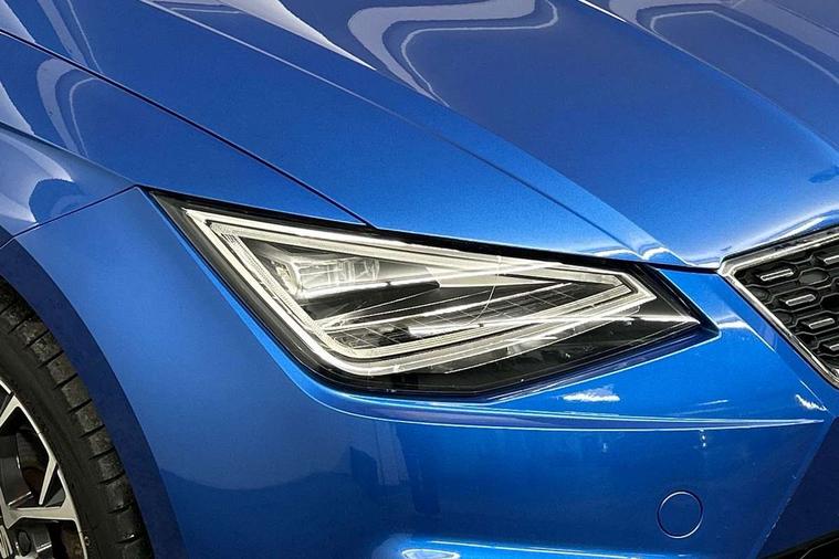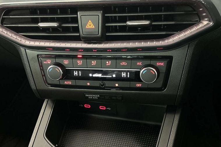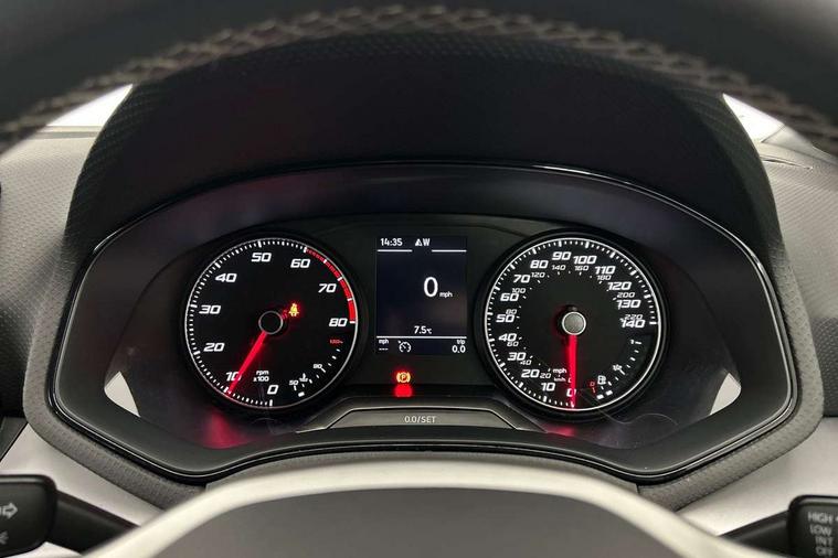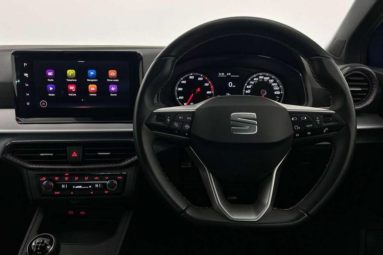 17" Dynamic machined alloy wheels in Nuclear grey, Electronic engine immobiliser, KESSY Keyless entry and go, Locking wheel bolts, Perimeter alarm and interior monitoring with backup horn and tow away protection, Remote central locking + deadlocks, Auxiliary input socket, Radio/MP3 player, SD card slot, Steering wheel mounted controls, 3 point seatbelts on all 3 rear seats, ABS, Active front headrests, Child locks on rear doors, Electronic stability control, Energy recovery system, Front assist forward collision warning and autonomous emergency braking, Front driver and passenger side airbags with curtain airbag and front passenger airbag deactivation, Hill hold control, Multi-Collision braking, Seat belt reminder for front and rear seats, Tiredness recognition system, Tyre pressure monitoring system, Anti theft roof antenna, Atom grey door mirrors, Auto dimming rear view mirror, Automatic rain sensing wipers, Body colour bumpers, Body colour door handles, Chrome window surround and upper grille surround, Dark tinted rear windows, Electric adjustable/heated/folding door mirrors, Electric front windows, Electric headlight adjustment, Electric rear windows, Front/rear fog lights, FULL LED automatic headlights with dynamic headlight range control, coming and leaving home, LED daytime running lights, LED tail lights, 60/40 split folding rear seat, Ambient interior lighting, Chrome detailing and black headlining, Comfort seats, Dual zone climate control with combination filter, Front centre armrest, Front courtesy lights, Front cupholders x 2, Front reading lights, Gear shift indicator, Glovebox, Height adjustable front and rear headrests (five), Height adjustable front seats, Height/reach adjust steering wheel, Illuminated air vent surrounds, Illuminated boot, Instrument lighting with brightness control, Isofix, Leather multifunction flat bottomed sports steering wheel, Microsuede cloth upholstery, Passenger sunvisor, Storage pockets on back of front seats, Sunvisors with mirror and driver side card holder, 'Lights On' Reminder warning buzzer, 9.2" touchscreen navigation system with type C USB socket, Voice control and DAB/AM/FM radio, Auto start and stop system, Bluetooth audio streaming with handsfree system, Digital clock, Full link smartphone integration with mirror link, wireless apple carplay, Google android auto + USB Type C cable for apple and android devices, Lane assist, Low fuel warning light, Outside temperature gauge, Power Steering, Rear parking sensor, Seat connect with safety, serivice, remote and online, SEAT logo boot release, Speed limiter, Trip computer, Comfort suspension,