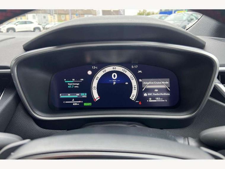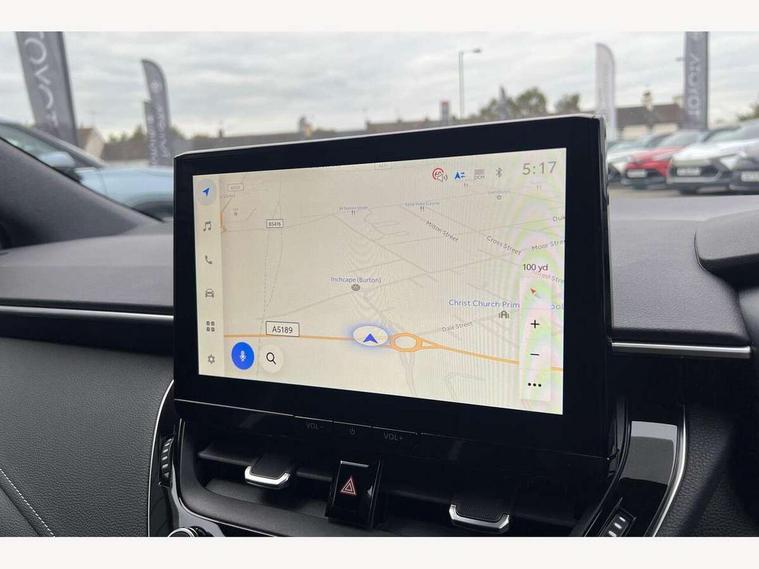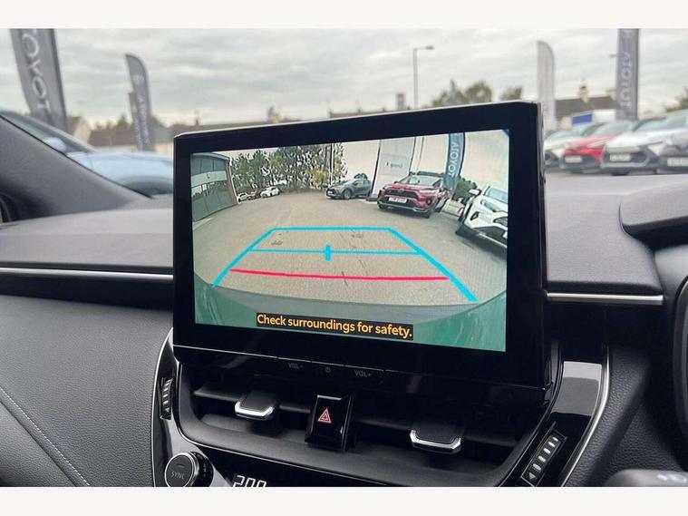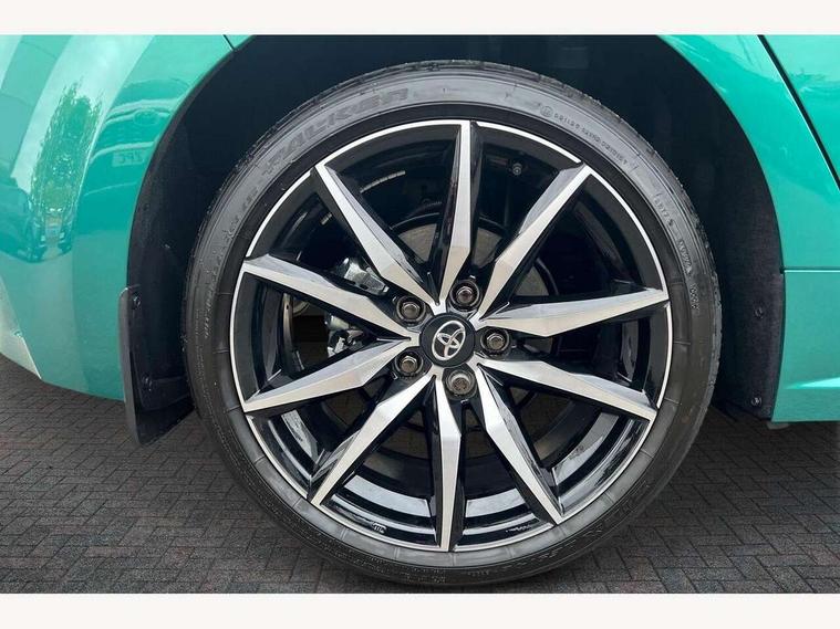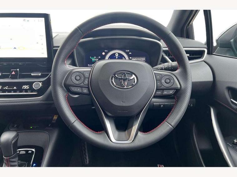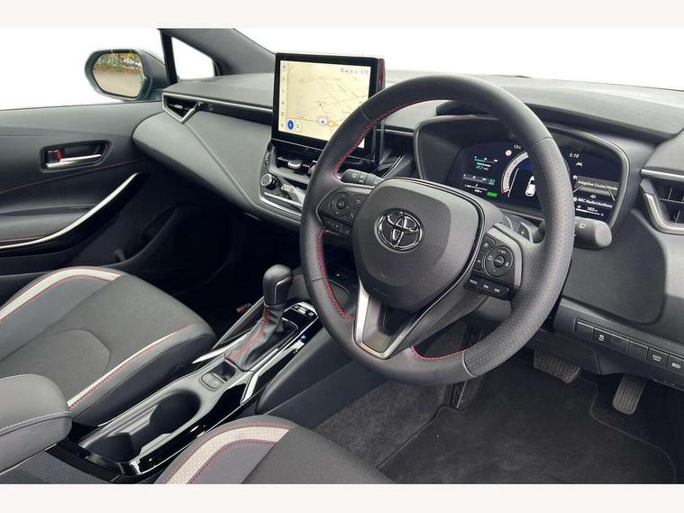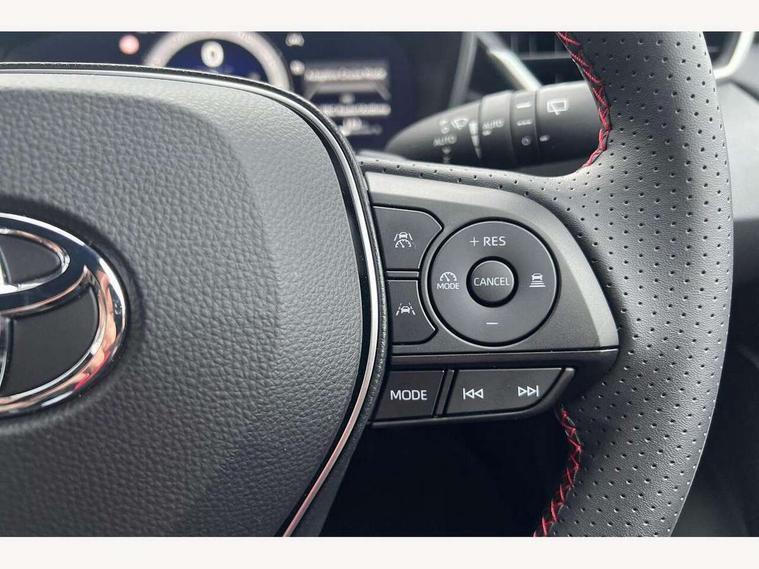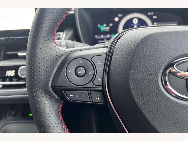 10.5" Multimedia display screen, Bluetooth telephone connectivity, Connected car functionality upgrade, tracker, remote status and e-care, Drive mode select (Eco, Normal), E-call, Electrically assisted power steering, EV drive indicator, Front and rear parking sensors, Full Digital 12.3" TFT Digital Combimeter, Intelligent clearance sonar, Key reminder warning, Lane Departure Alert (LDA) switch on steering wheel, Memory on adjustable speed limiter, MyT connected services, Proactive driving assist (PDA), Reversing camera, Smart entry and push button start with GR Logo, Smartphone integration with Apple CarPlay and wired android auto, Tailgate, Toyota remote services, Toyota smart connect navigation, Wireless charger, Gasoline particulate filter, Vehicle Stability Control (VSC), 6 speakers, AM/FM radio, DAB Digital radio, Front USB-C in centre console, Front USB-C in dashboard, Smart voice assist/ Voice recognition, USB and Aux in connectors + 12V front outlet, Anti-jam protection on power windows, Auto up and down function on all power windows, Automatic folding mirrors, Automatic headlights with high beam assist, Black centre and side air vents, Black toyota logo in front, Body coloured bumpers, Body coloured door mirrors, Body coloured outside door handles, Dark chrome lower grille, Electrochromatic mirror, Follow me home headlights, GR Sport dark chrome front mesh grille and black rear grille, GR Sport exclusive under guard, GR sport scuff plates, LED daytime running lights, LED dual beam projector headlights, LED front fog lights, LED High mounted stop light, LED rear combi lights with LED lightguide, Manual headlight levelling system, New grille pattern, Noise reduction layer on windscreen, Piano black diffuser, Power adjustable heated door mirrors, Power front windows, Power rear windows, Privacy glass with UV filter, Rain sensing wipers, Rear side wing doors, Rear window defogger, Rear window wiper, Reverse tilting door mirrors, Rocker and door lower moulding, Roof spoiler, Satin chrome insert on front air vents, Satin chrome insert on front door assist grips, Satin silver front spoiler, Shark fin antenna, Tailgate release with push button, Time adjustment on intermittent wiper, Turning signal integrated indicators in door mirrors, Unique lower skirt, Unique side rocker with black insert, UV-filter on driver and passenger windows, 2 Shopping bag hooks in luggage compartment, 3 rear headrests, 3 seat bench in 2nd row, 3 spoke steering wheel with satin insert and red stitching, 4 tie down hooks in luggage compartment, 60/40 split folding rear seat, Adaptive cruise control (ACC) switch on steering wheel, Adjustable speed limiter switch on steering wheel, Audio, multimedia and telephone switches on steering wheel, Black armrest on centre console box, Black gear shift console, Boot light, Boot underfloor storage, Centre room light, Driver and front passenger personal light, Driver and passenger assist grip, Driver and passenger seatback pockets, Driver and passenger sun visor with mirror and light, Dual zone automatic air conditioning with ECO mode switch, Electric lumbar support for passenger, Fabric/synthetic leather upholstery, Front and rear cup and bottle holders, Front door pockets, Front head restraints, Front passenger seat, Front sliding synthetic leather armrest, Gear knob, GR Sports seats with partial leather bolsters, Heated front seats, Illuminated entry system in room lamp, ISOFIX seat fixing (2 fixings on rear outer seats), Manual height adjustable for driver and front passenger seat, Manually tilt with sliding driver and front passenger seat, Nanoe-X air purifier, Paddle shifts, Parcel shelf, Pollen filter, Power adjustable lumbar support on driver seat, Power window switches with satin chrome inserts, Rear armrest with 2 cupholders, Rear passenger coat hooks (2), Red stitching on gear shift, Remote air conditioning, Satin chrome inside door handles, Satin chrome surround on speedometer, Sliding armrest on centre console box, Slow opening glovebox with lights, Textile floor mats, Tilt/telescopic steering column, Voice recognition switch on steering wheel, Whiplash Injury Lessening (WIL) feature (active headrest) for seats, White ambient lighting on open tray and front cup holder, Toyota safety sense 3 pack - Corolla, 3x3 point rear seatbelts, Adjustable driver and front passenger seat belt extender to top anchor point, Anti lock braking system + Electronic brake force distribution, Brake assist function, Child locks on rear doors, Downhill Assist Control (DAC), Electronic parking brake, Emergency brake light signal (EBS), Front passenger airbag on/off switch, Front seatbelt reminder, HAC - Hill start assist control, Rear seat belt reminder, Seatbelt pretensioners and force limiters, Supplemental restraint system (SRS) 7 airbags - dual driver, dual side curtain, side impact and driver knee airbags, Traction control, Tyre pressure warning system, Acoustic vehicle alert system (AVAS), Alarm with motion sensor and immobilizer, Power passenger window lock, Remote central locking + deadlocks, GR Sport interior and exterior styling, Satin chrome dash trim, Soft touch texture on upper dashboard, Stitching on lower dashboard, 18" 10 spoke black machined face alloy wheels, Tyre repair kit, Unique wheel finish with red wheel cap,